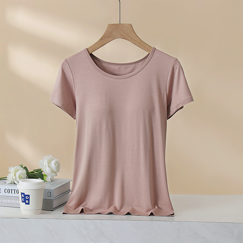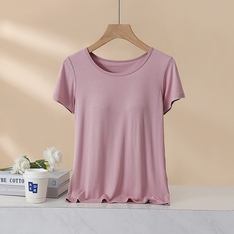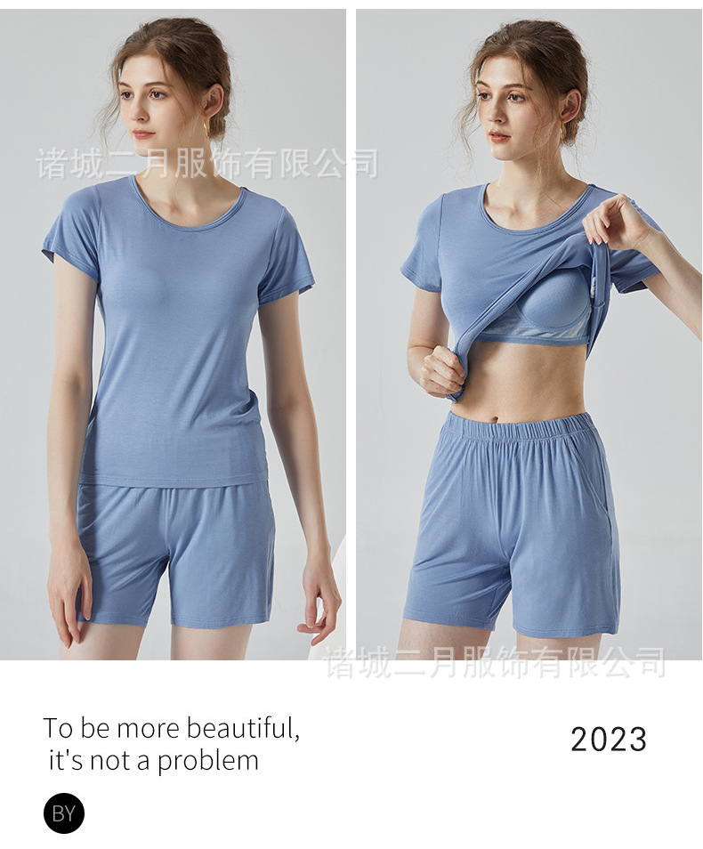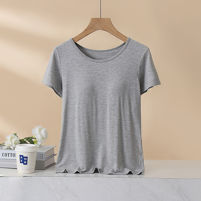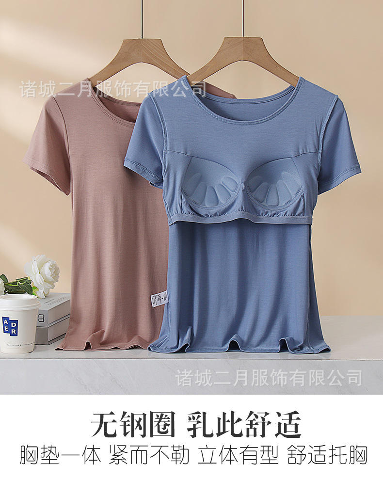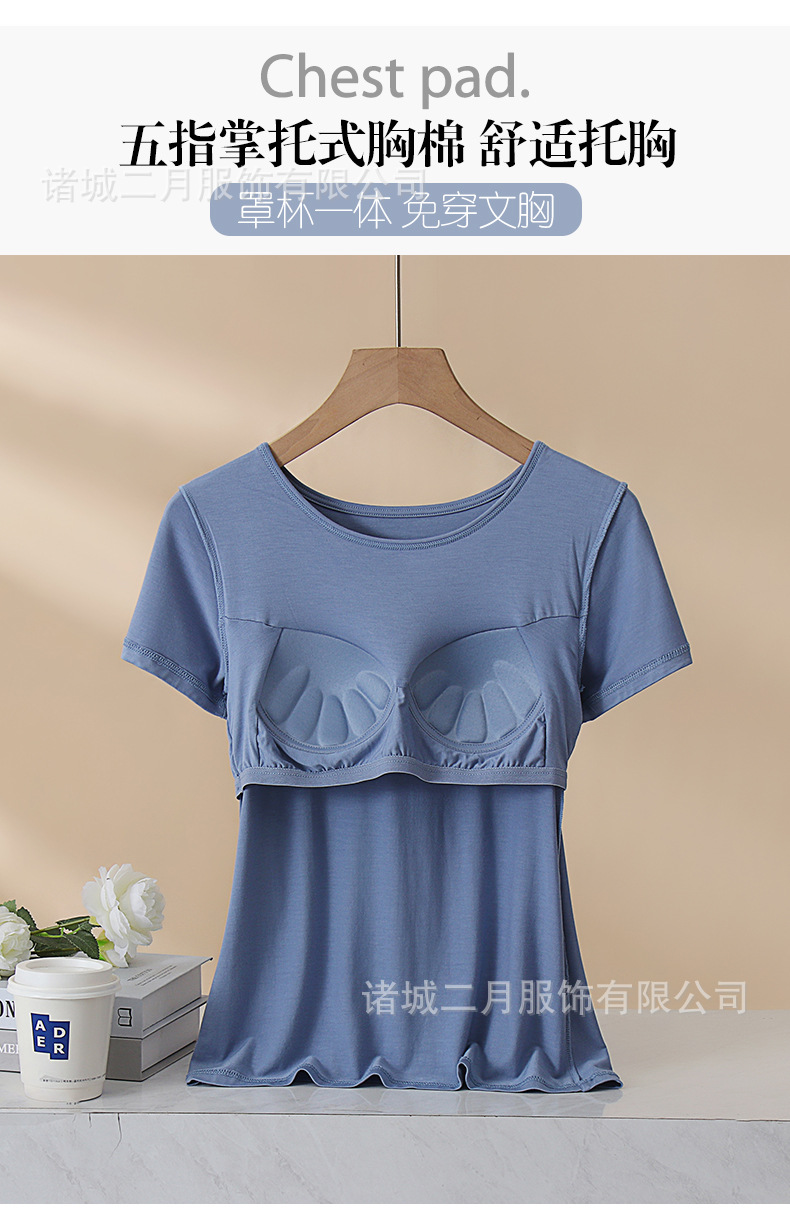 [헤어 세대] 가슴 패드 반팔 파자마 홈 의류 여성 상의 티셔츠 브라 컵 1 여름복