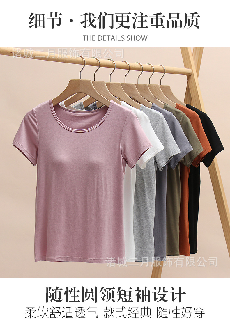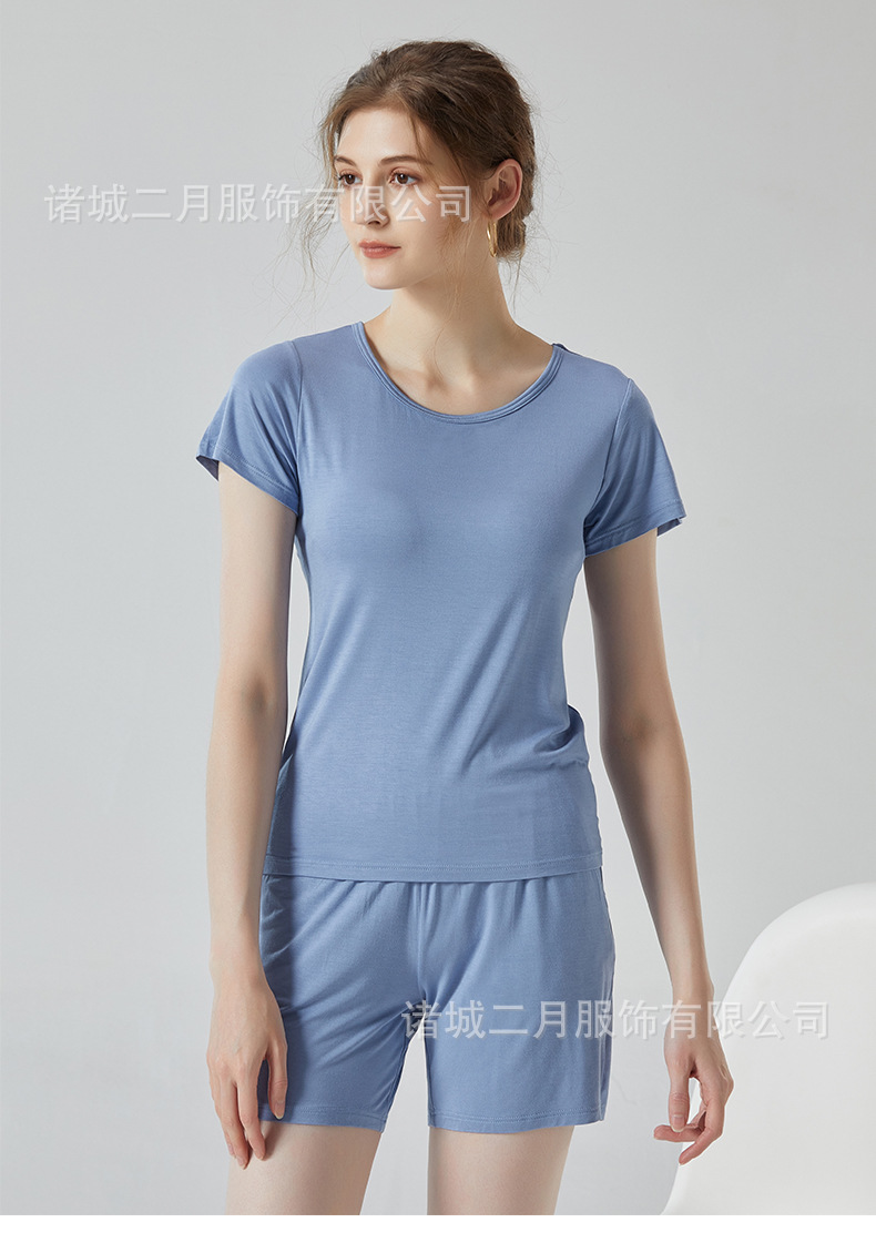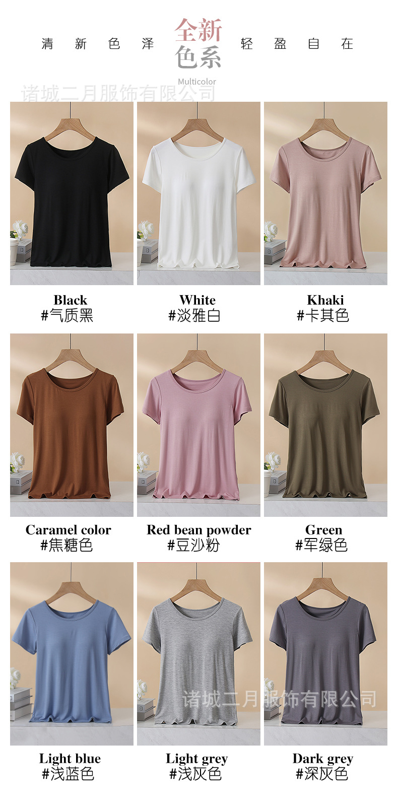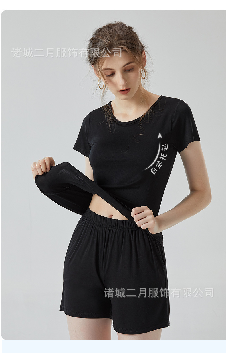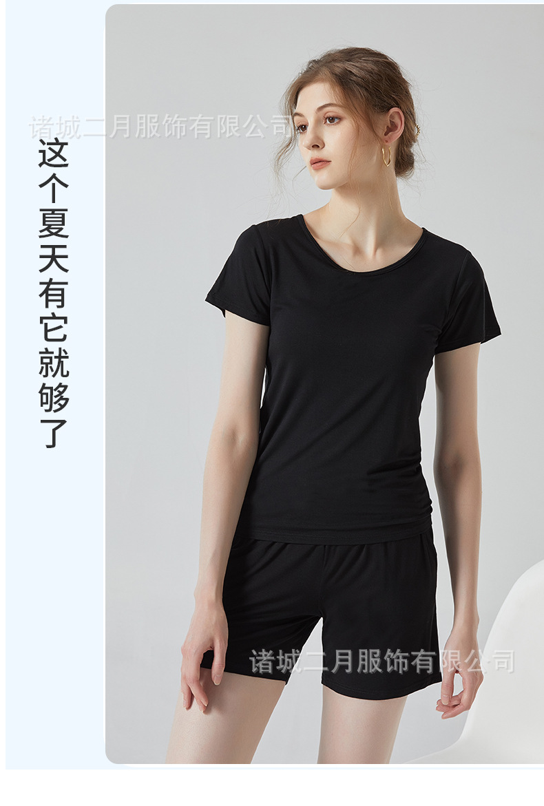 [헤어 세대] 가슴 패드 반팔 파자마 홈 의류 여성 상의 티셔츠 브라 컵 1 여름복