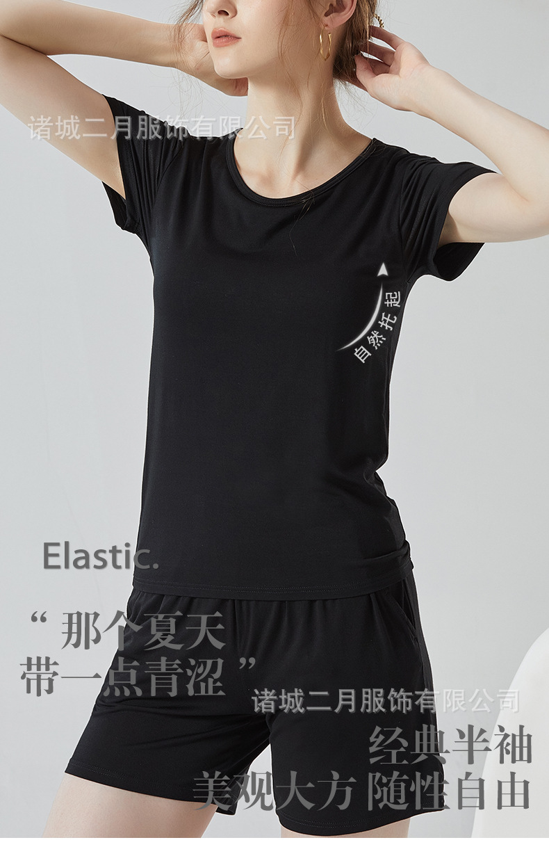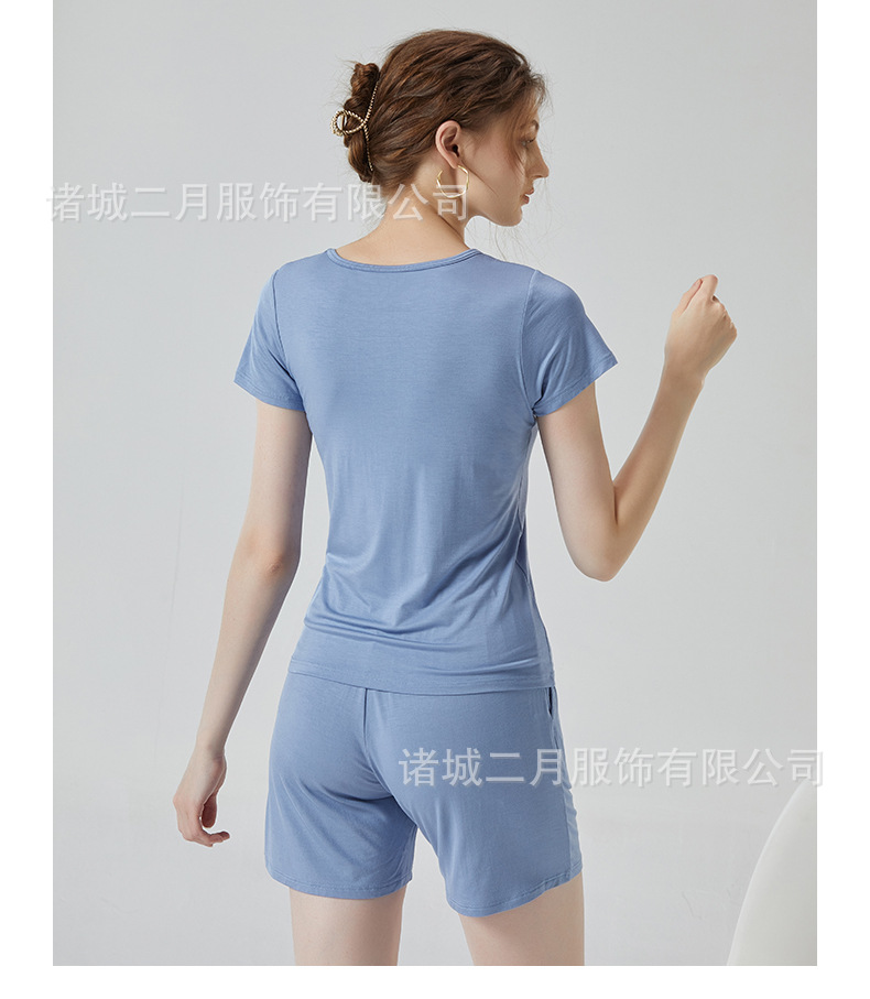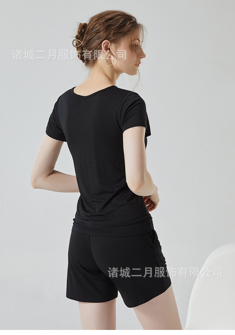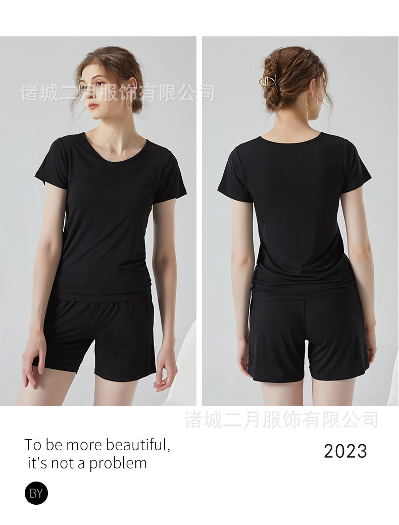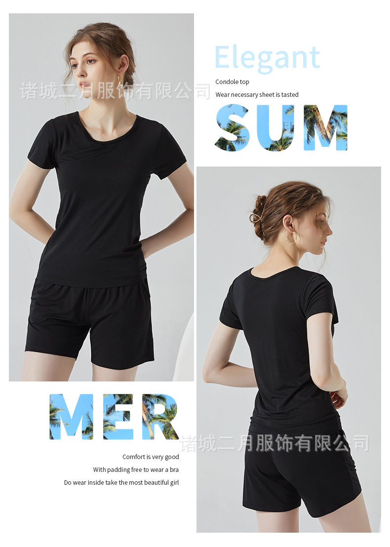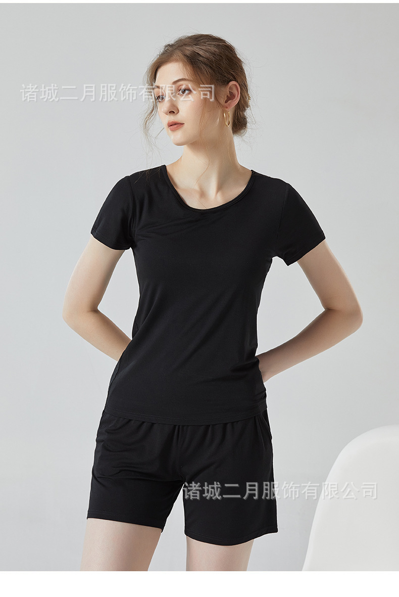 [헤어 세대] 가슴 패드 반팔 파자마 홈 의류 여성 상의 티셔츠 브라 컵 1 여름복