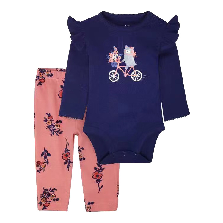 도매 남녀 보물 아기 긴 소매 가방 방귀 옷 등산 바지 2 종 세트용 대외 무역 아동복 봄과 가을 크로스 보더