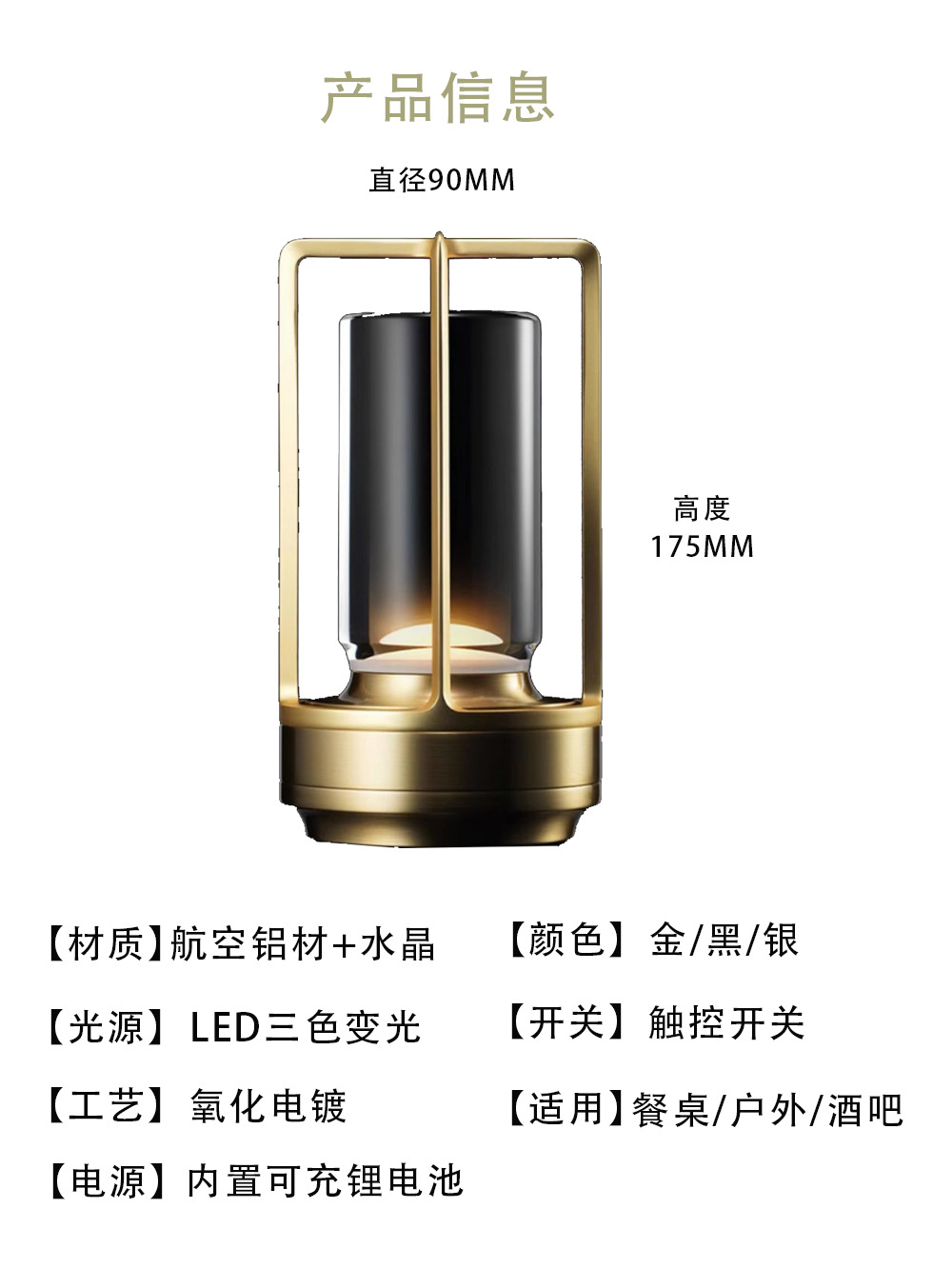 • T808 테이블 램프 골드 풀 터치