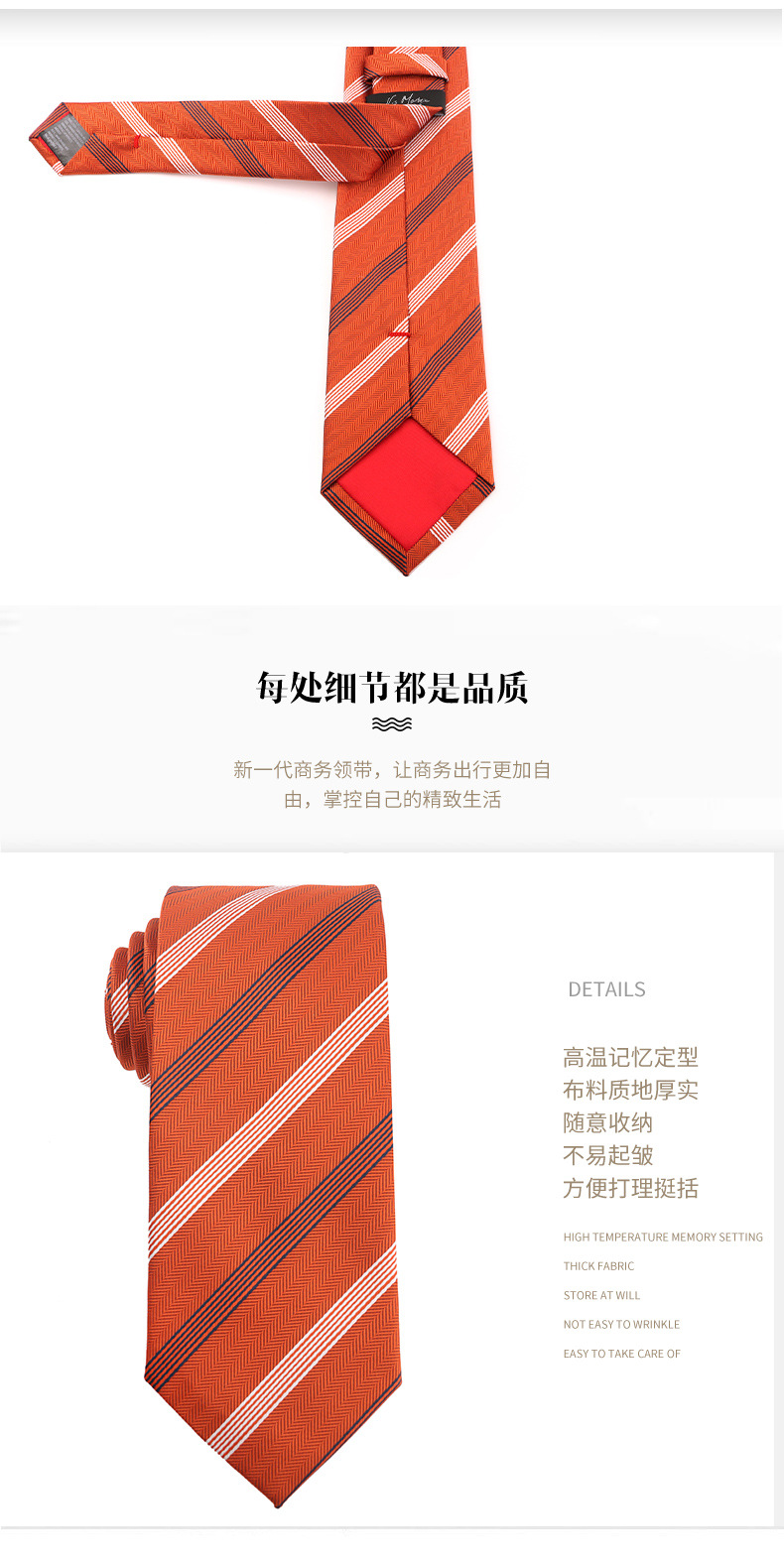 활력 밝은 오렌지 시리즈 넥타이 남자의 비스듬한 줄무늬 캐슈 꽃 유행 연회 세트 손 넥타이 넥타이 도매스토어 가기