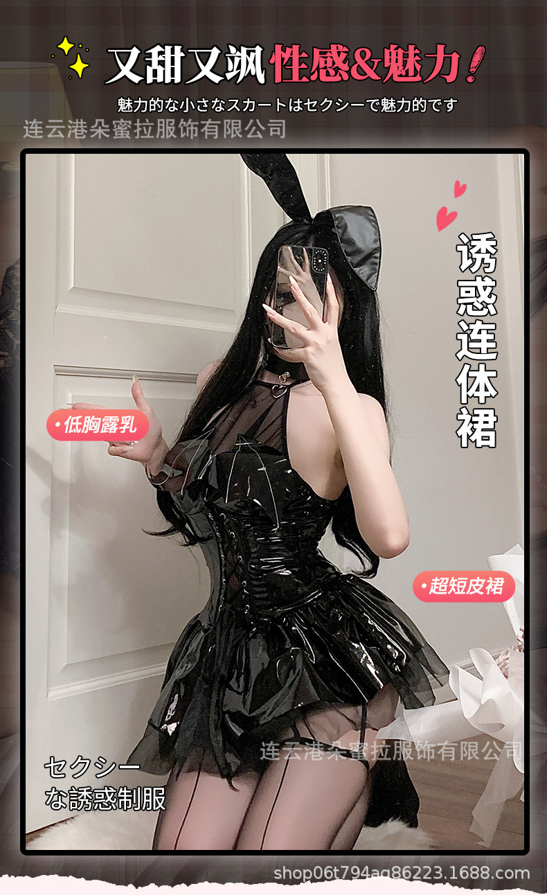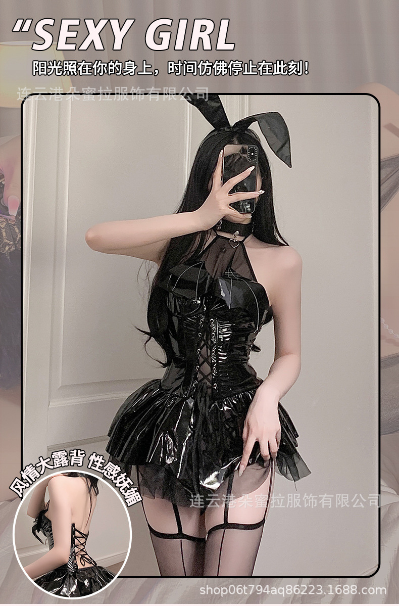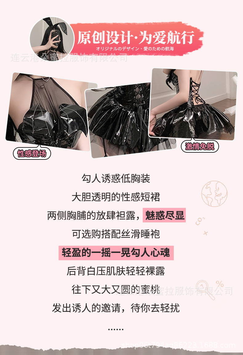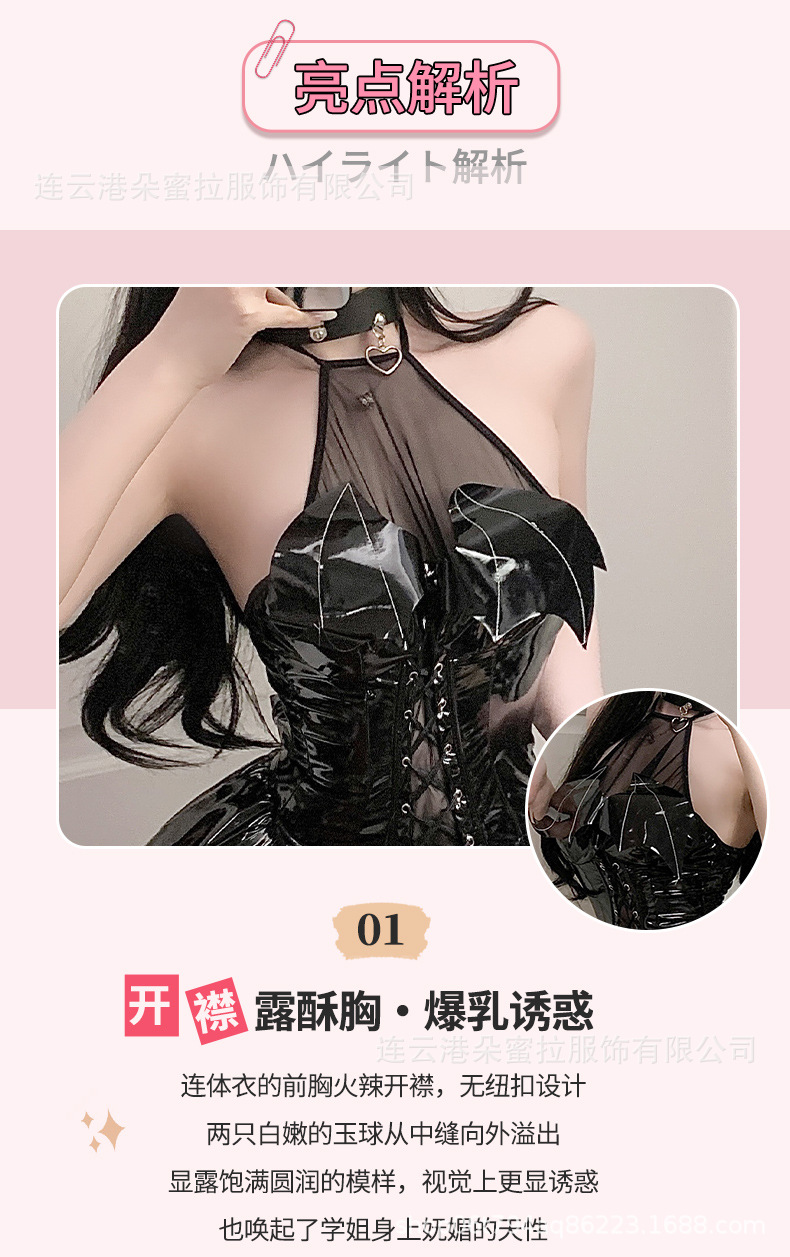 Domila 새로운 섹시한 속옷 밝은 얼굴 PU 교수형 목 스트랩 박쥐 Deviruchi 관점 스커트 세트 F301스토어 가기