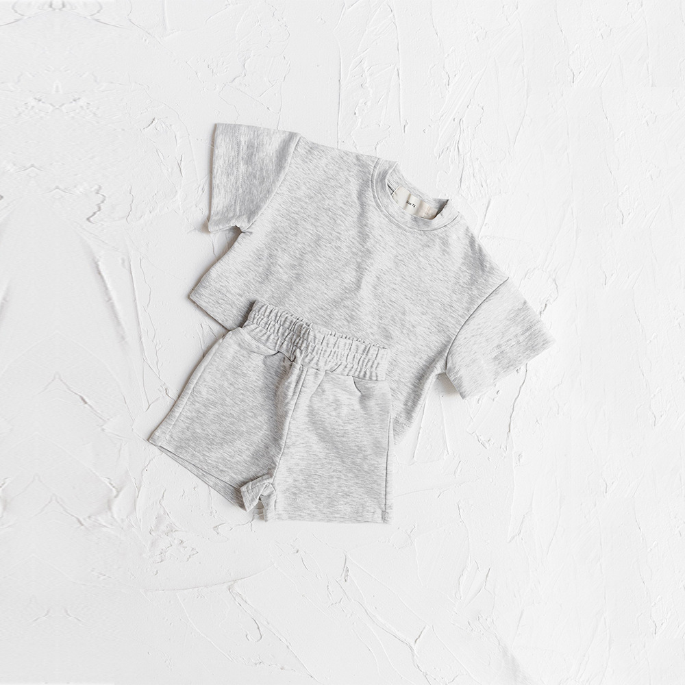 새로운 아기 반팔 반바지 세트 스타일 여름 단색 소프트 스포츠 티셔츠 투피스 세트스토어 가기