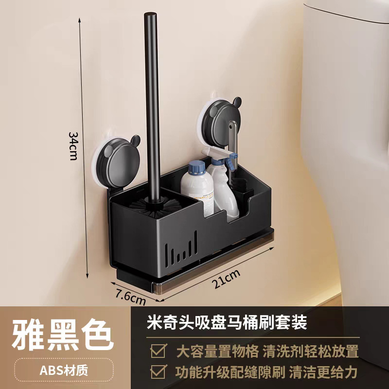 • 물받이가 있는 검정색 이중 흡입 컵 변기 브러시 보관함