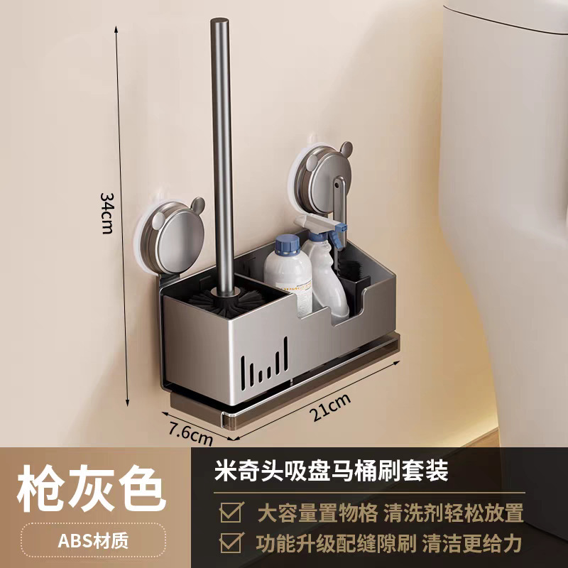 • 물받이가 있는 건 그레이 이중 흡입 컵 변기 브러시 보관함