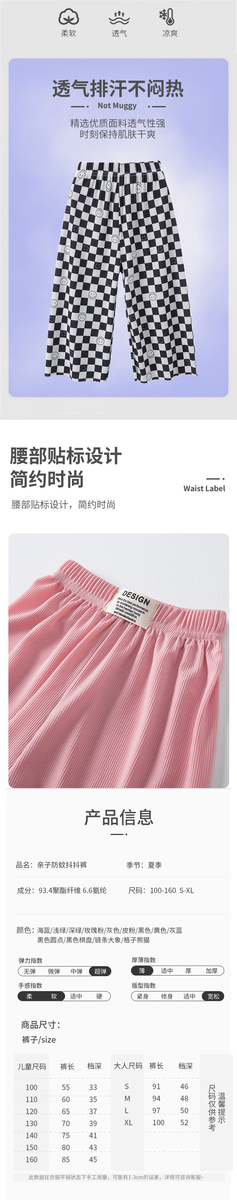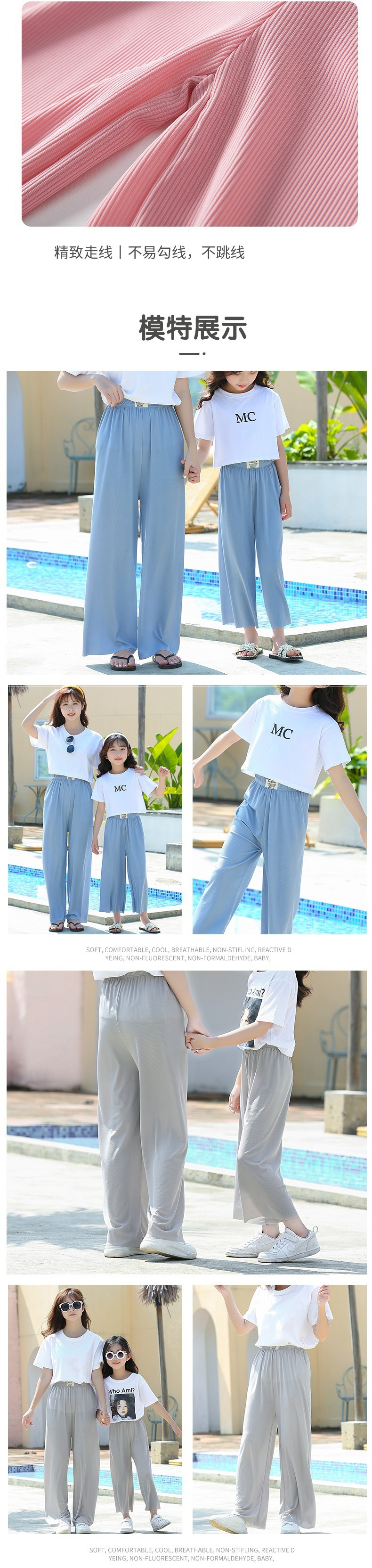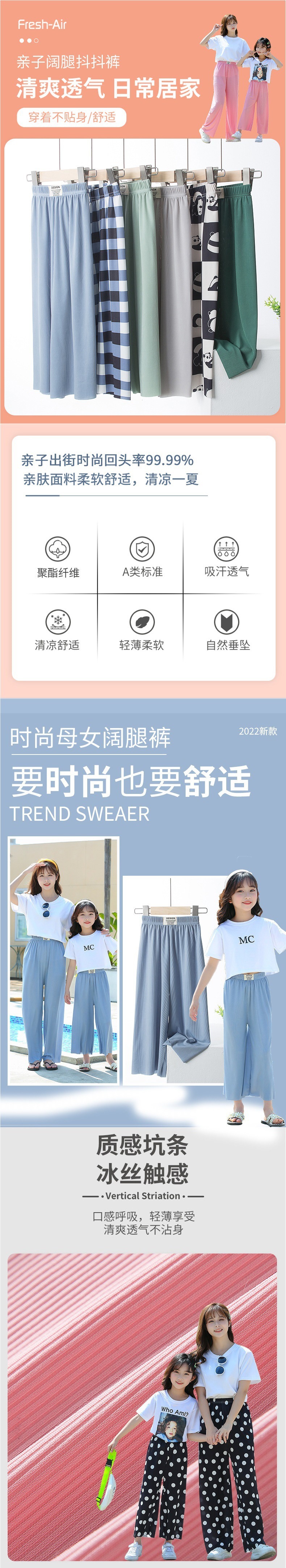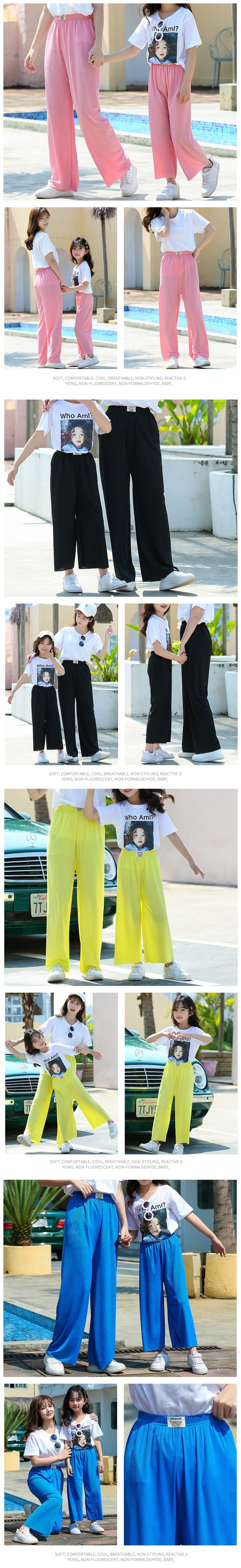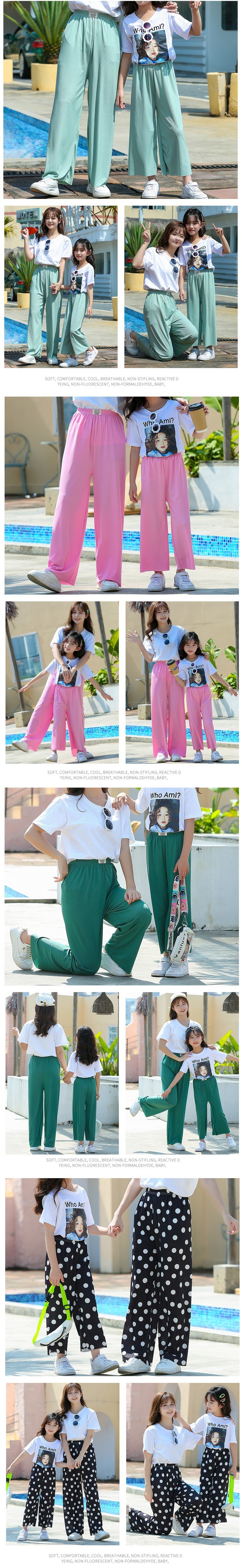 여름 남아 여아 아이스 실크 와이드 팬츠, 빅키즈 루즈 팬츠, 여아 여름 엄마와 딸 의류, 모기 방지 9부 팬츠스토어 가기
