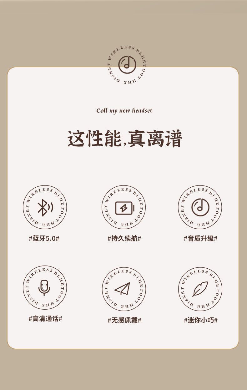 정품 Disni 공동 브랜드 인이어 휴대폰 범용 Pingguo 안드로이드 헤드폰 재고 있음 비밀 텍스트 드롭 배송