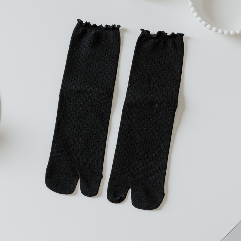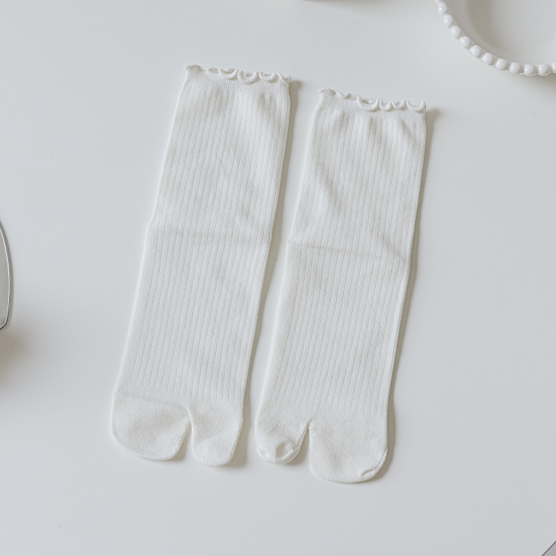 봄과 여름 발가락 양말 여성용 나무 귀 튜브 양말 세로 줄무늬 두 손가락 양말 단색 간단한 돼지 발굽 양말 여성의면 양말