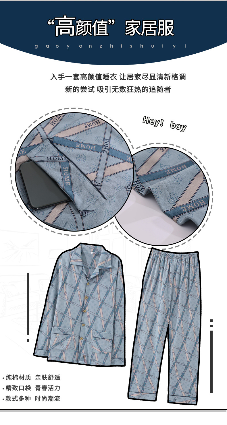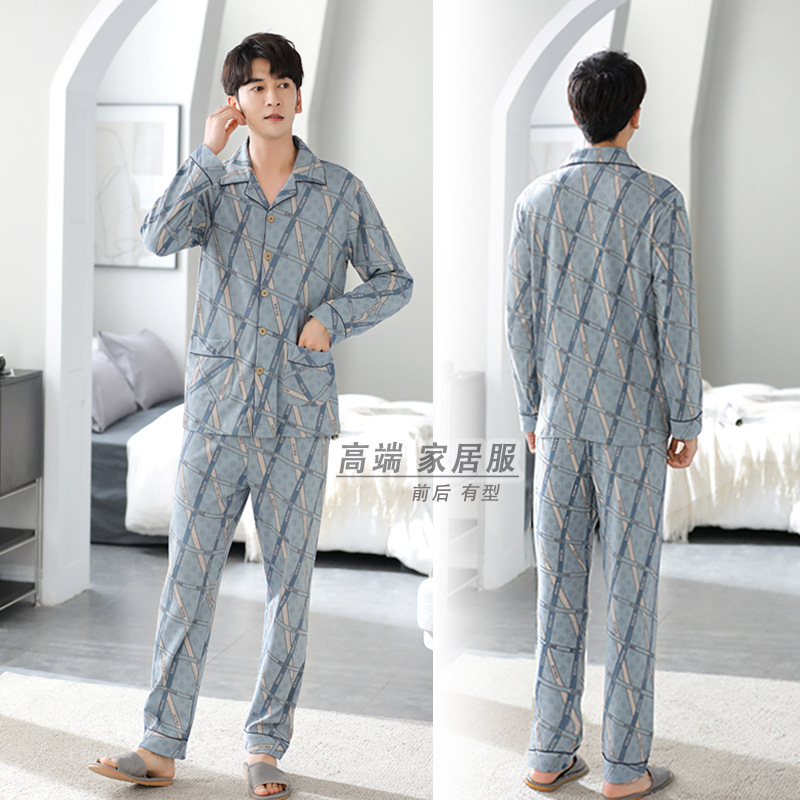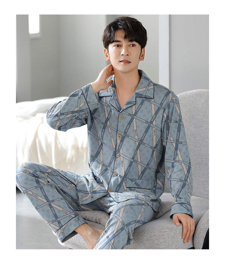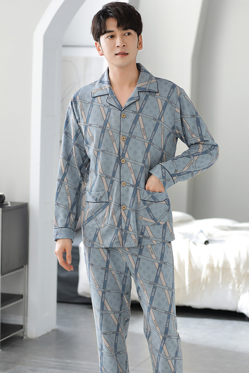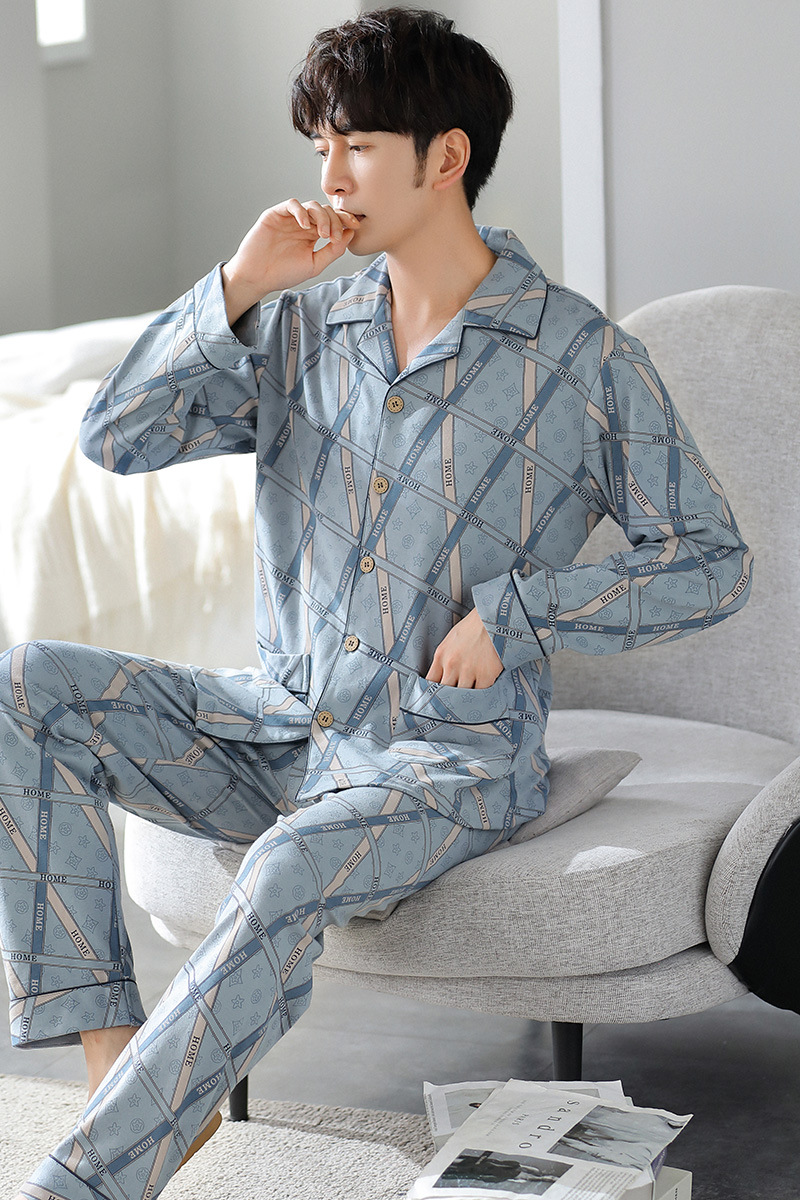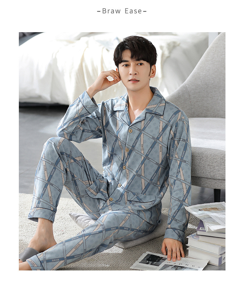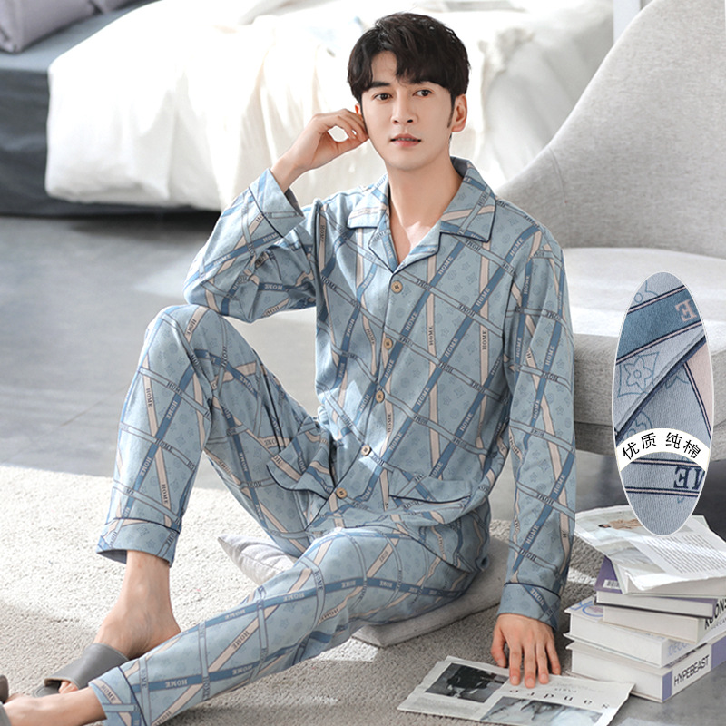 Sujith 잠옷 남자의 2023 새로운 면 긴 소매 바지 편안한 플러스 사이즈 면 가정 옷 세트 남성스토어 가기