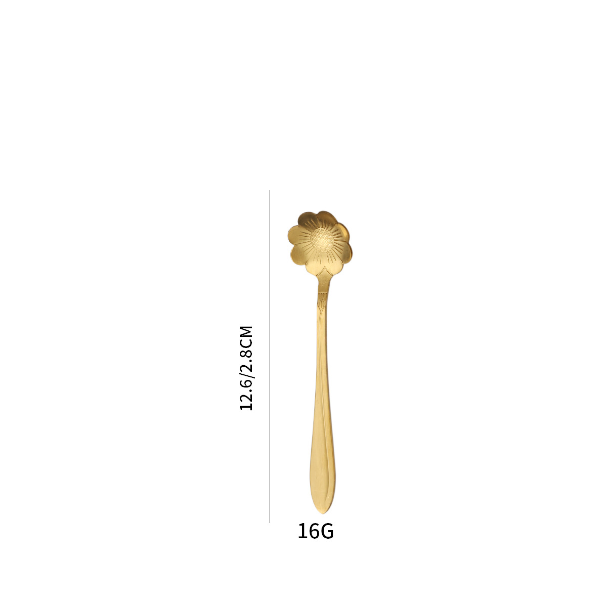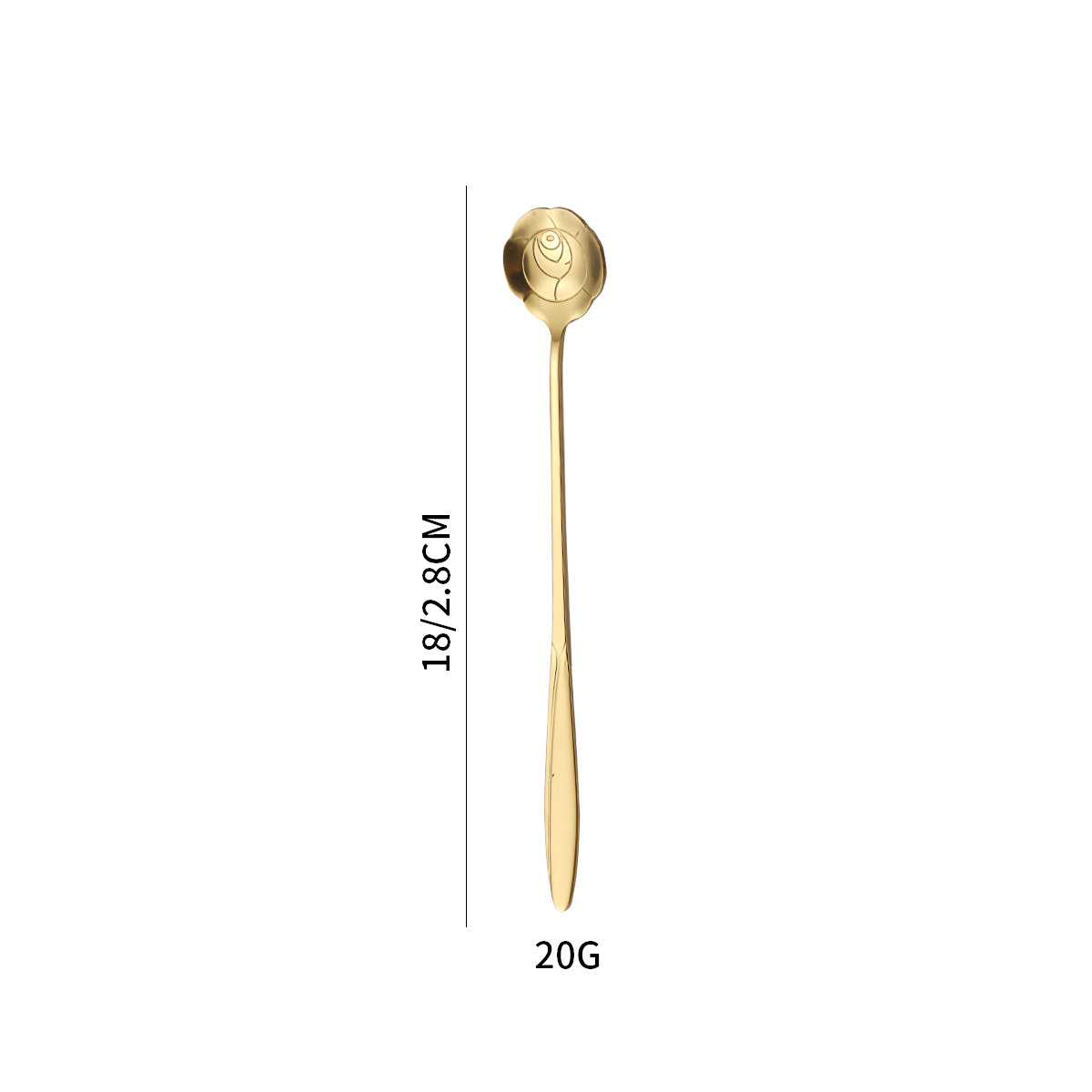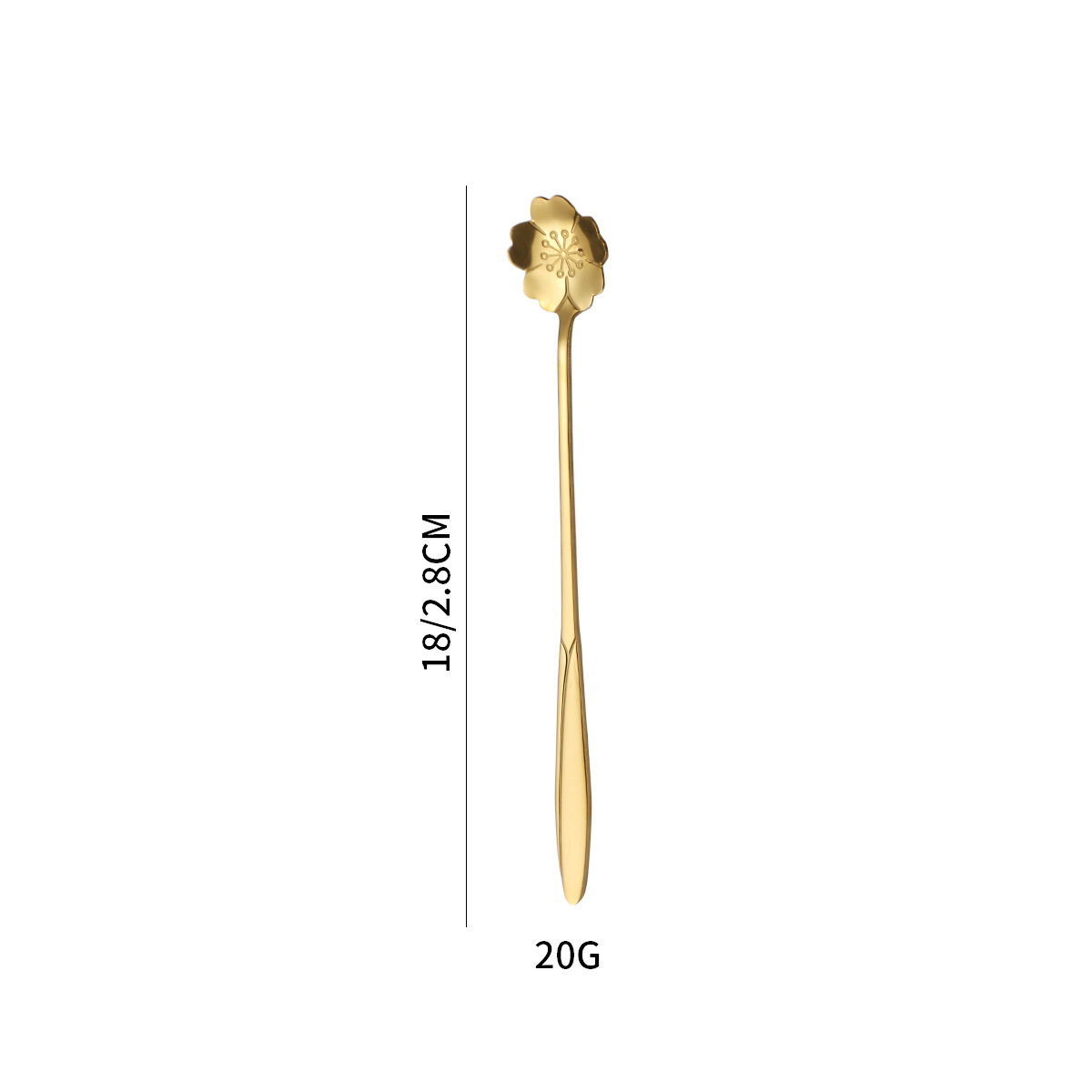 공장 도매 스테인레스 스틸 식기 벚꽃 스푼 디저트 스푼 골든 크리에이티브 롱 핸들 믹싱 스푼 커피 스푼