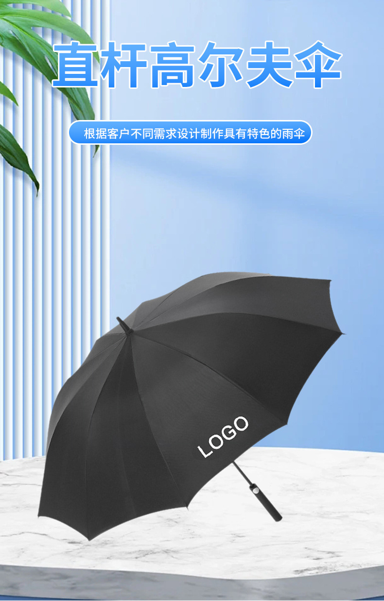 10 뼈 검정 고무 사업 선물 우산 도매 27 인치 풀 섬유 자동 골프 우산 광고 우산 로고스토어 가기