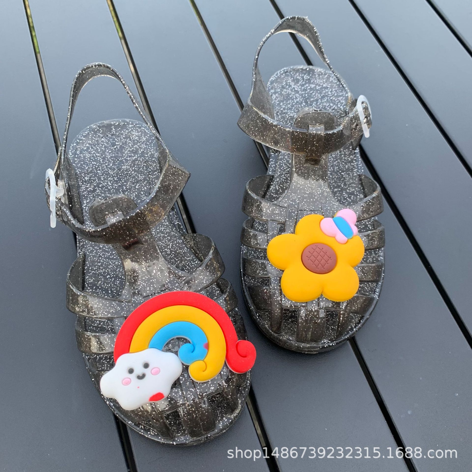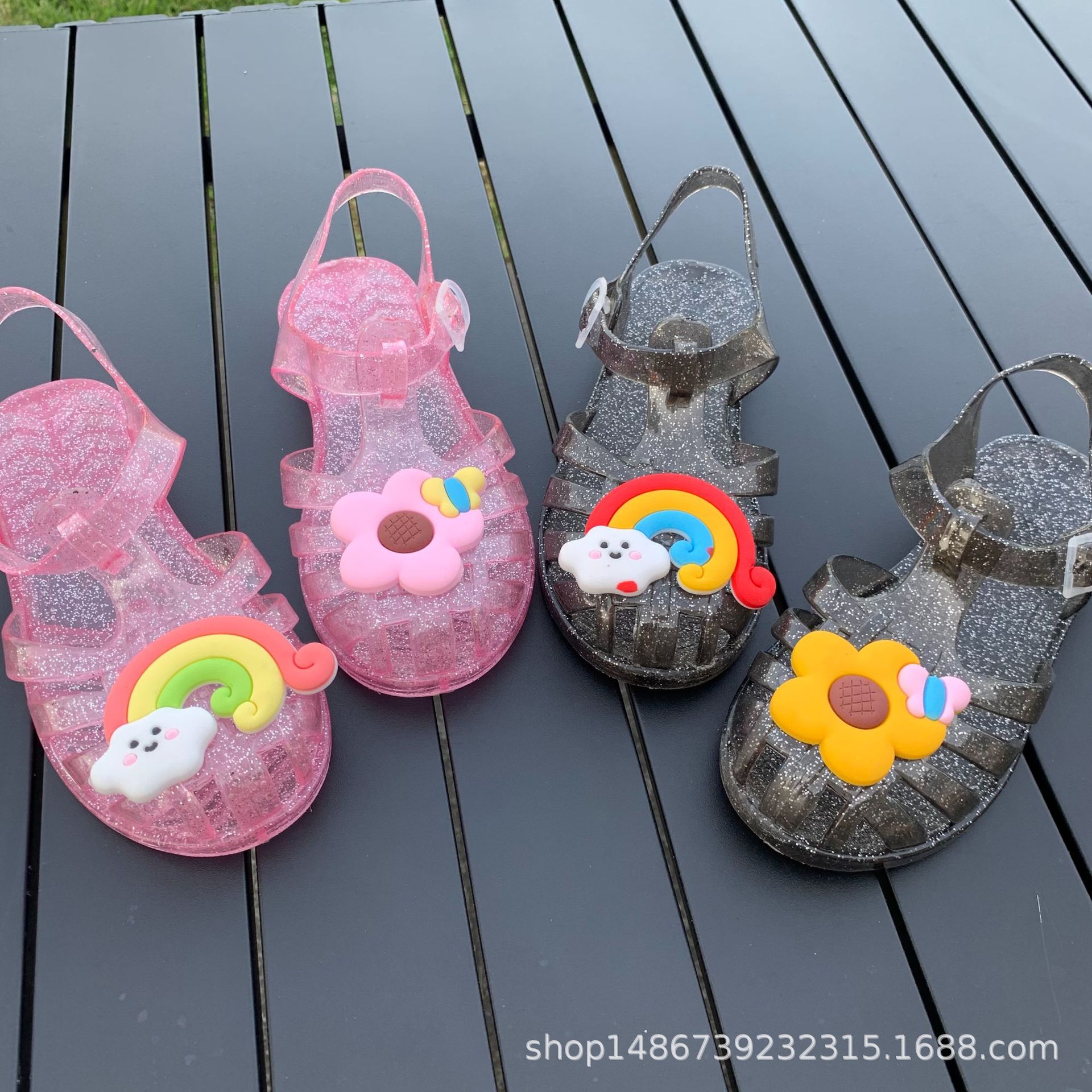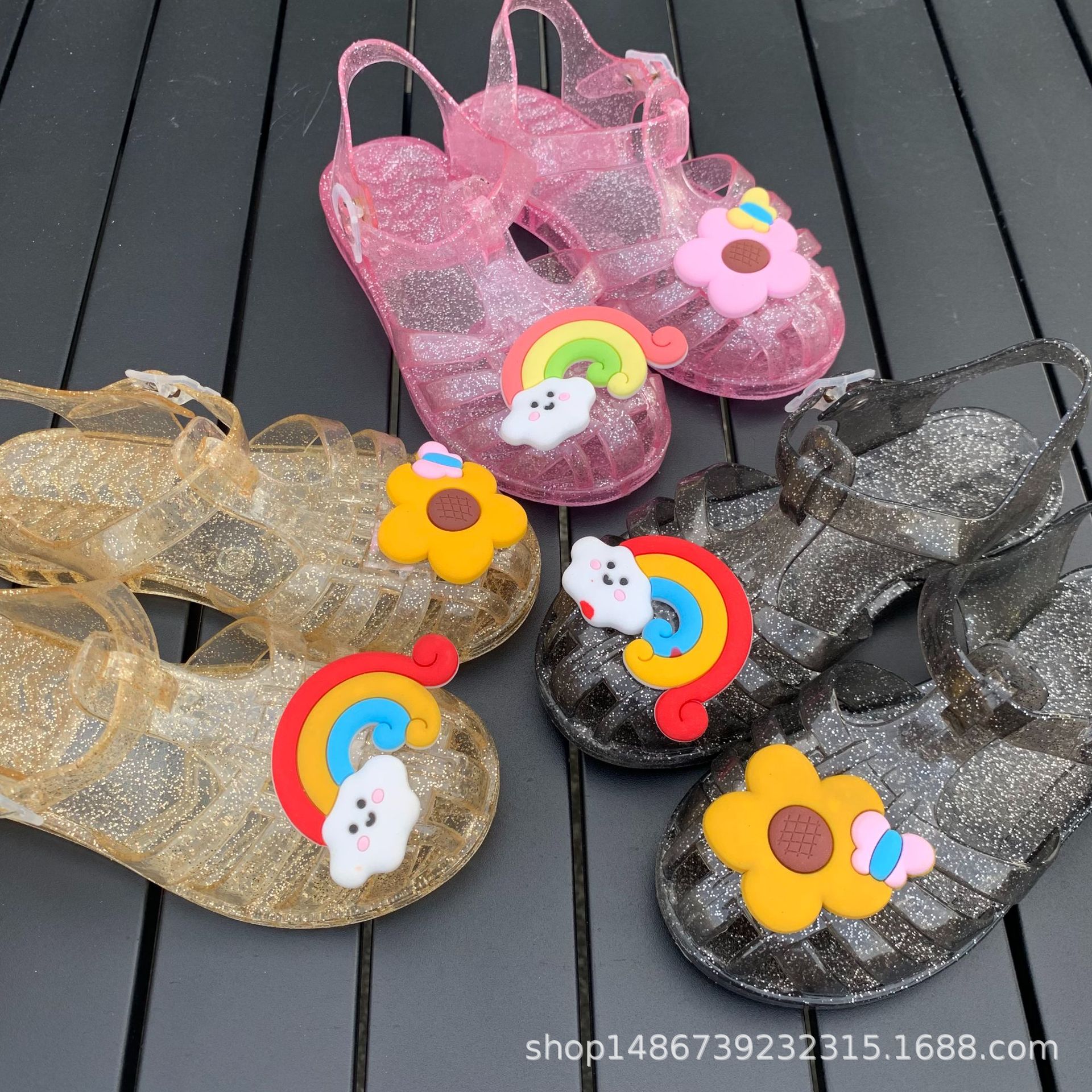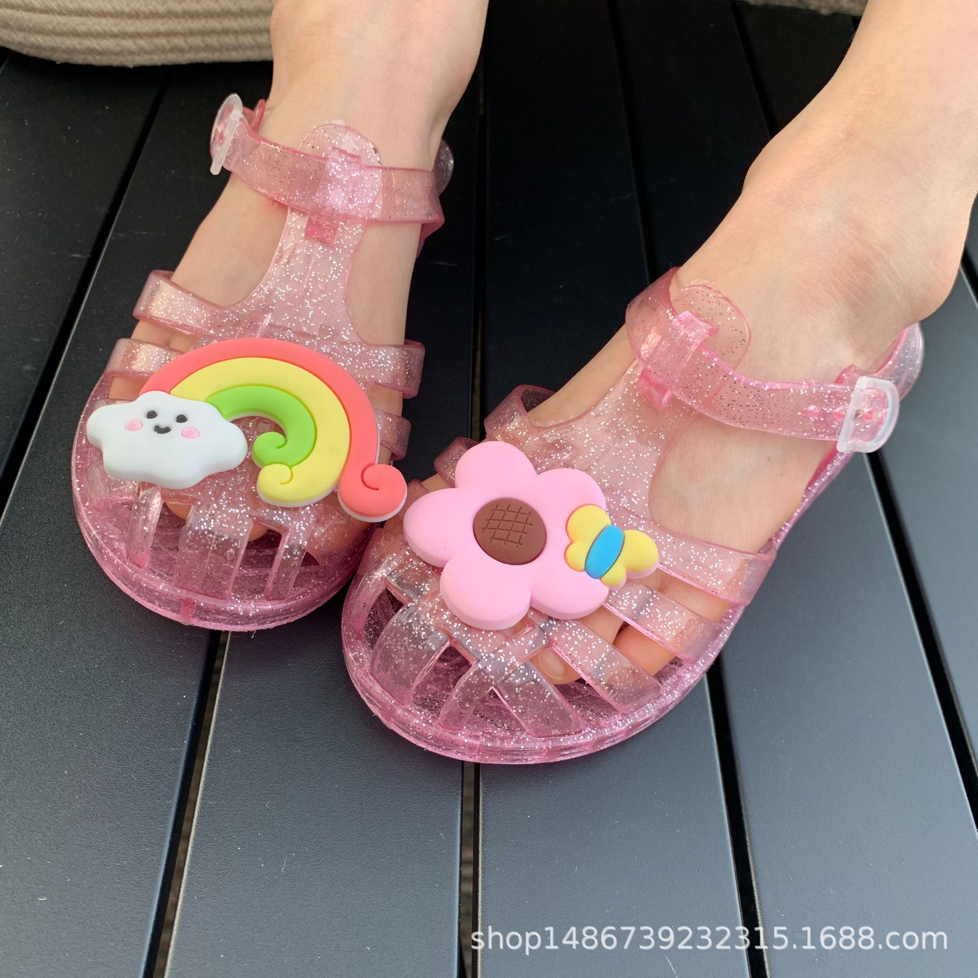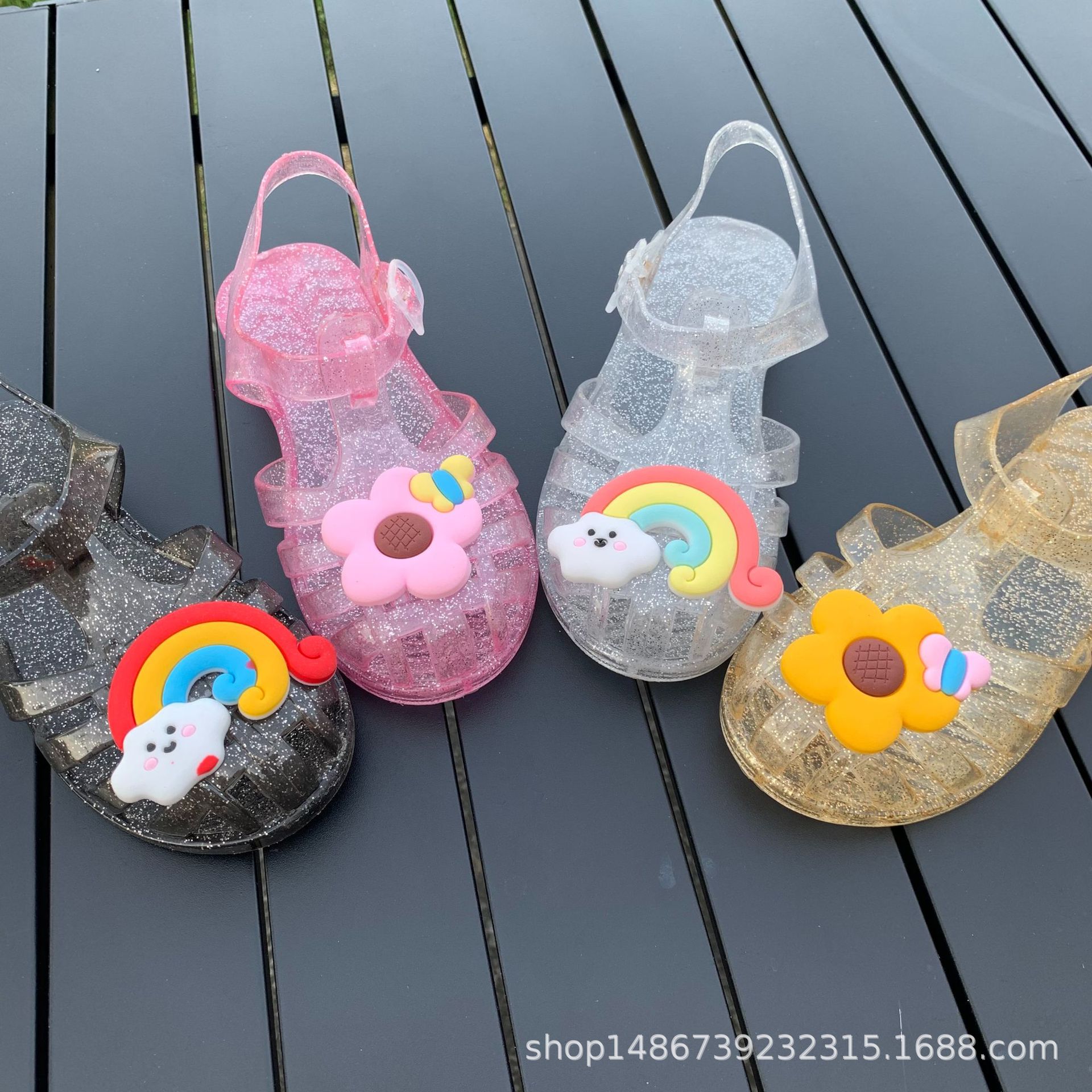 여름 새로운 플라스틱 샌들 젤리 신발 발가락 부드러운 단독 샌들 남성과 여성을위한 아기 만화 귀여운 비치 신발 대외 무역스토어 가기