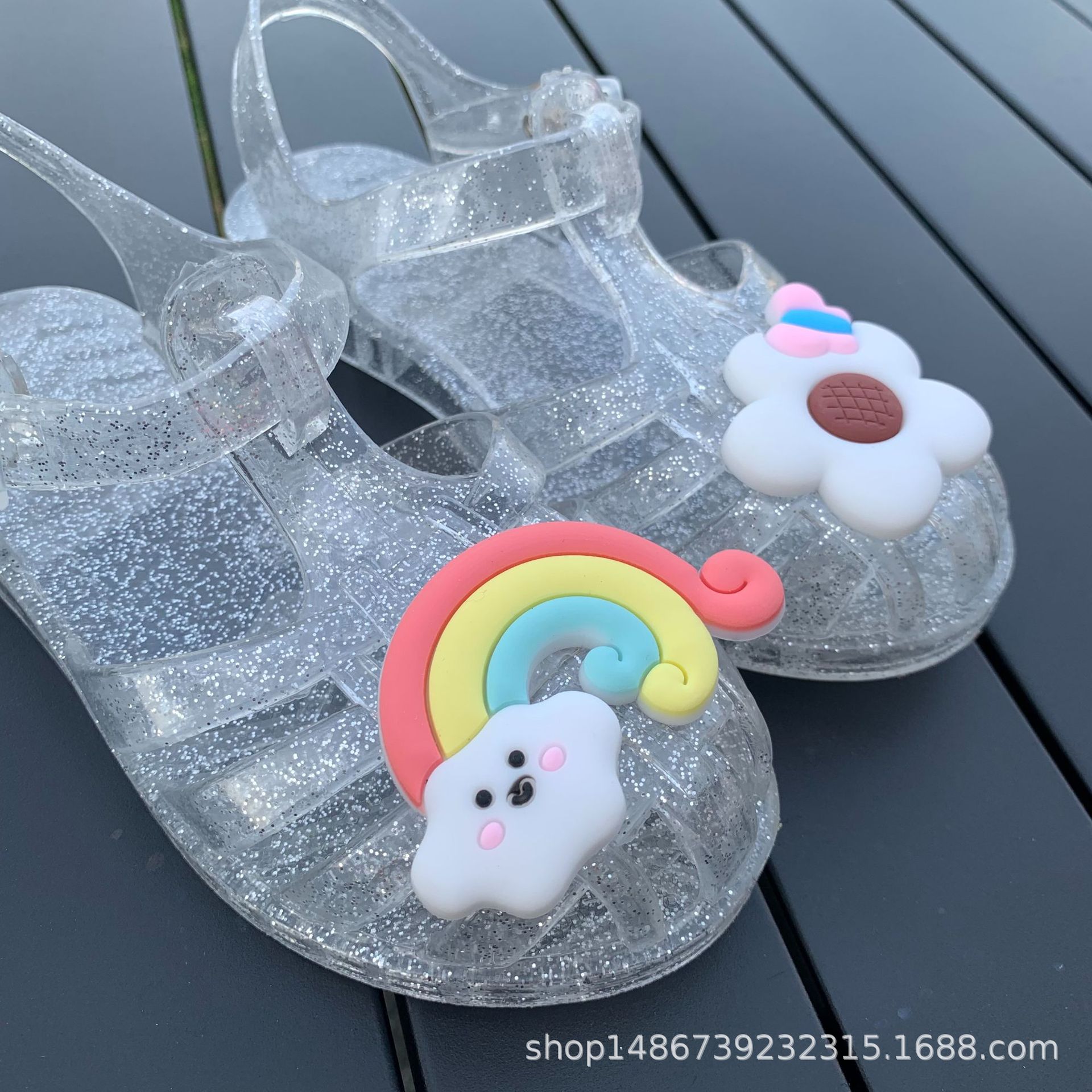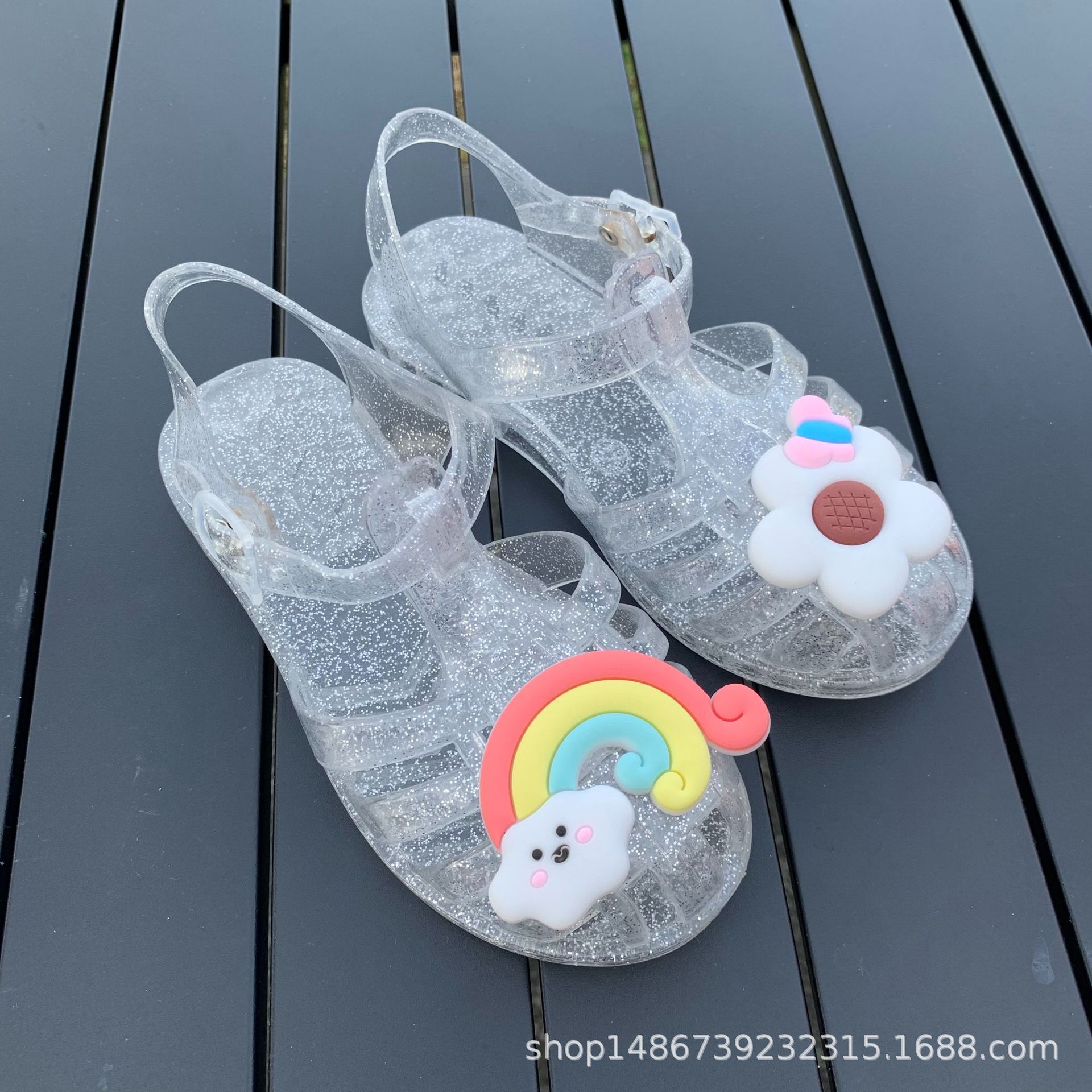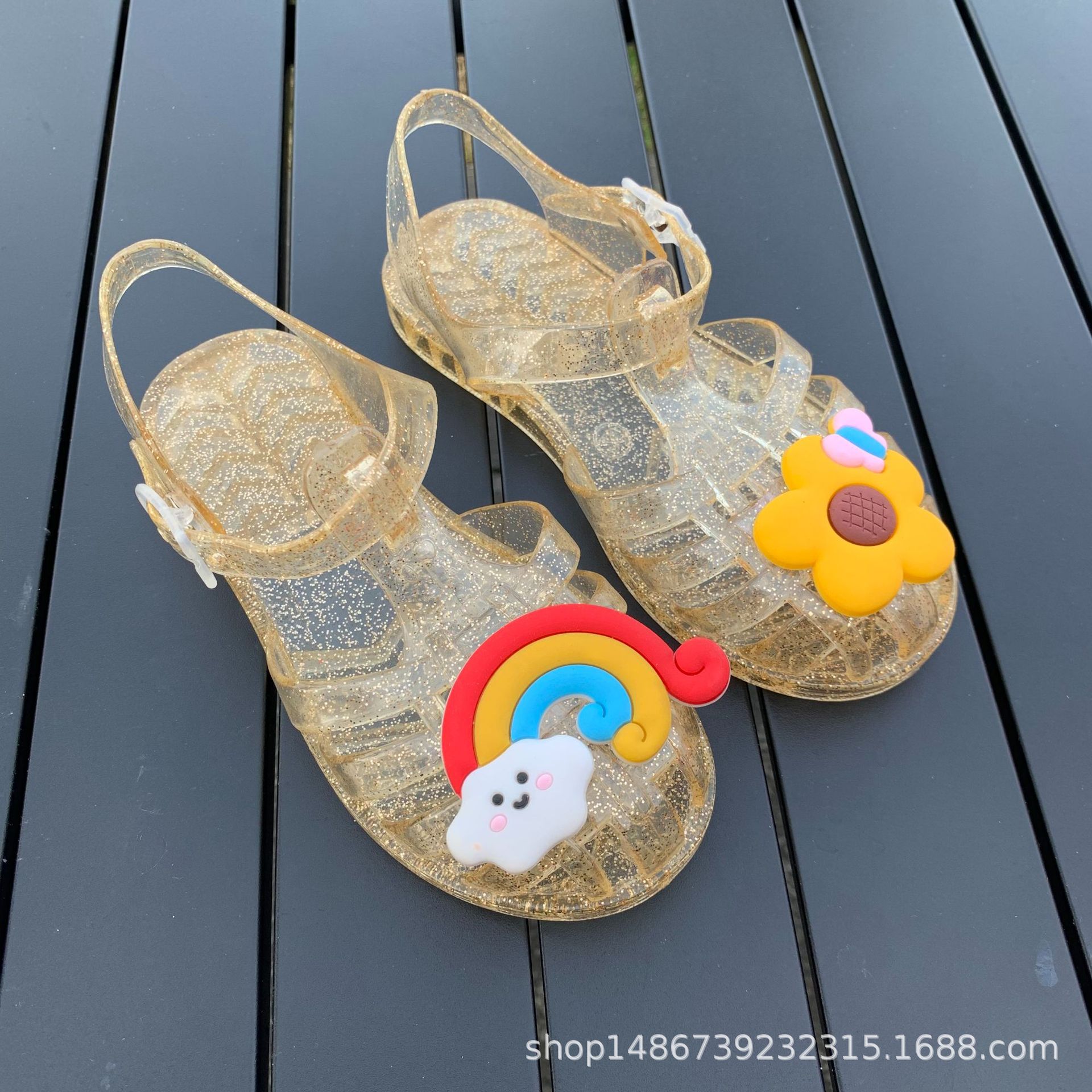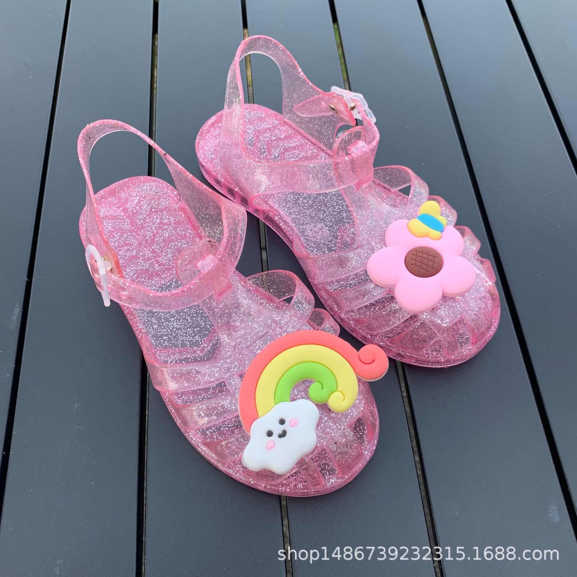 여름 새로운 플라스틱 샌들 젤리 신발 발가락 부드러운 단독 샌들 남성과 여성을위한 아기 만화 귀여운 비치 신발 대외 무역스토어 가기