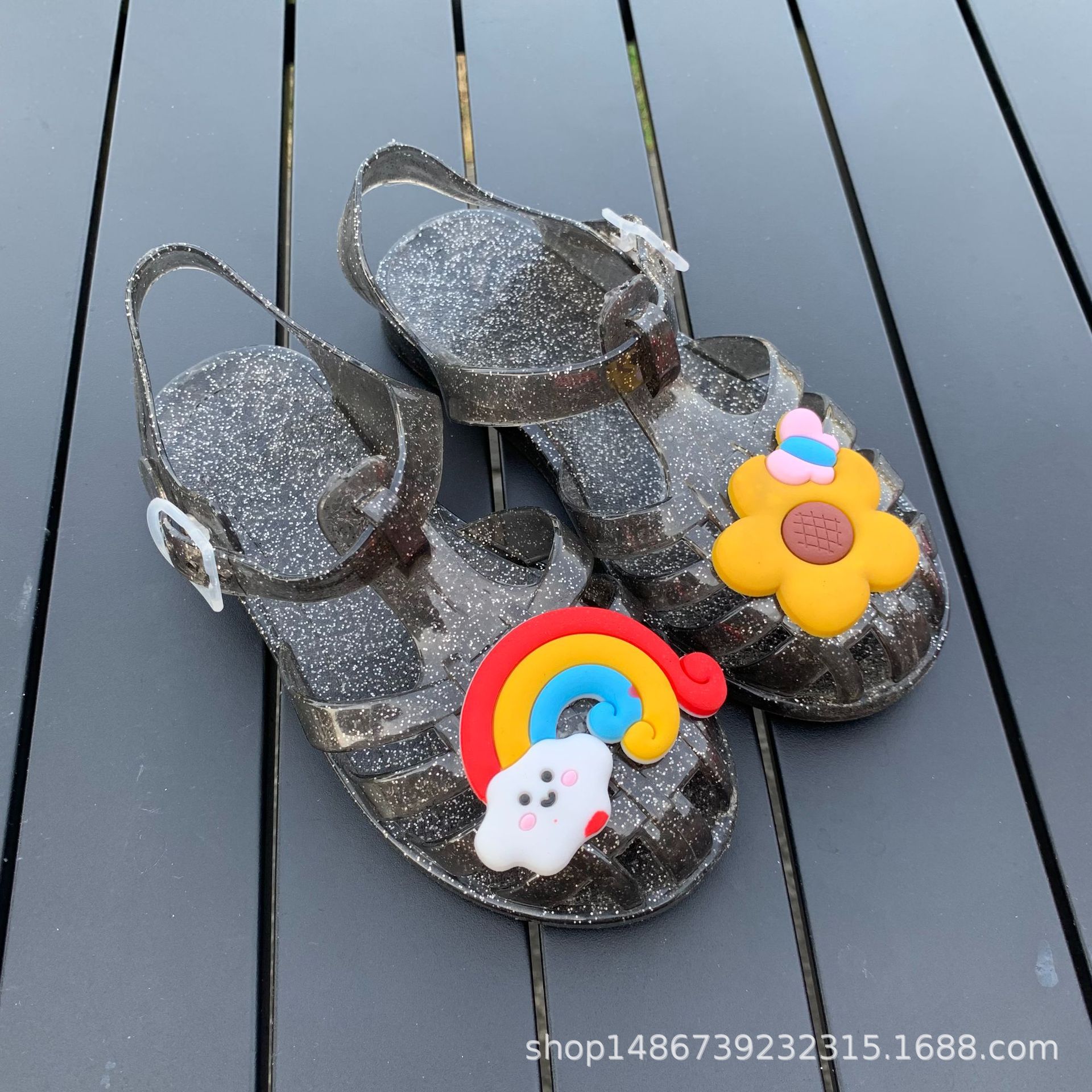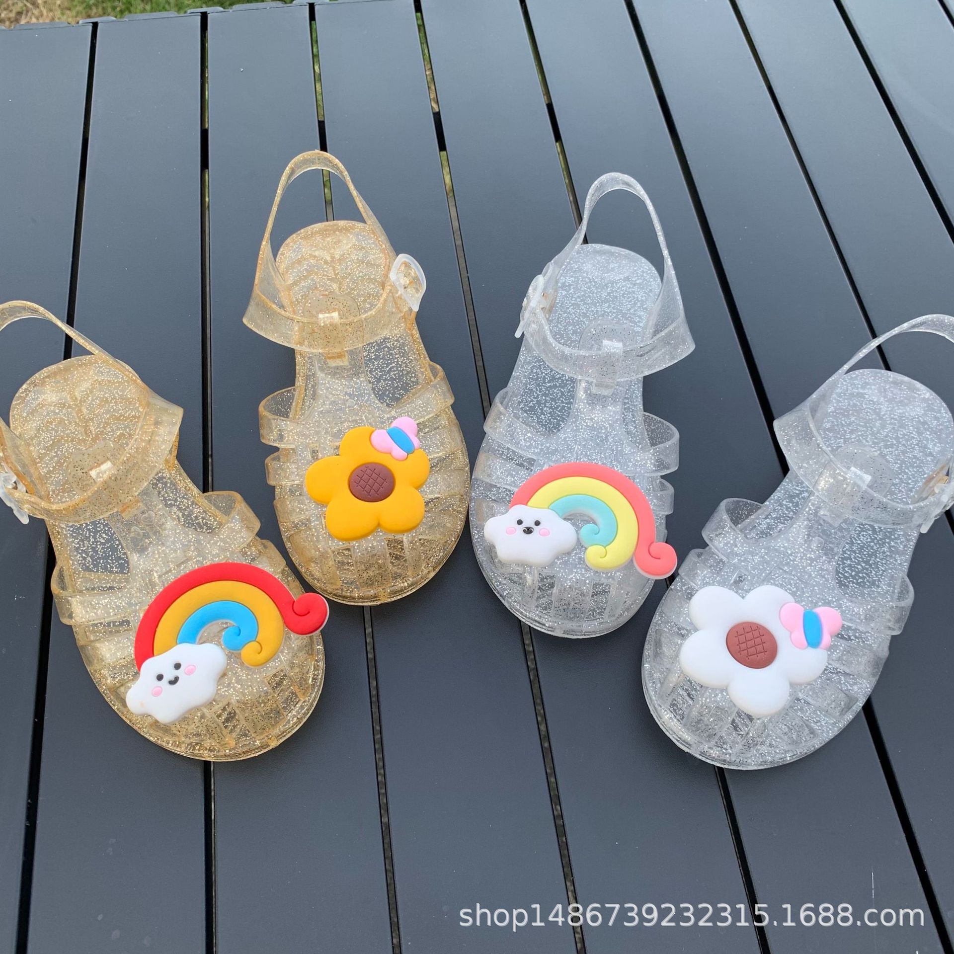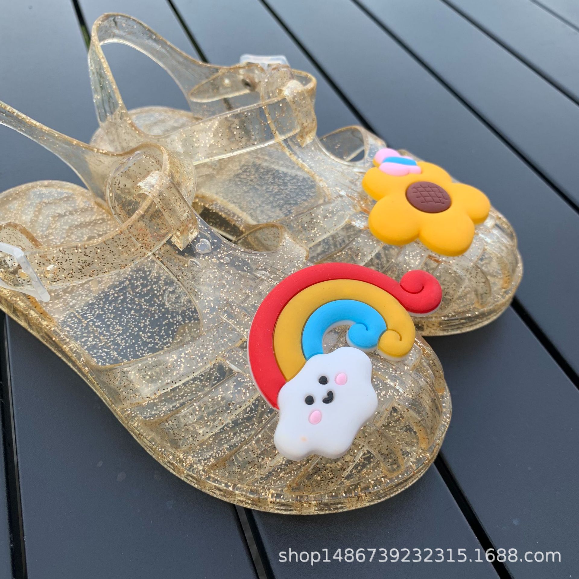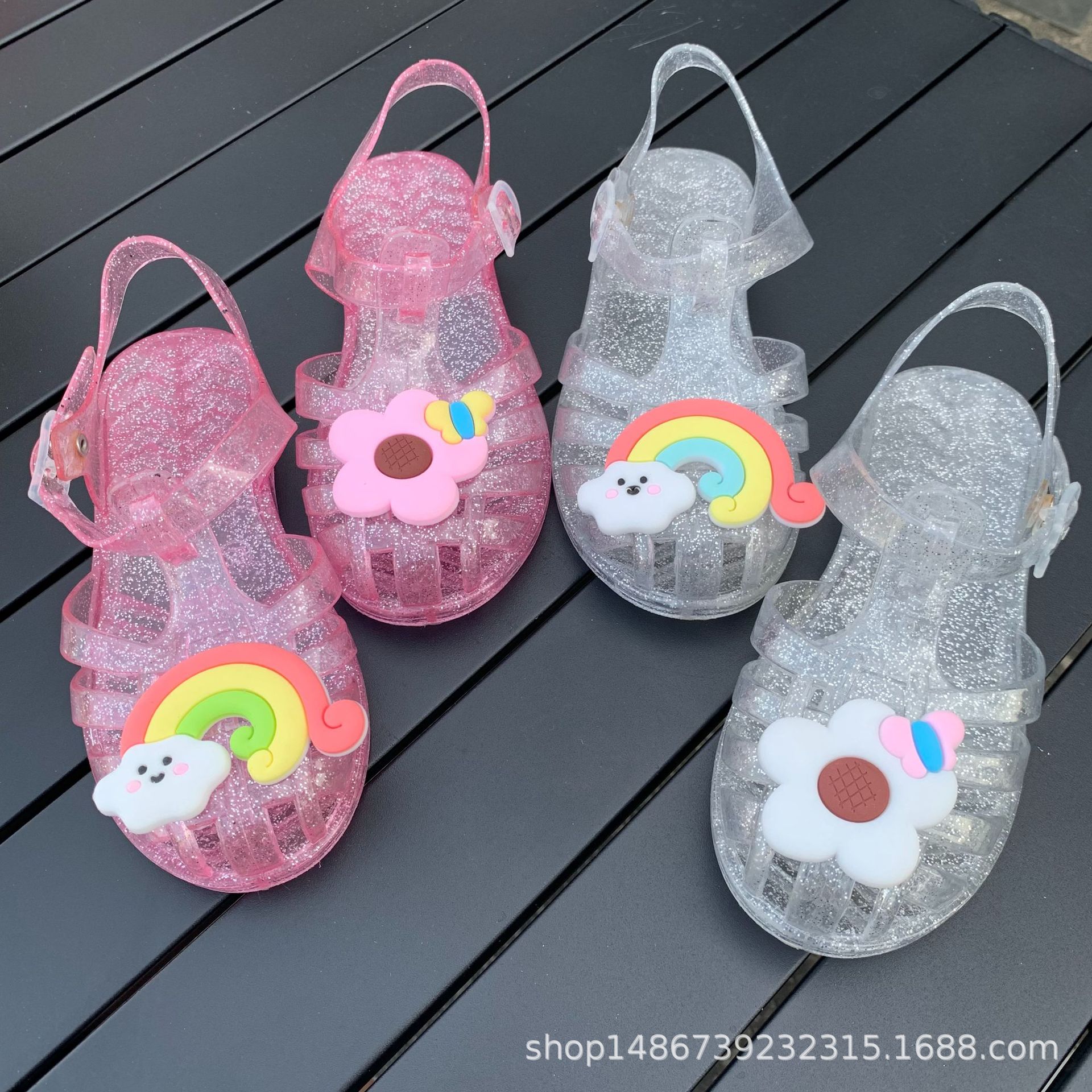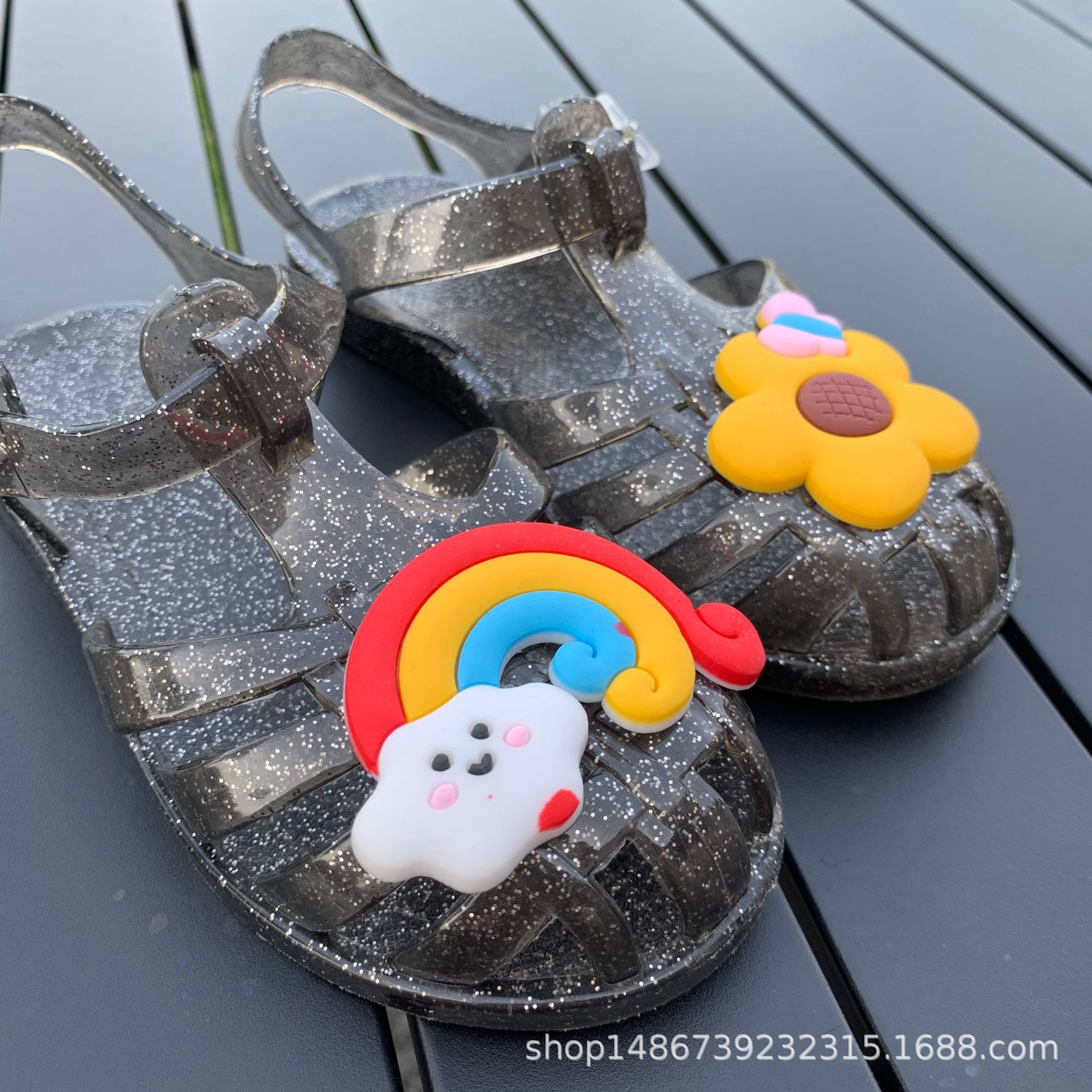 여름 새로운 플라스틱 샌들 젤리 신발 발가락 부드러운 단독 샌들 남성과 여성을위한 아기 만화 귀여운 비치 신발 대외 무역스토어 가기
