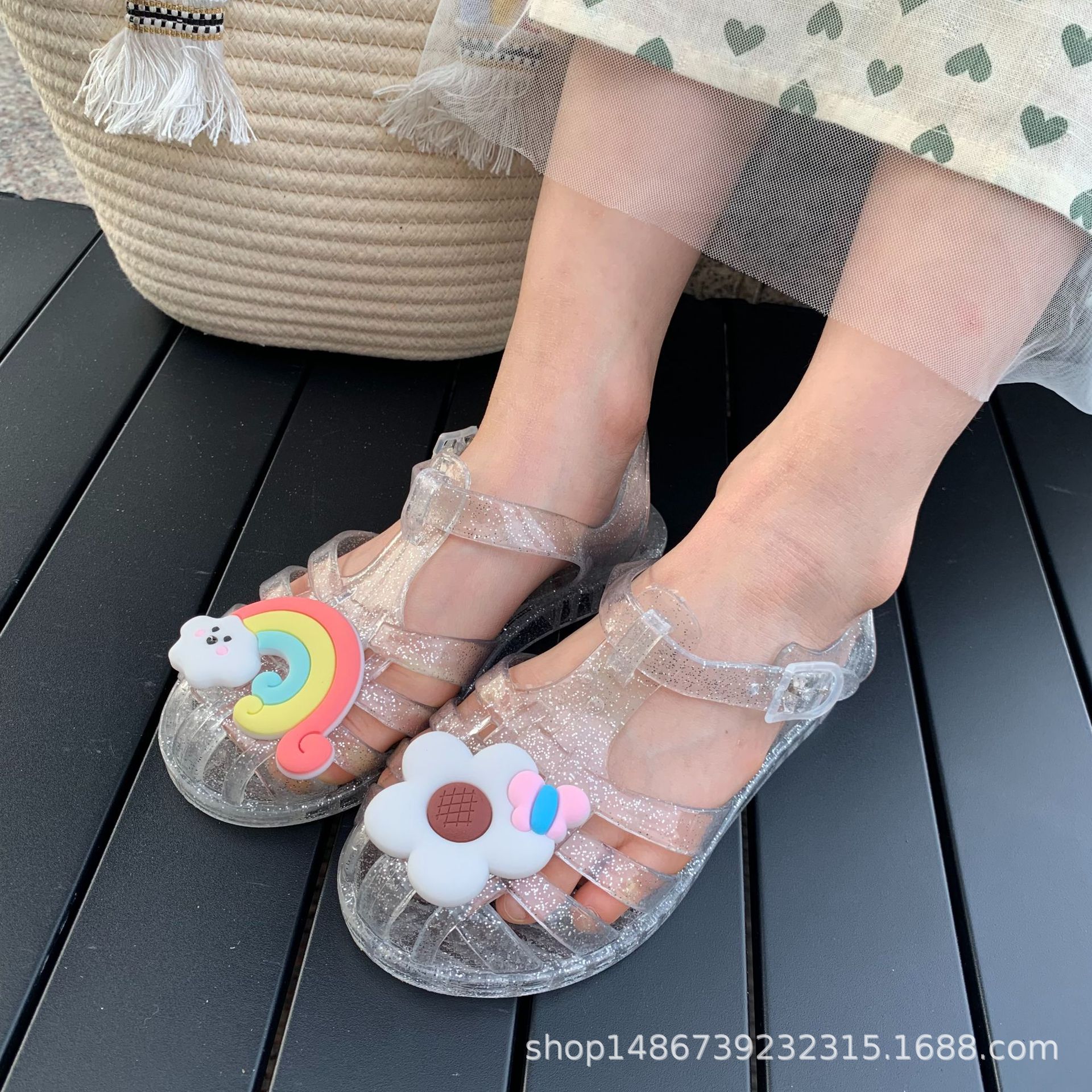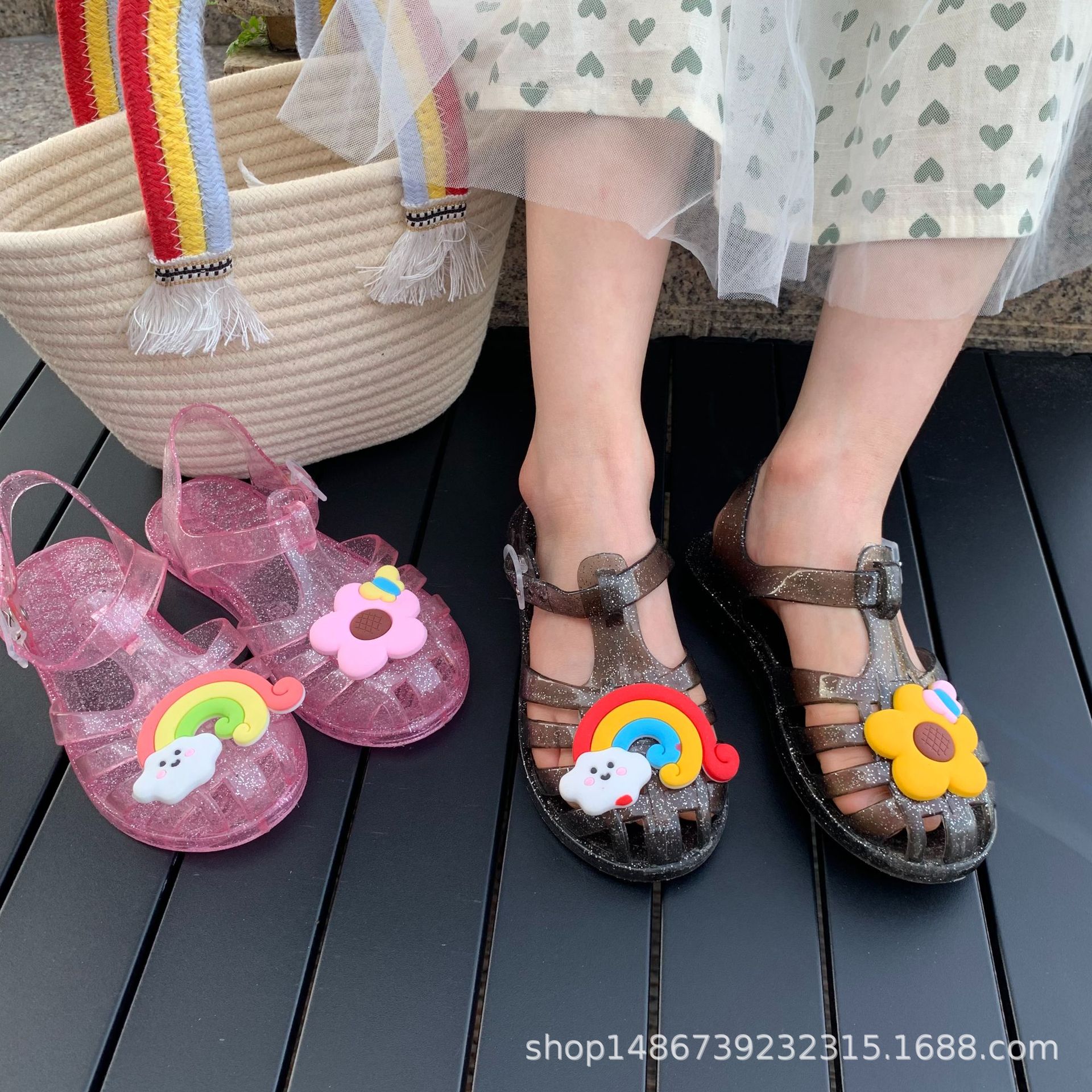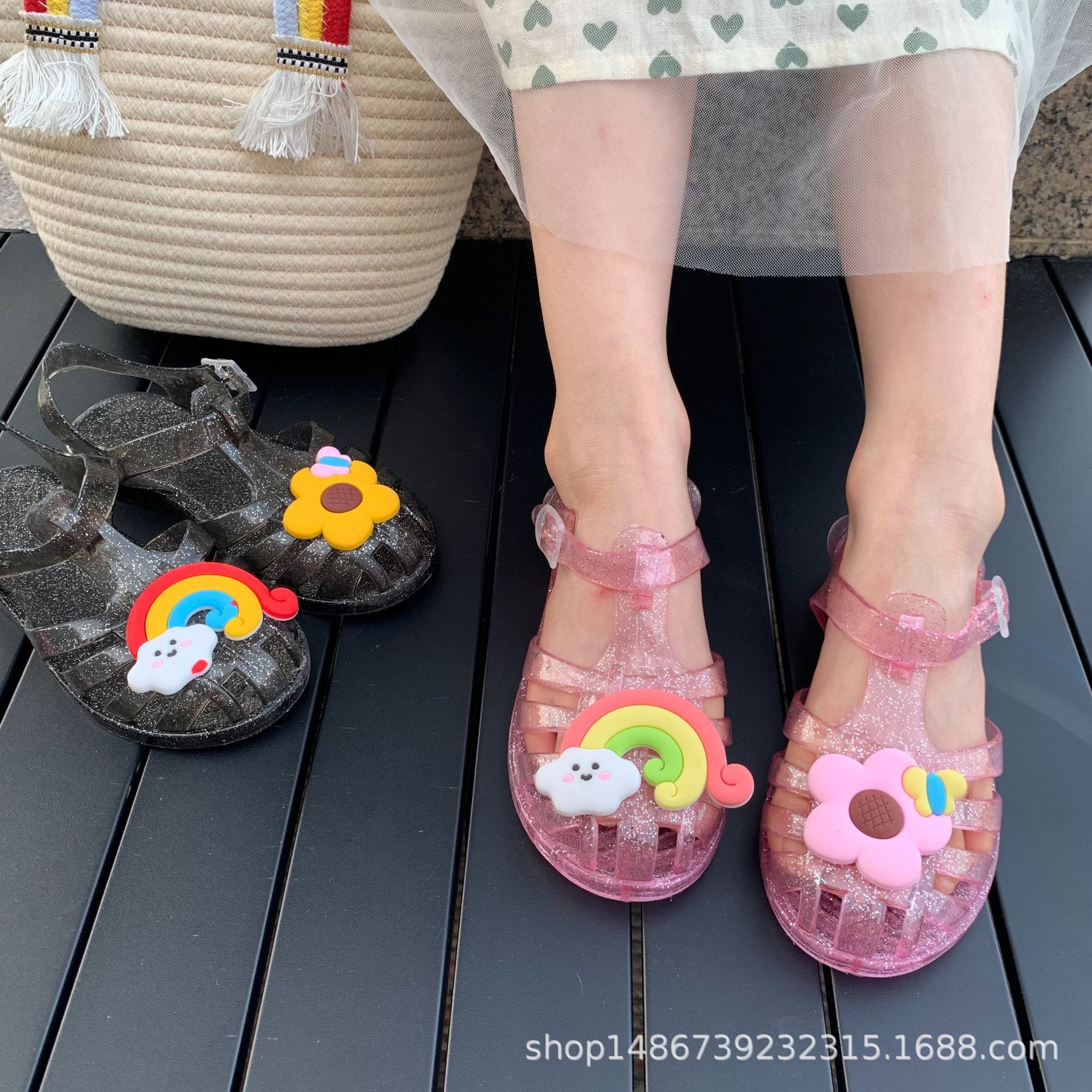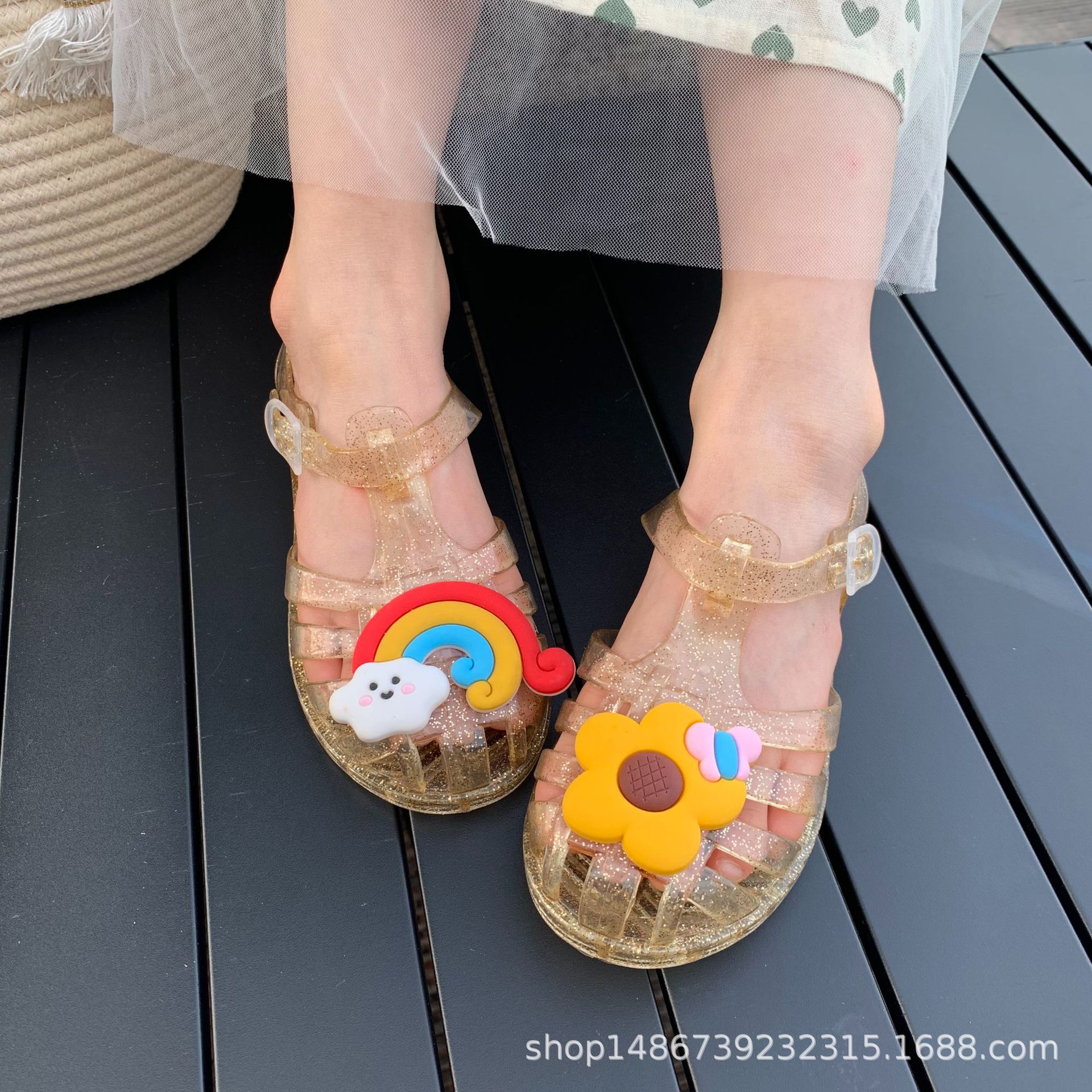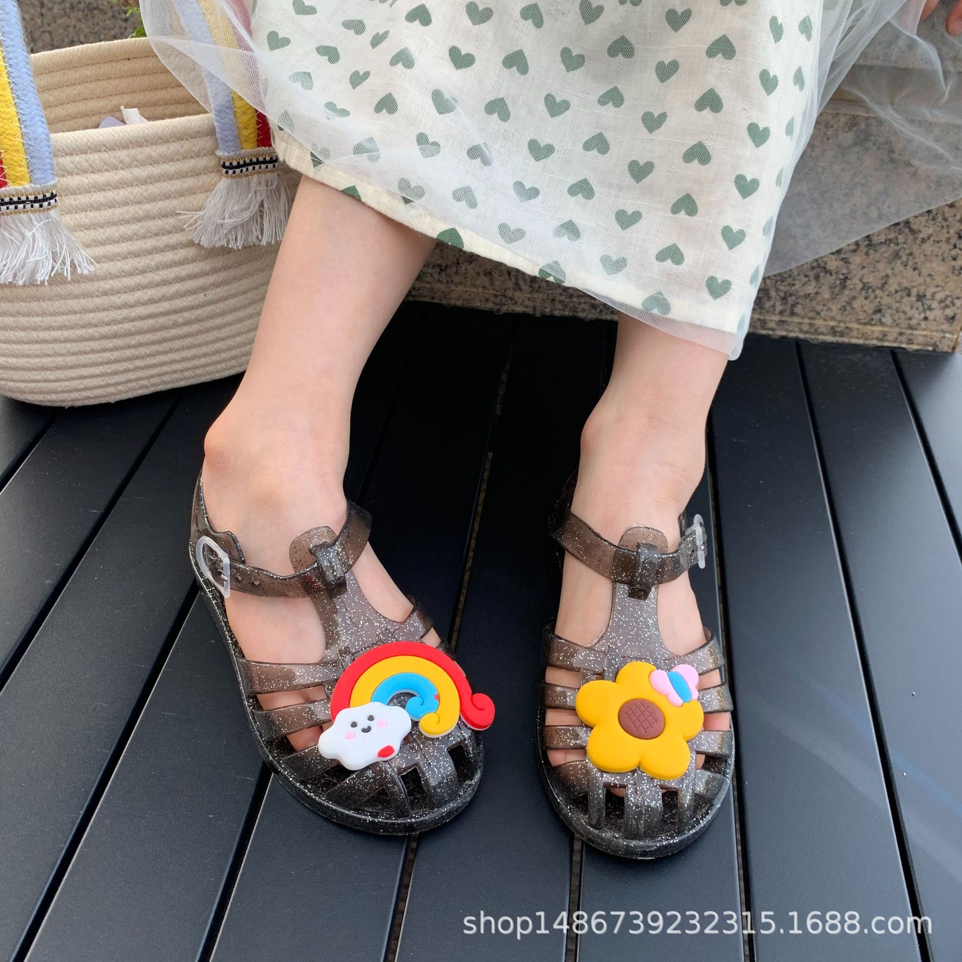 여름 새로운 플라스틱 샌들 젤리 신발 발가락 부드러운 단독 샌들 남성과 여성을위한 아기 만화 귀여운 비치 신발 대외 무역스토어 가기