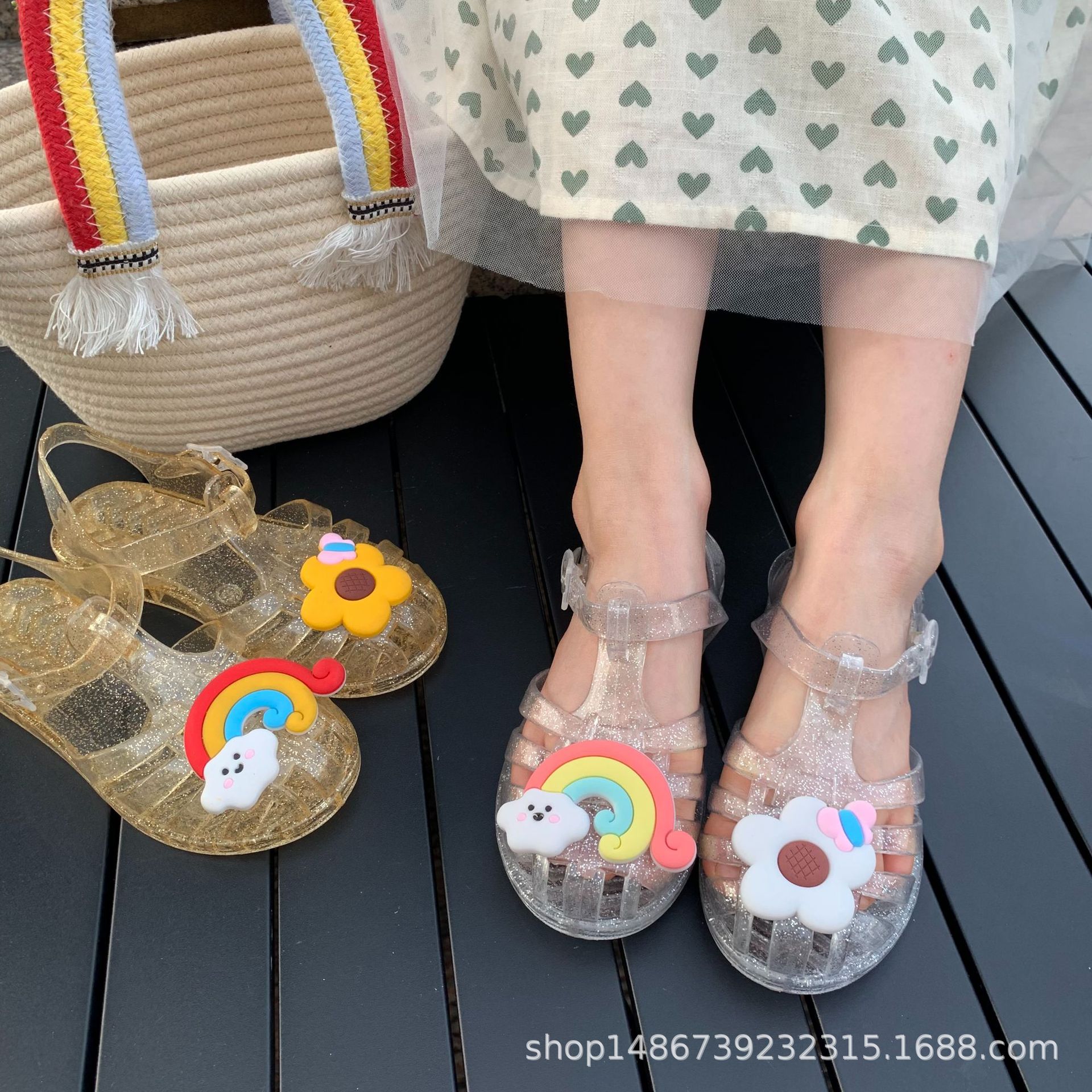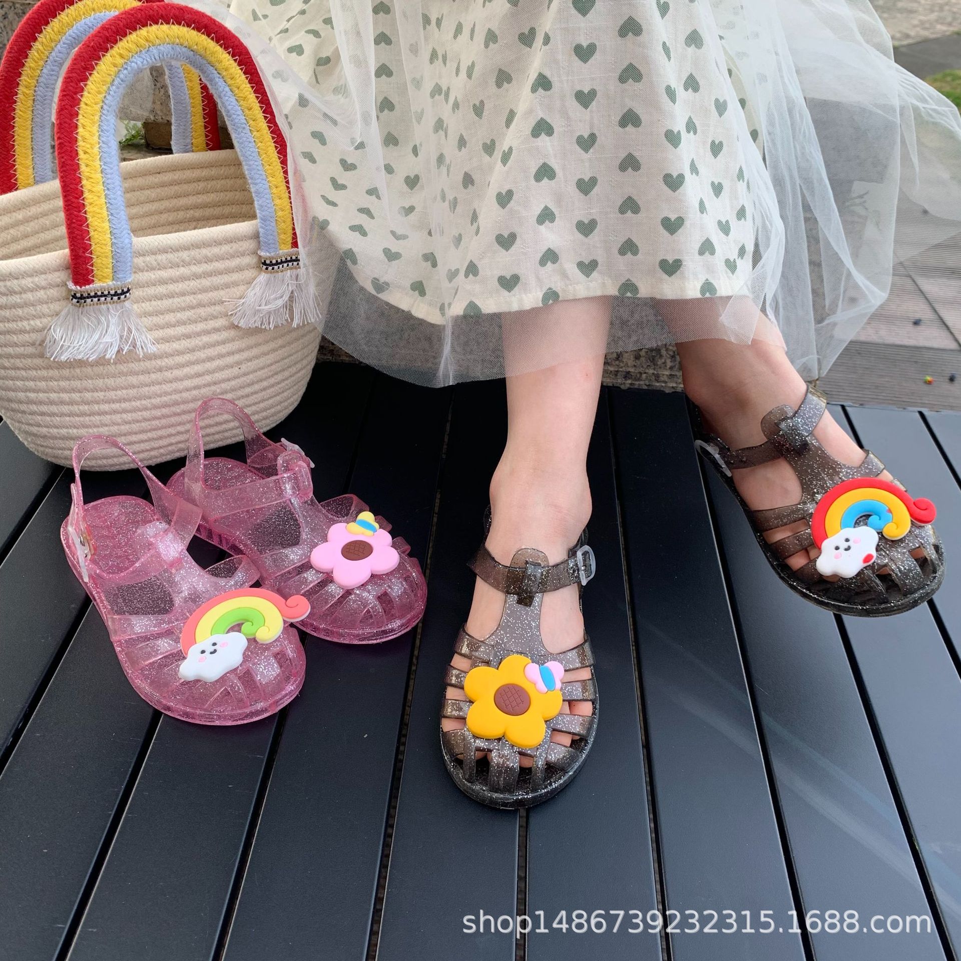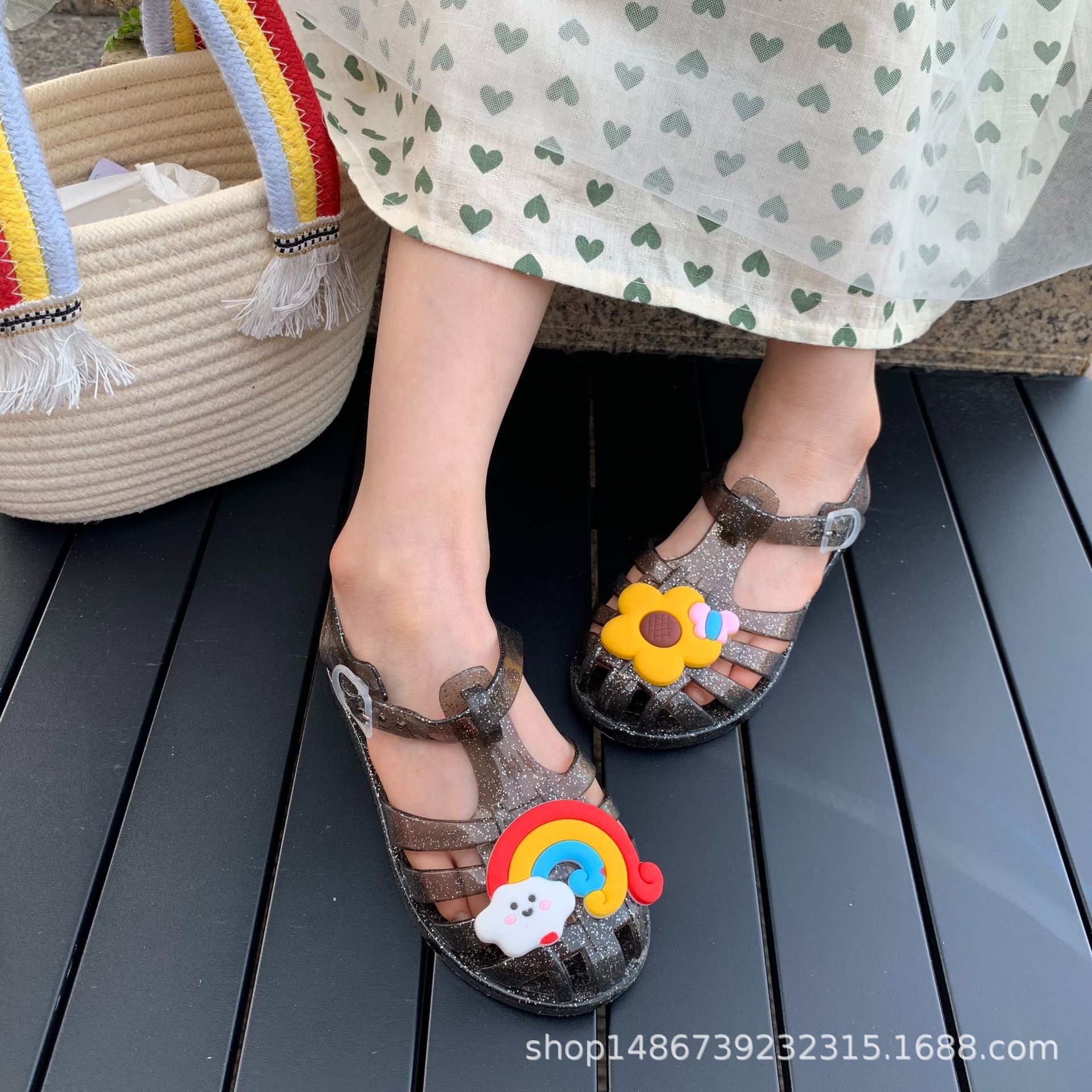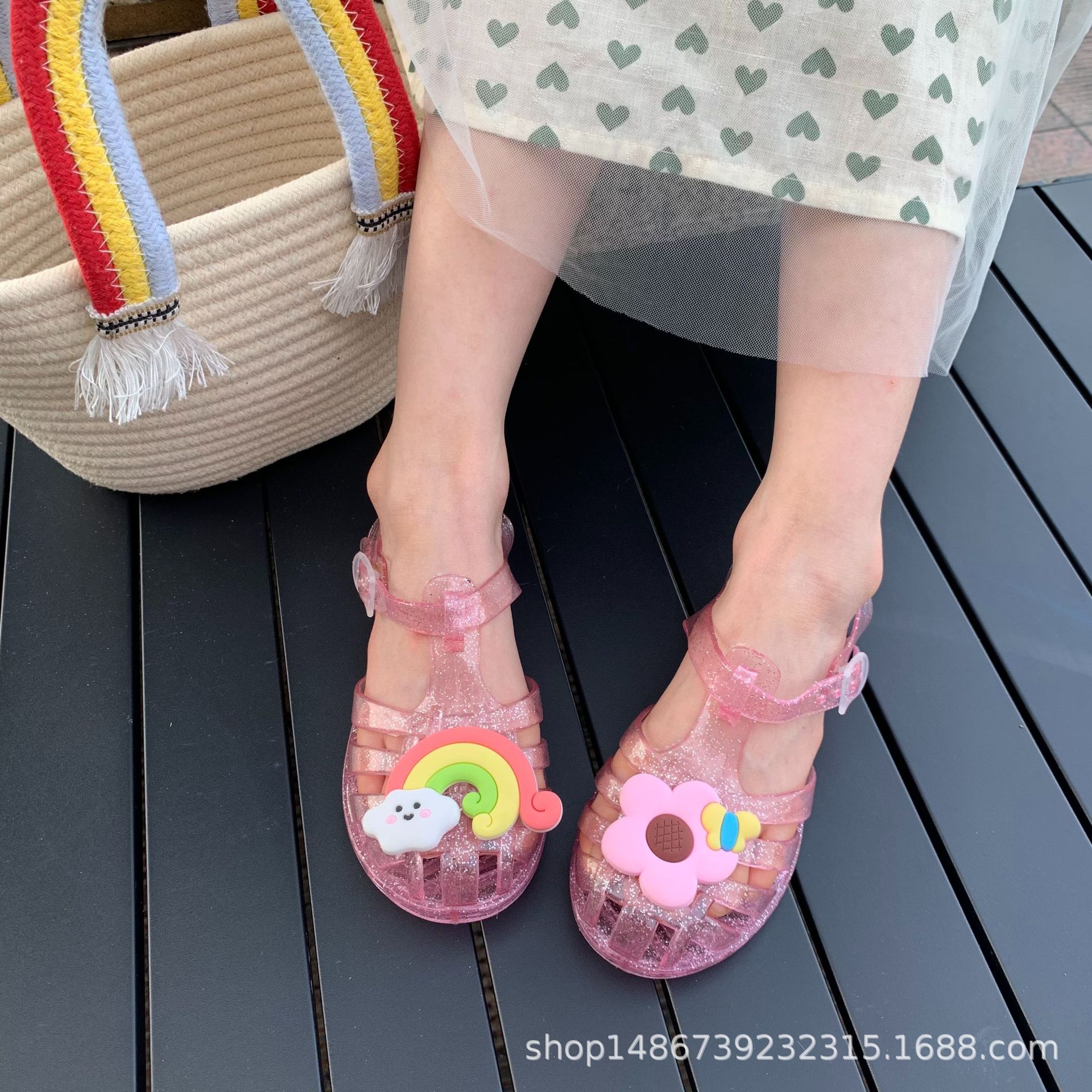 여름 새로운 플라스틱 샌들 젤리 신발 발가락 부드러운 단독 샌들 남성과 여성을위한 아기 만화 귀여운 비치 신발 대외 무역스토어 가기