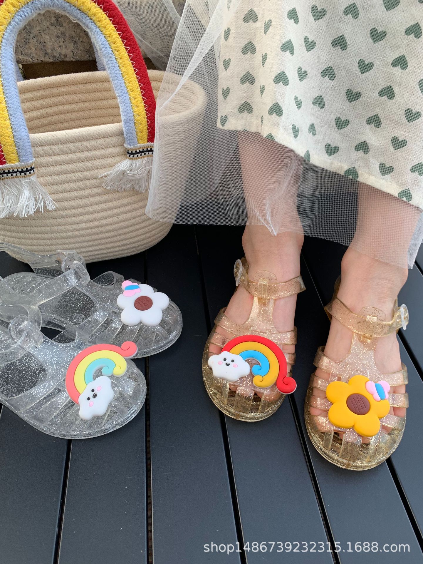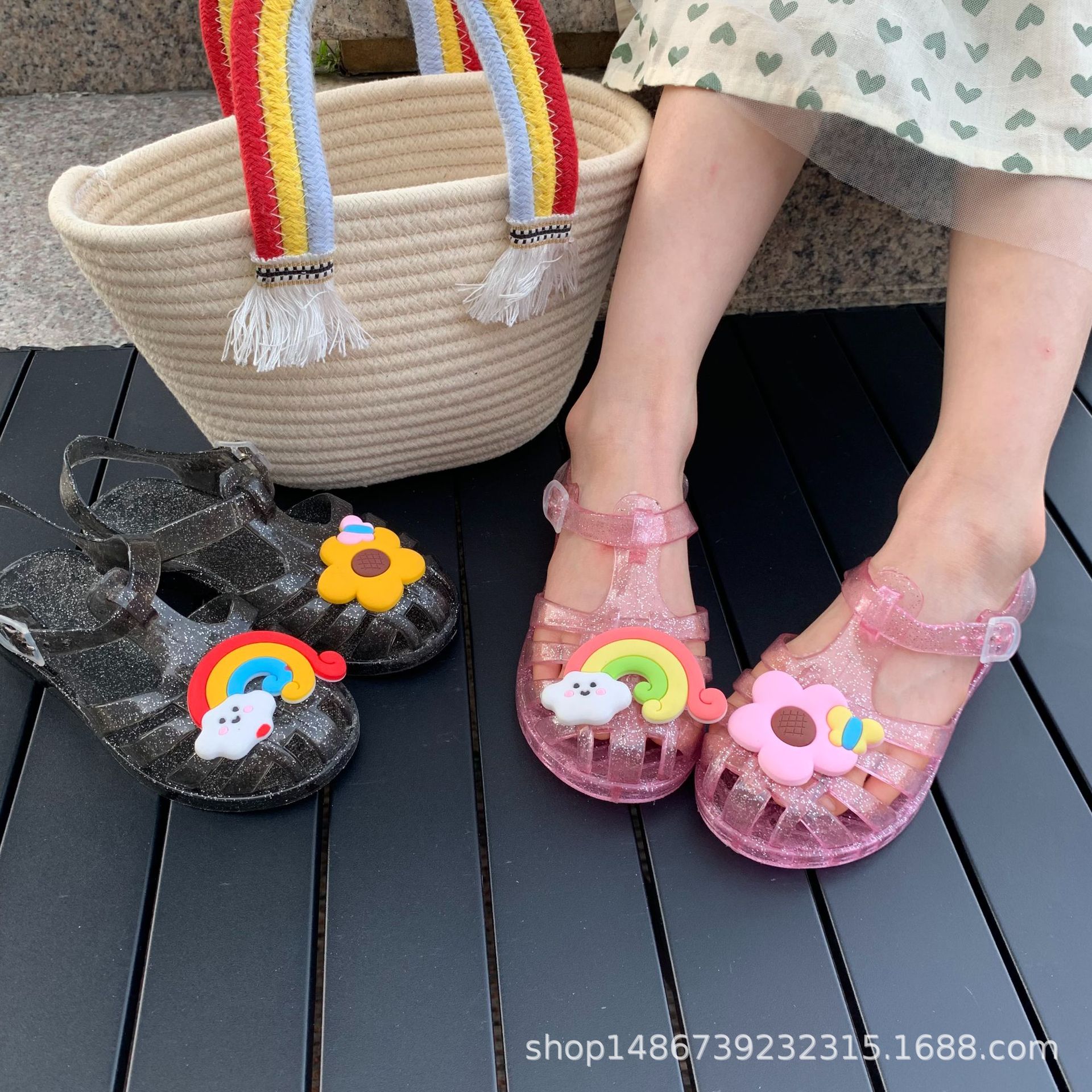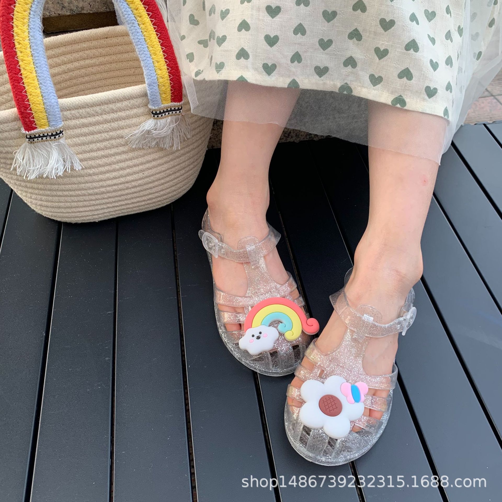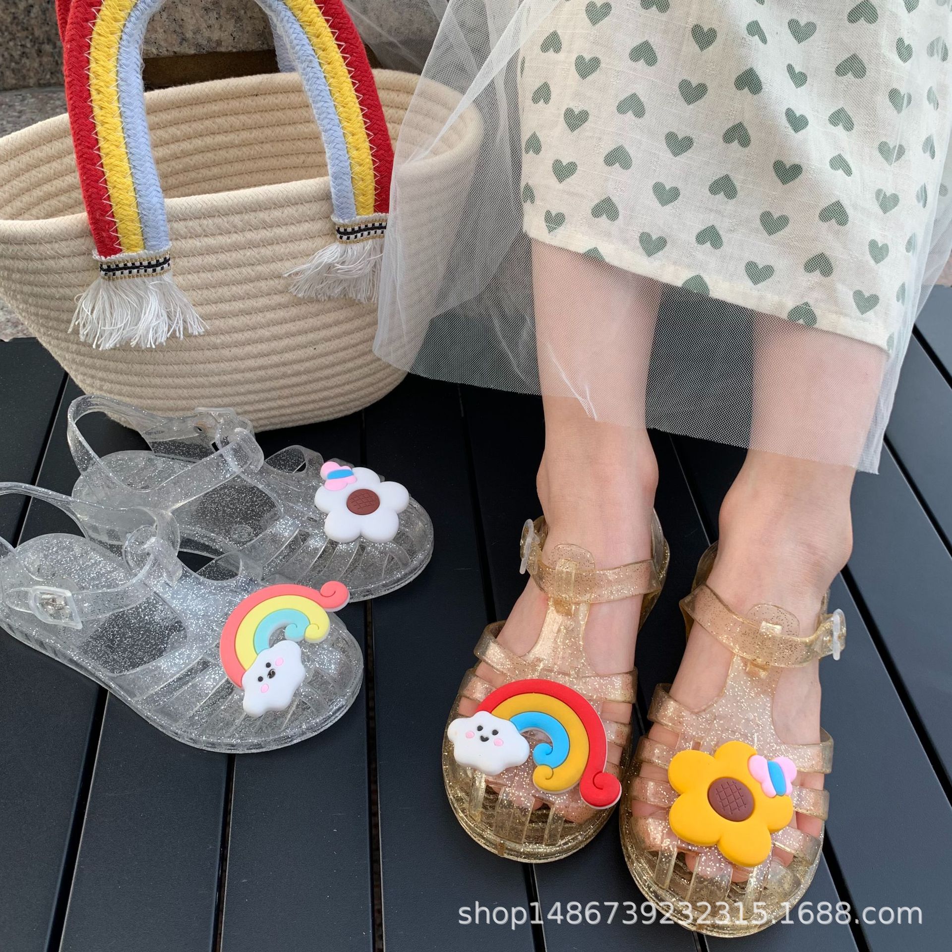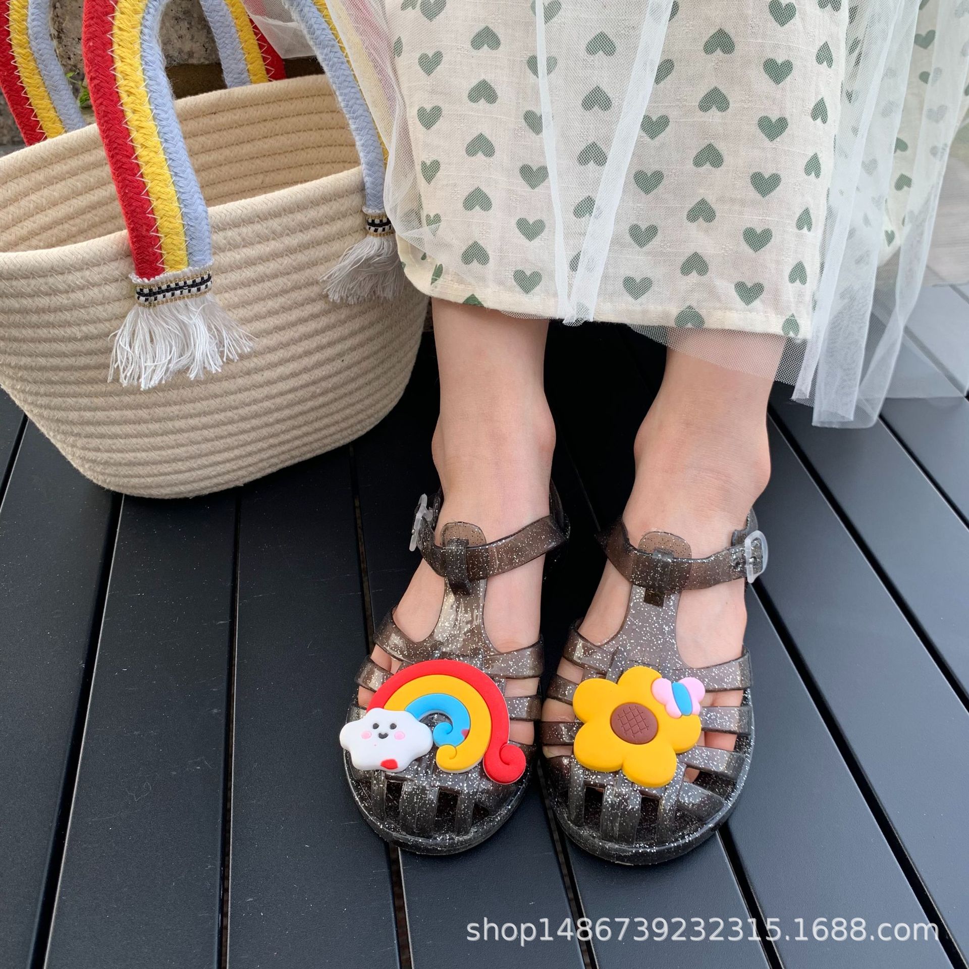 여름 새로운 플라스틱 샌들 젤리 신발 발가락 부드러운 단독 샌들 남성과 여성을위한 아기 만화 귀여운 비치 신발 대외 무역스토어 가기