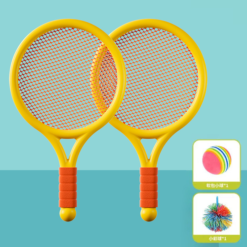 • 단일 노란색 미끄럼 방지 라켓 + 무지개 공 1개 + 털 공 1개