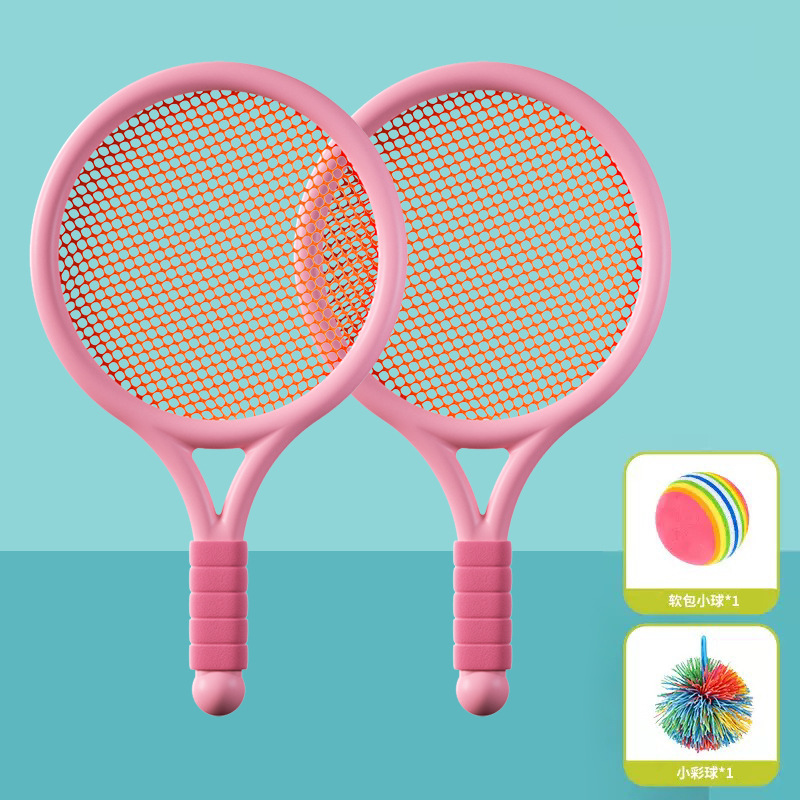 • 분홍색과 노란색 미끄럼 방지 라켓 [라켓 2개] + 컬러 볼 1개 + 소프트 백 볼 1개