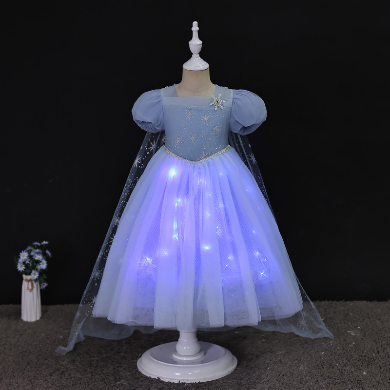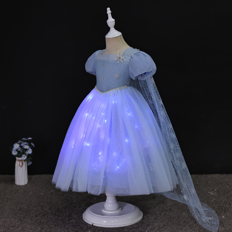 2023 새로운 소녀 엘사 글로우 공주 원피스 여름 원피스 서양 스타일 하이 엔드 생일 원피스 원피스 조명 엘사