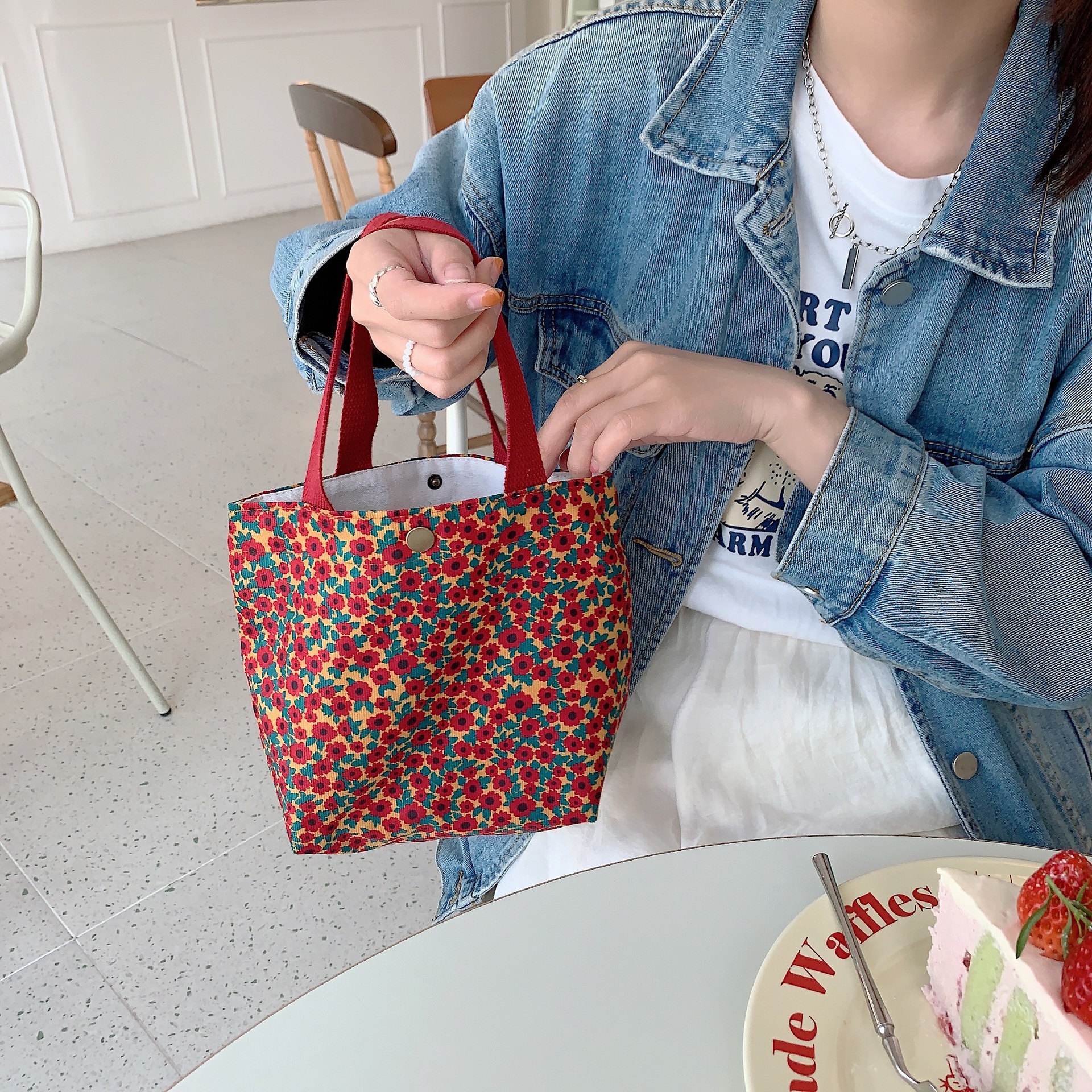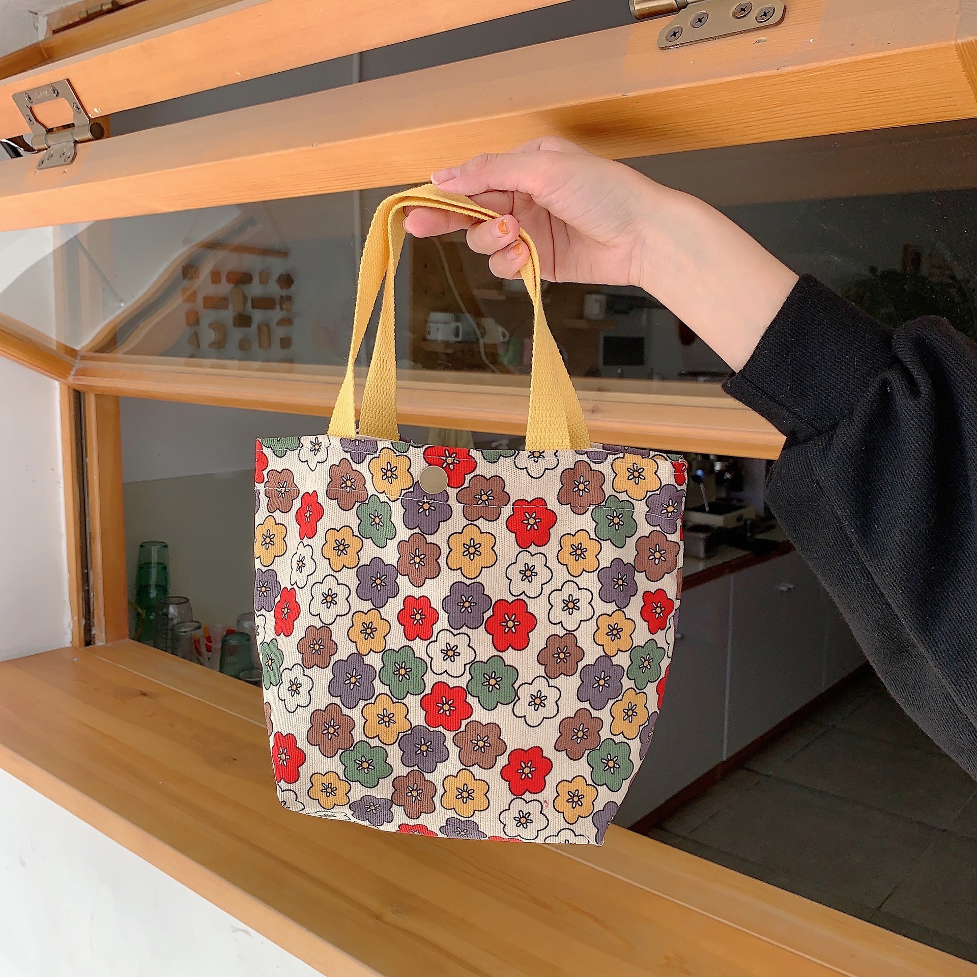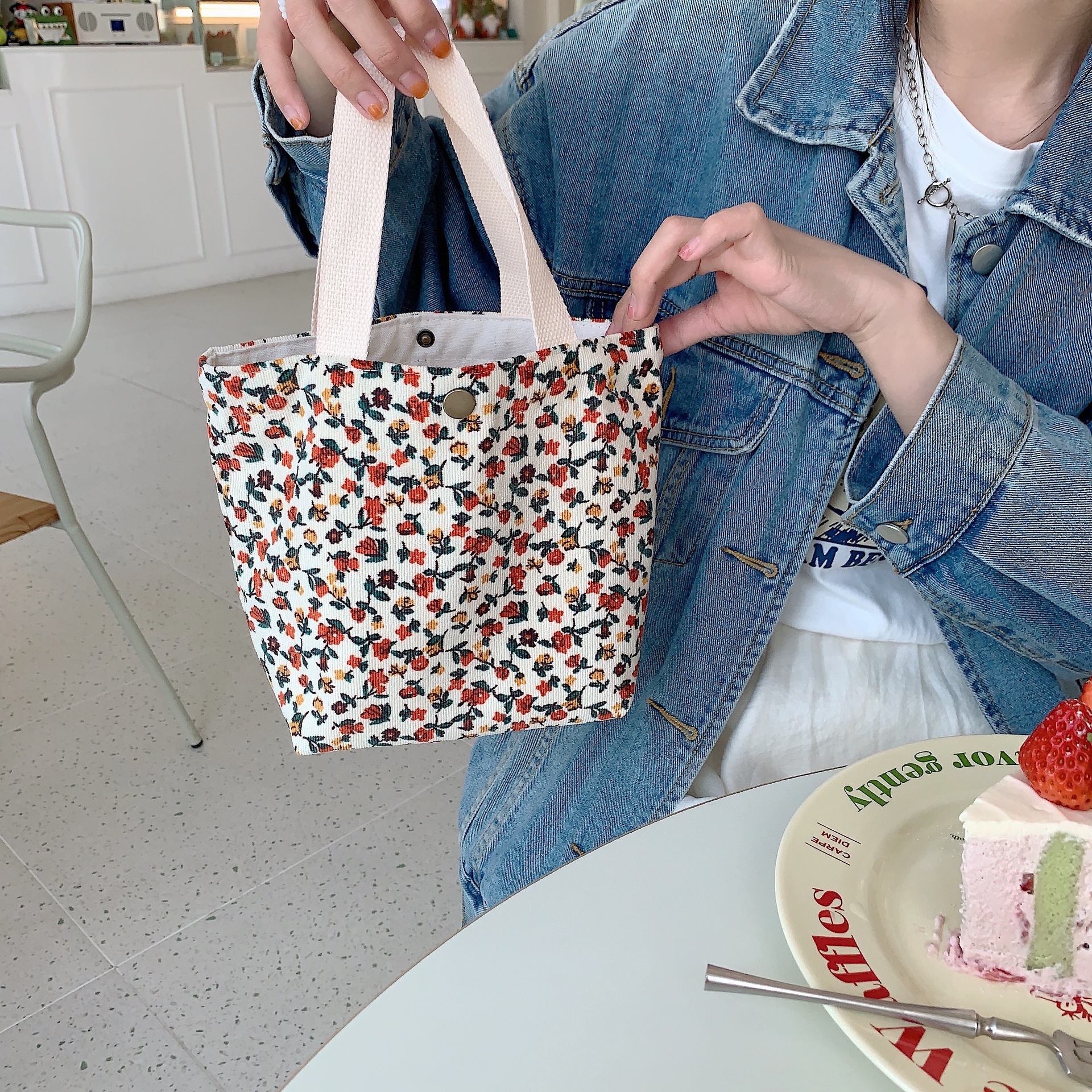 0571ins 코듀로이 레트로 핸드백 학생 엄마 도시락 가방 출퇴근용 손가방 여성 휴대용스토어 가기