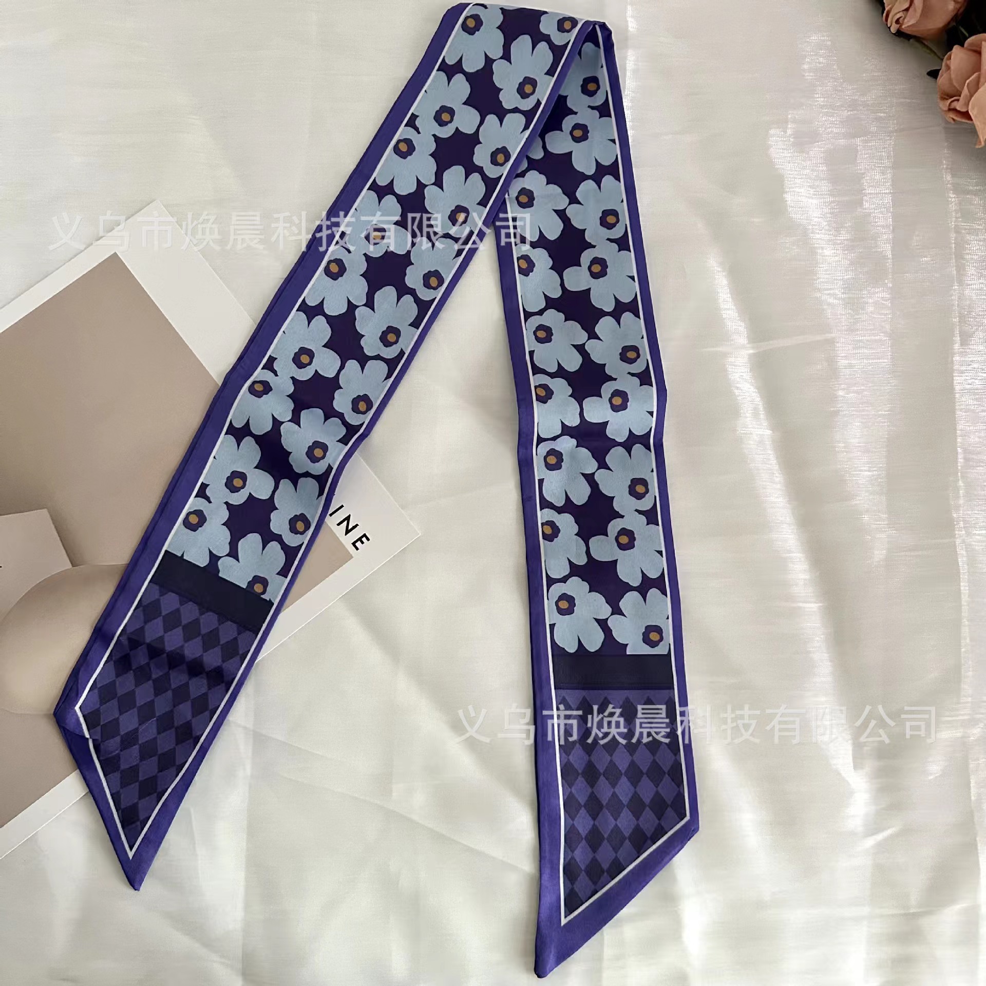 북유럽 작은 꽃 실크 스카프 여성용 긴 리본 헤어 밴드 헤어 타이 봄과 여름 실크 장식 전문 스카프