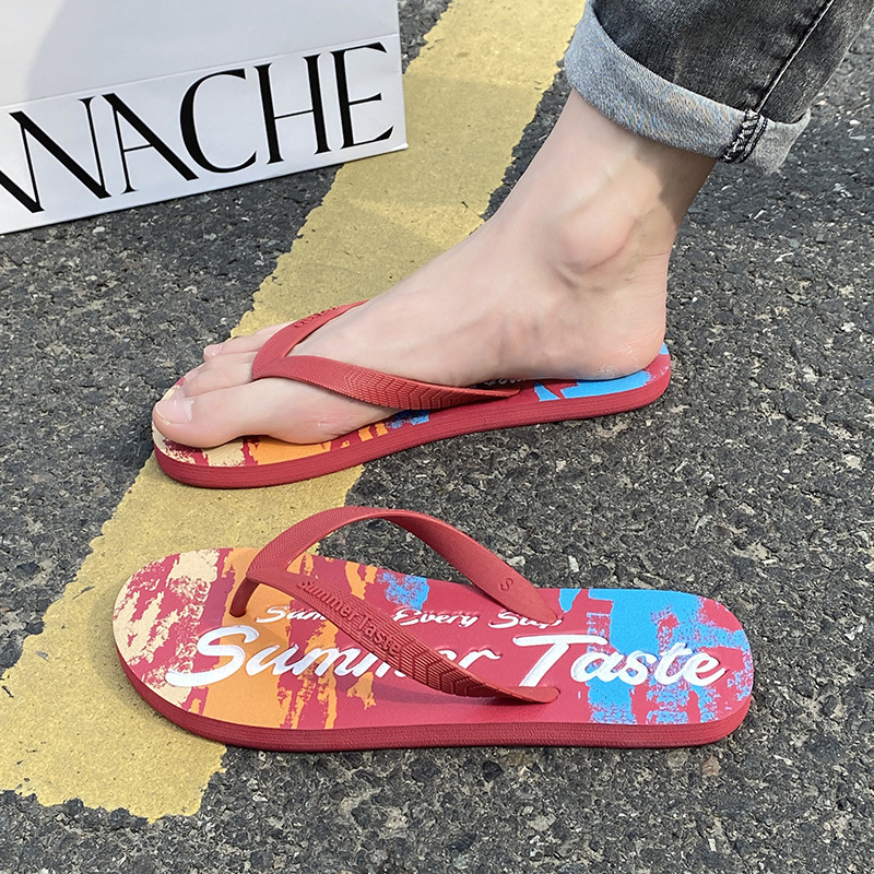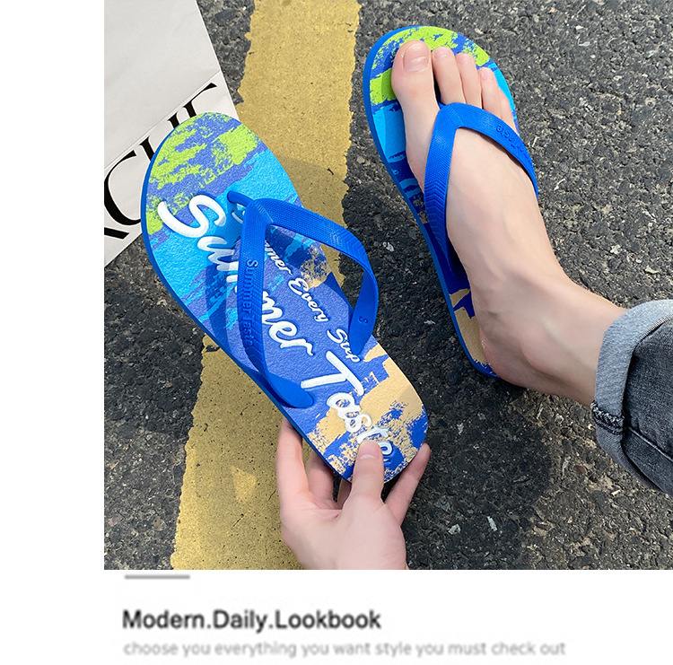 슬리퍼 남성 한국식 트렌디 그래피티 패션 아우터 미끄럼 방지 내마모성 비치 슬리퍼 남성 맞춤 슬리퍼스토어 가기
