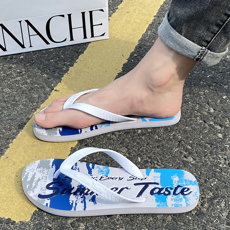 슬리퍼 남성 한국식 트렌디 그래피티 패션 아우터 미끄럼 방지 내마모성 비치 슬리퍼 남성 맞춤 슬리퍼