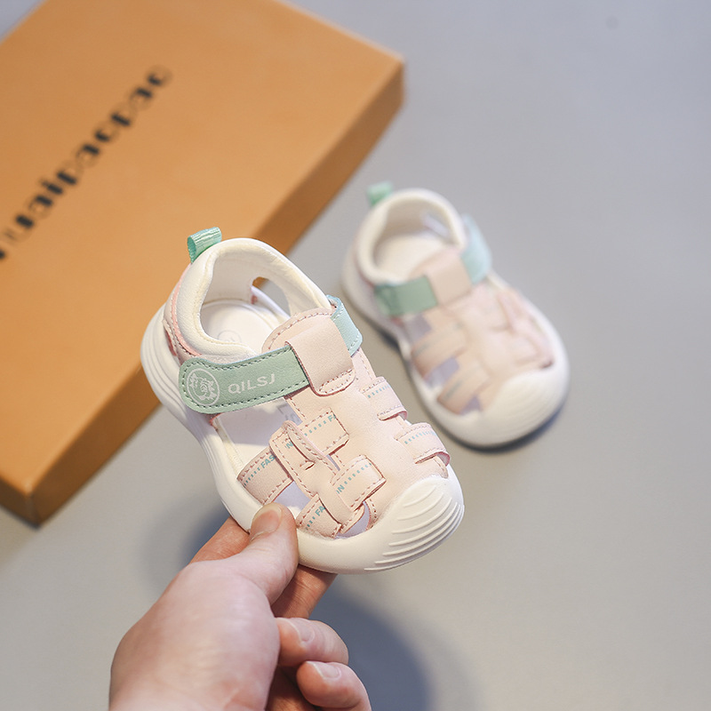2023 봄과 여름 새로운 남성과 여성의 아기 신발 유아 통기성 중공 샌들 Baotou 부드러운 밑창 비치 신발 머리카락 세대스토어 가기