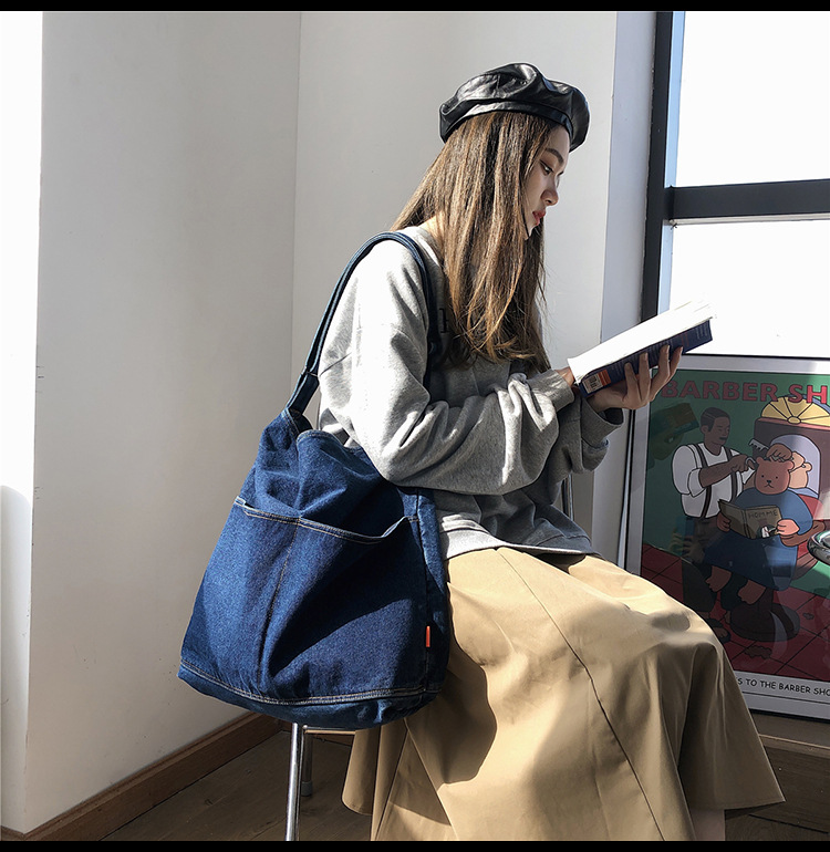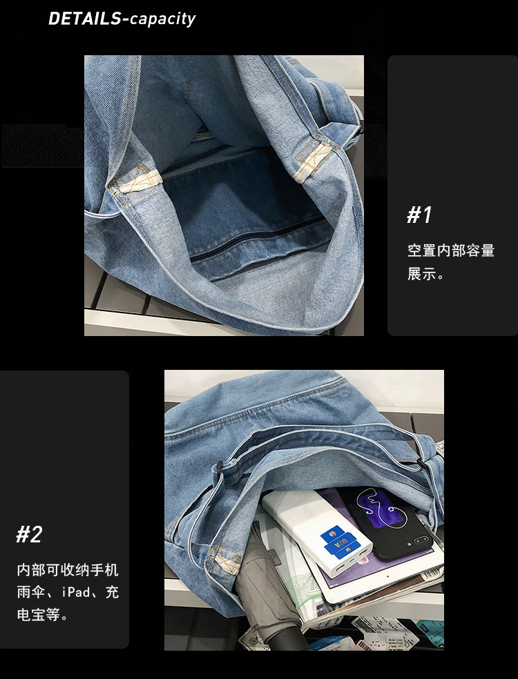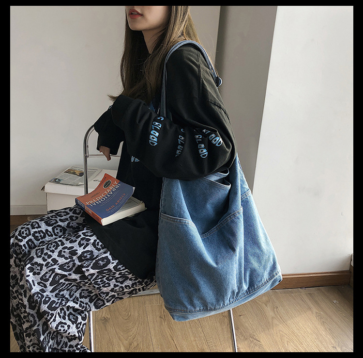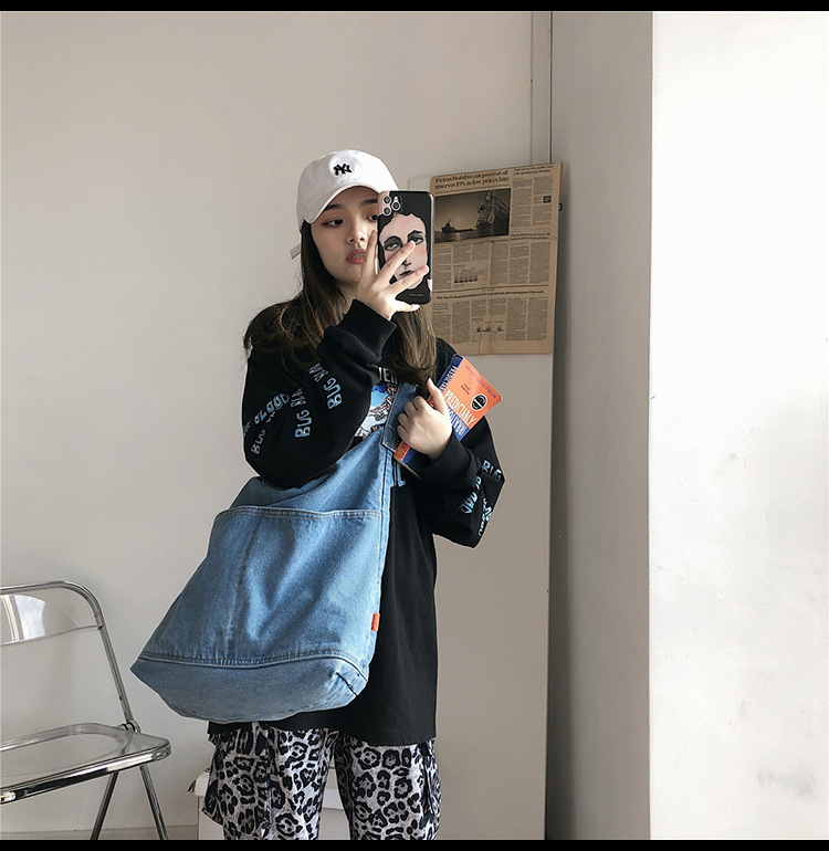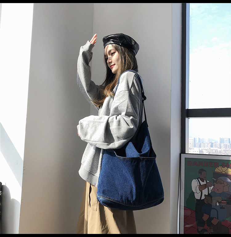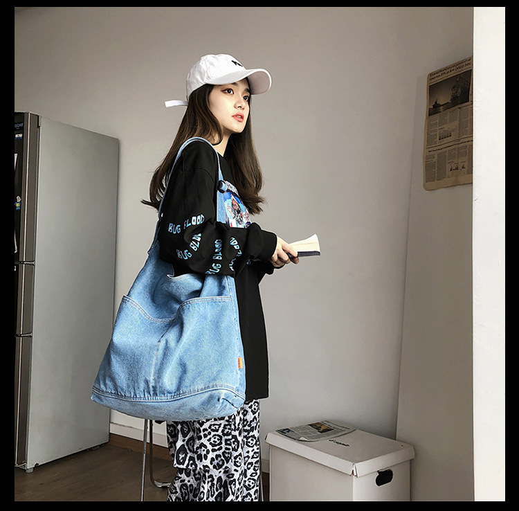 485 데님 숄더백 대용량 워시 백 부드러운 느낌 아주 좋은-Guo Xuwei 우회-머리를 대신하지 않습니다스토어 가기