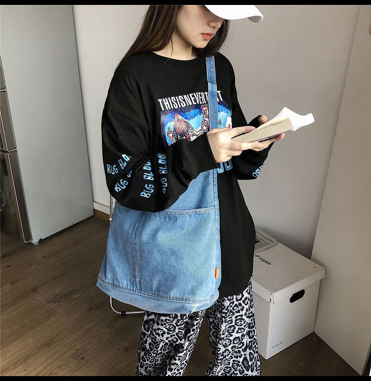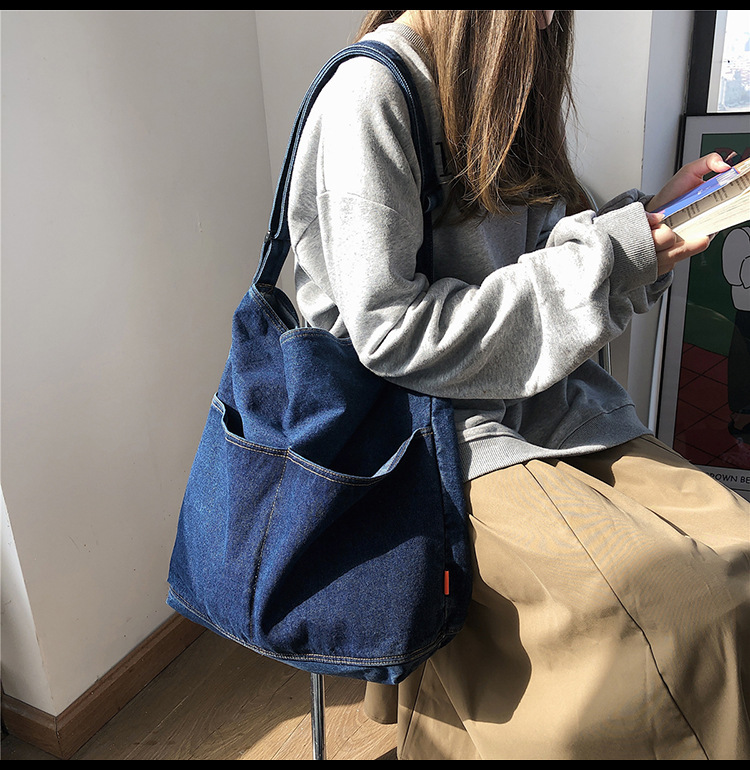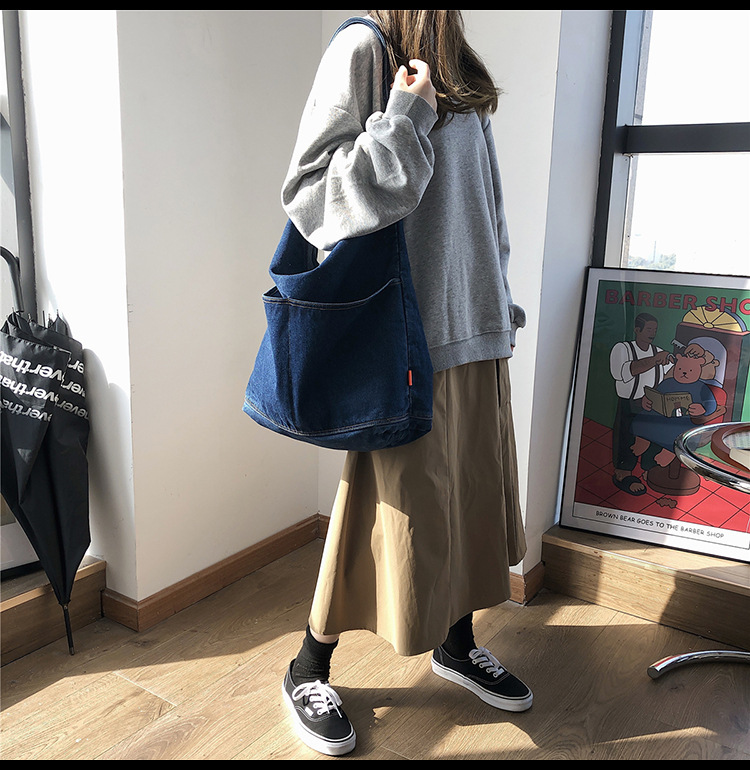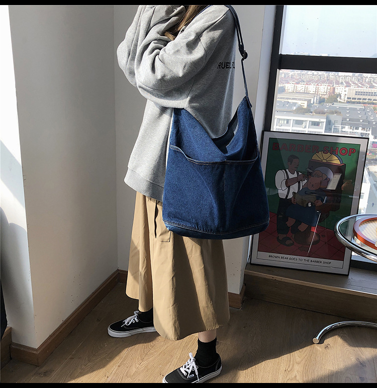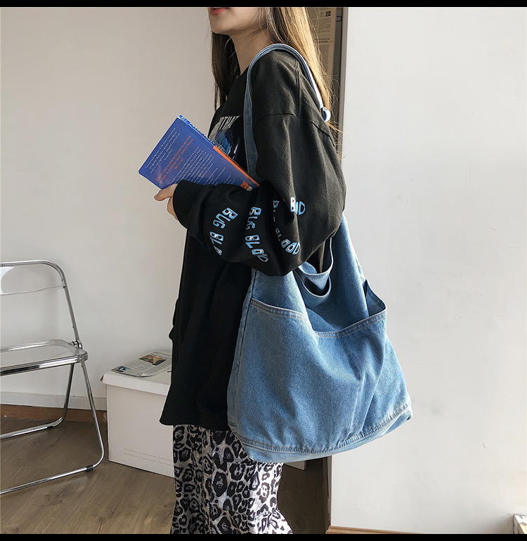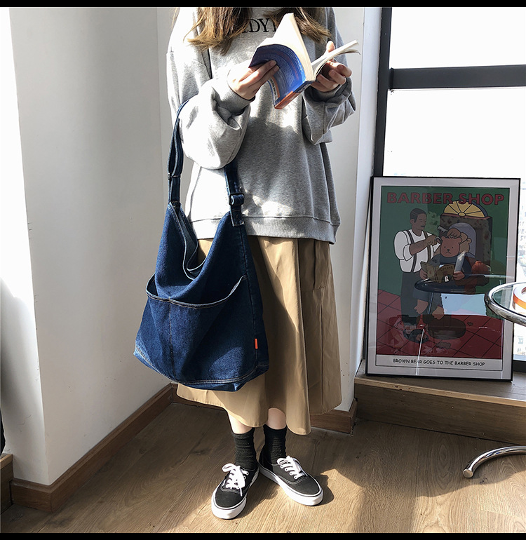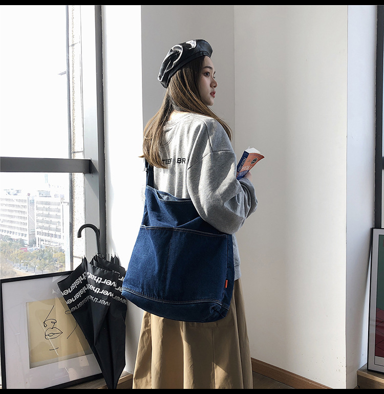 485 데님 숄더백 대용량 워시 백 부드러운 느낌 아주 좋은-Guo Xuwei 우회-머리를 대신하지 않습니다스토어 가기