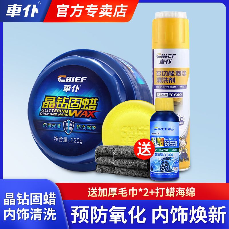 • 크리스탈 다이아몬드 솔리드 왁스 + 60ml 세차액 + 다기능 폼 클리너, 무료 두꺼운 수건 2개