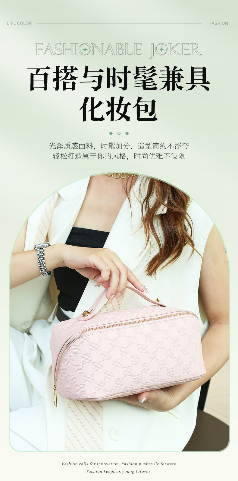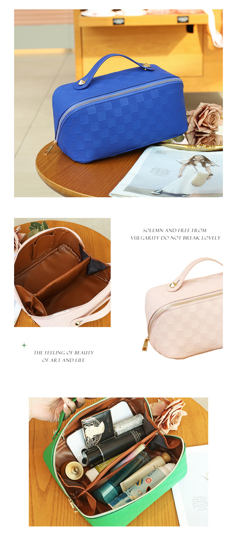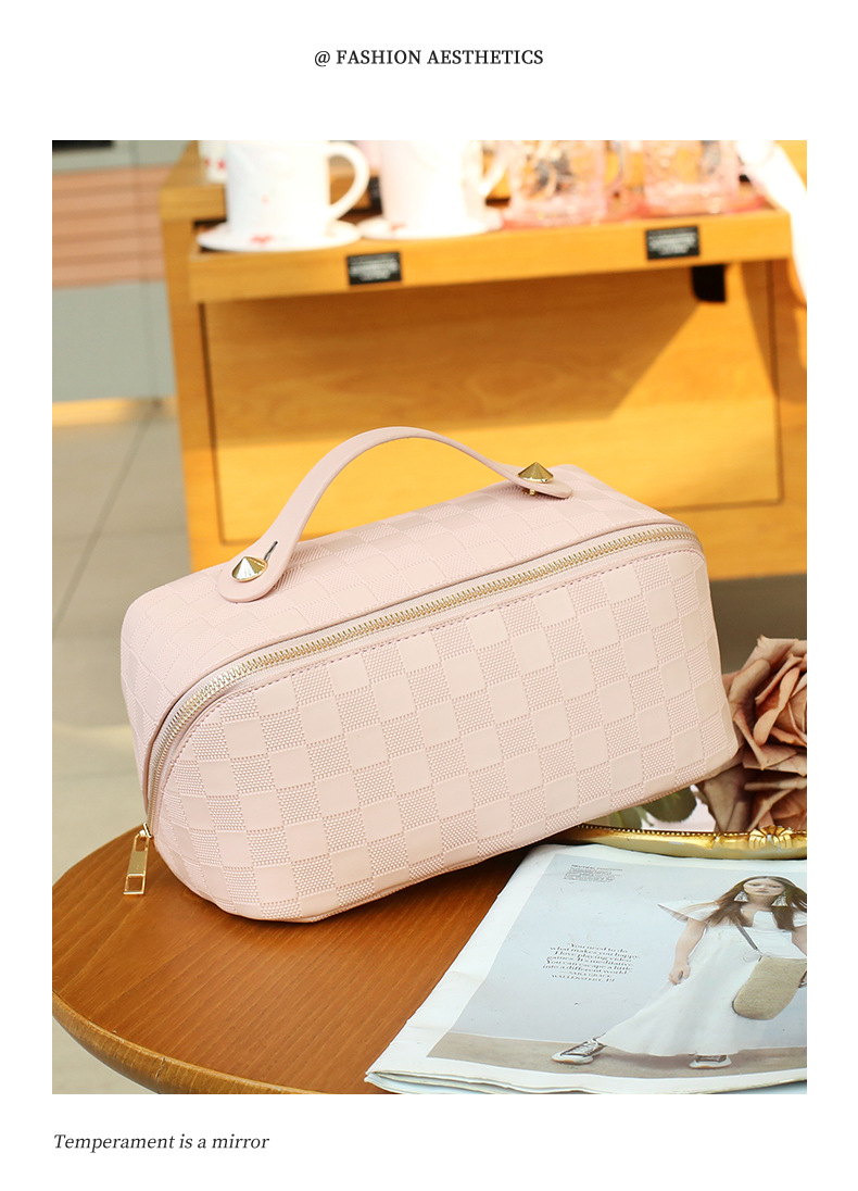 2024 새로운 패션 고 가치 PU 편리한 대용량 체크 무늬 화장품 가방 보관 여행 세탁 가방 8380 #