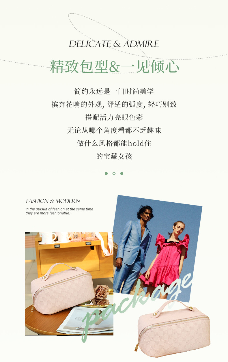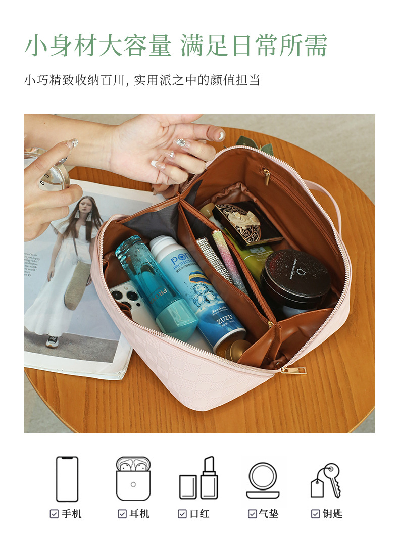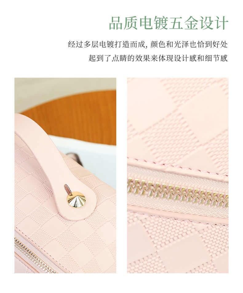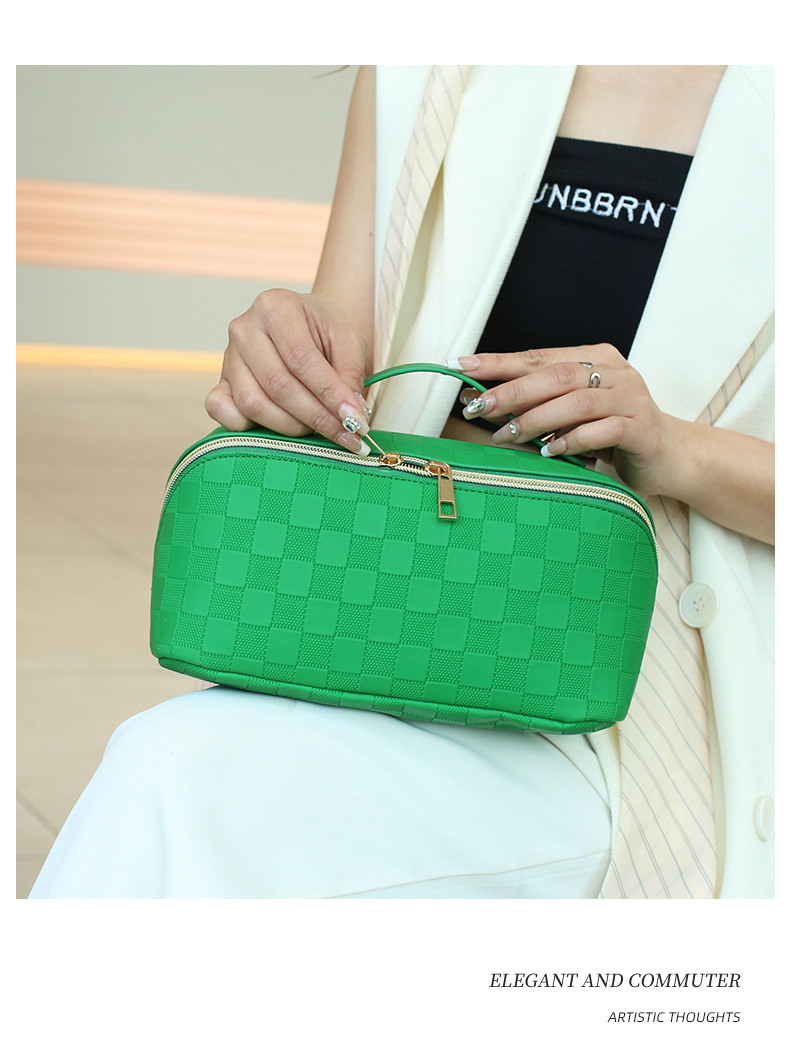 2024 새로운 패션 고 가치 PU 편리한 대용량 체크 무늬 화장품 가방 보관 여행 세탁 가방 8380 #