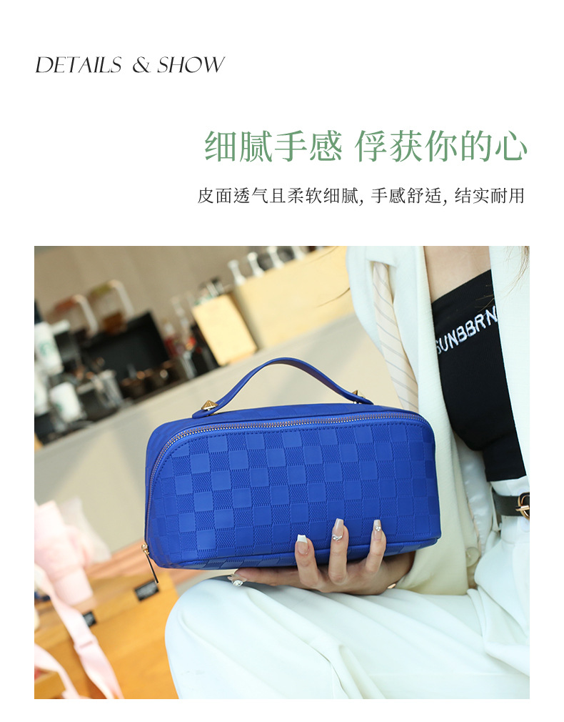 2024 새로운 패션 고 가치 PU 편리한 대용량 체크 무늬 화장품 가방 보관 여행 세탁 가방 8380 #스토어 가기