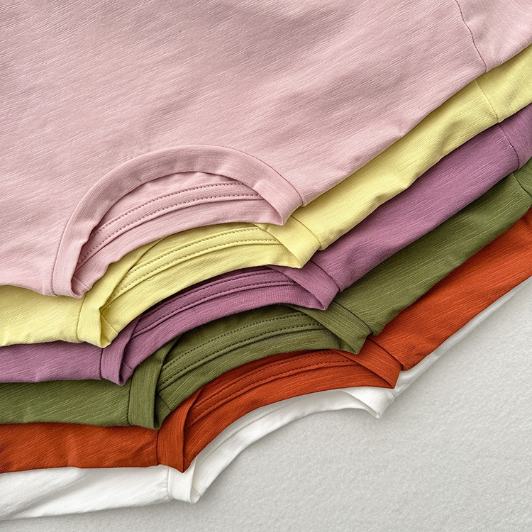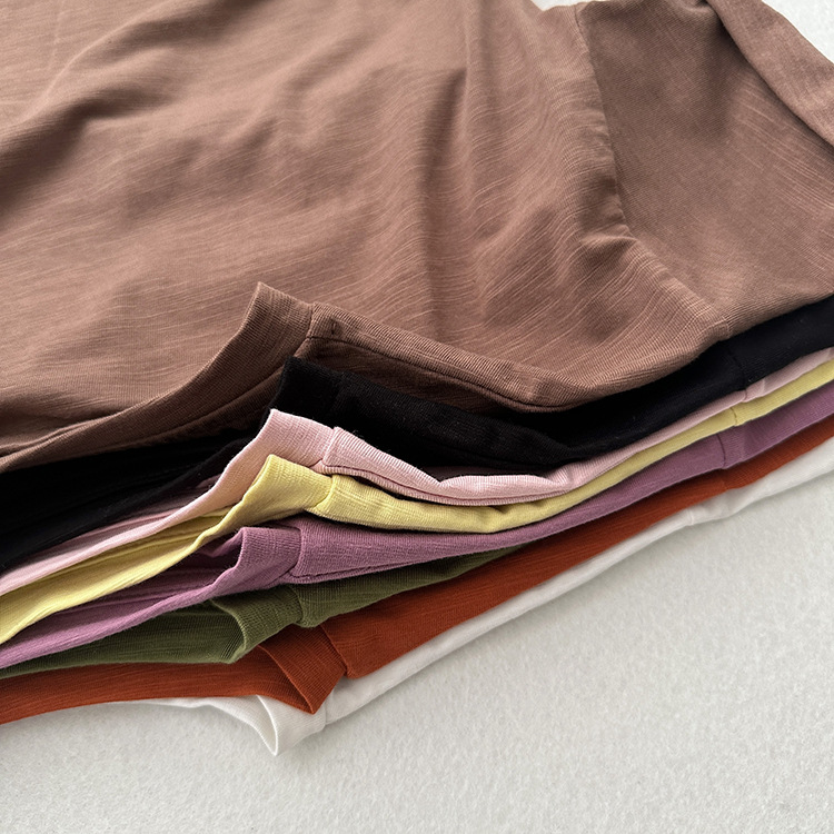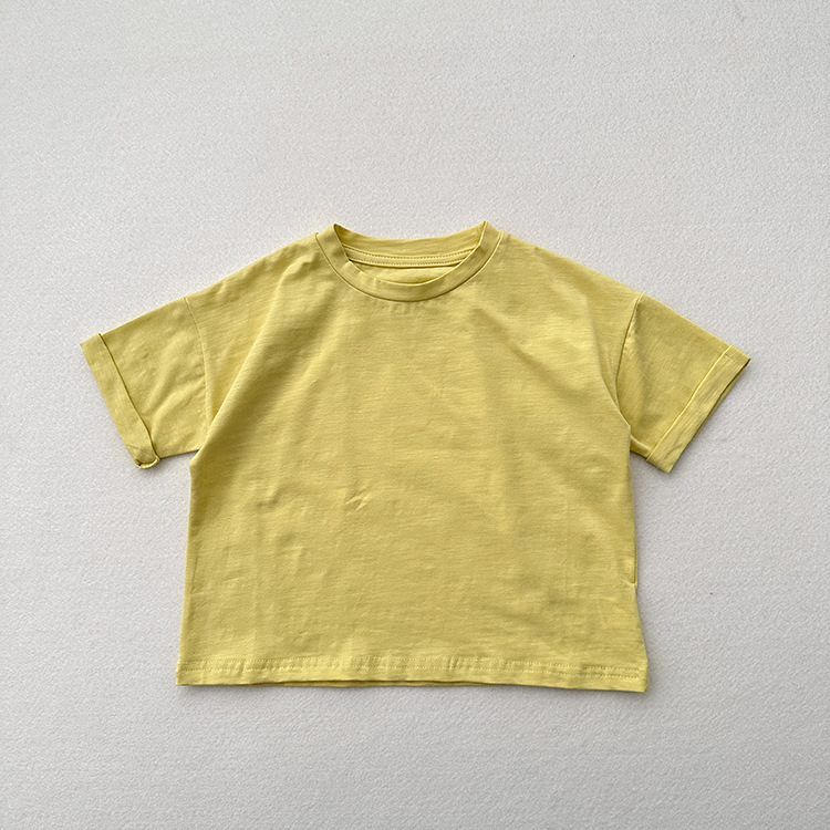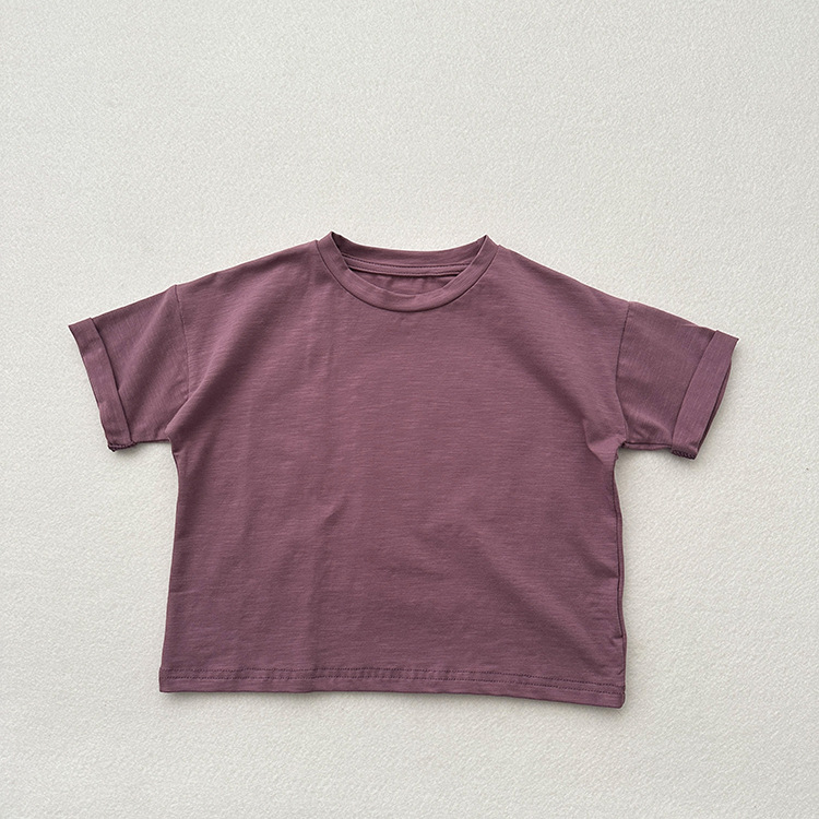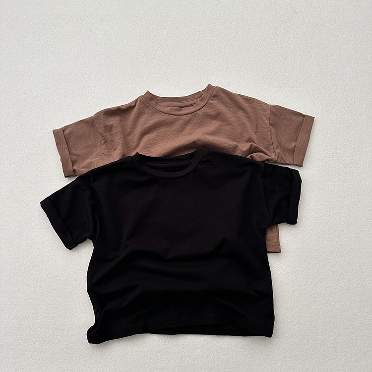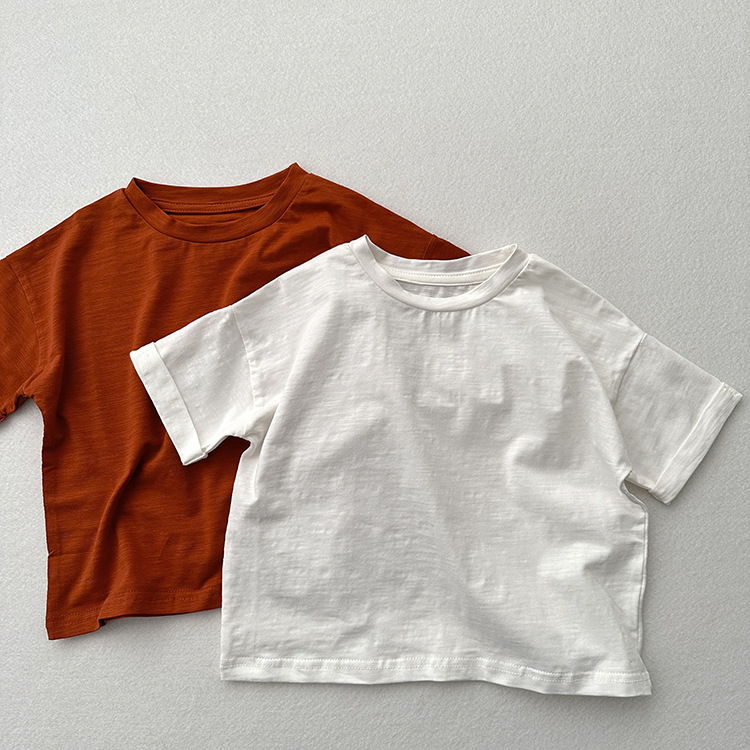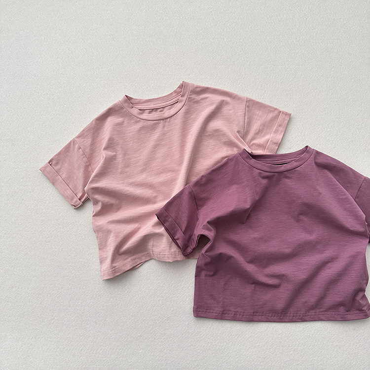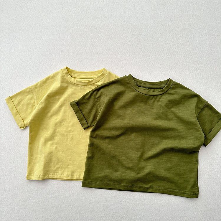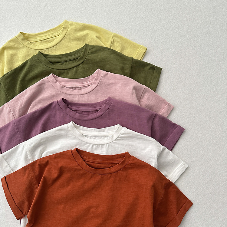 기본 조커 ~ 여름 한국 팬 소년과 소녀를위한 어린이 단색 슬리브 탑 아기 일본식 슬러브 면 반소매 티셔츠스토어 가기