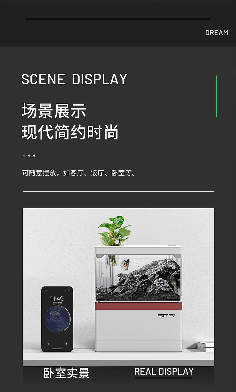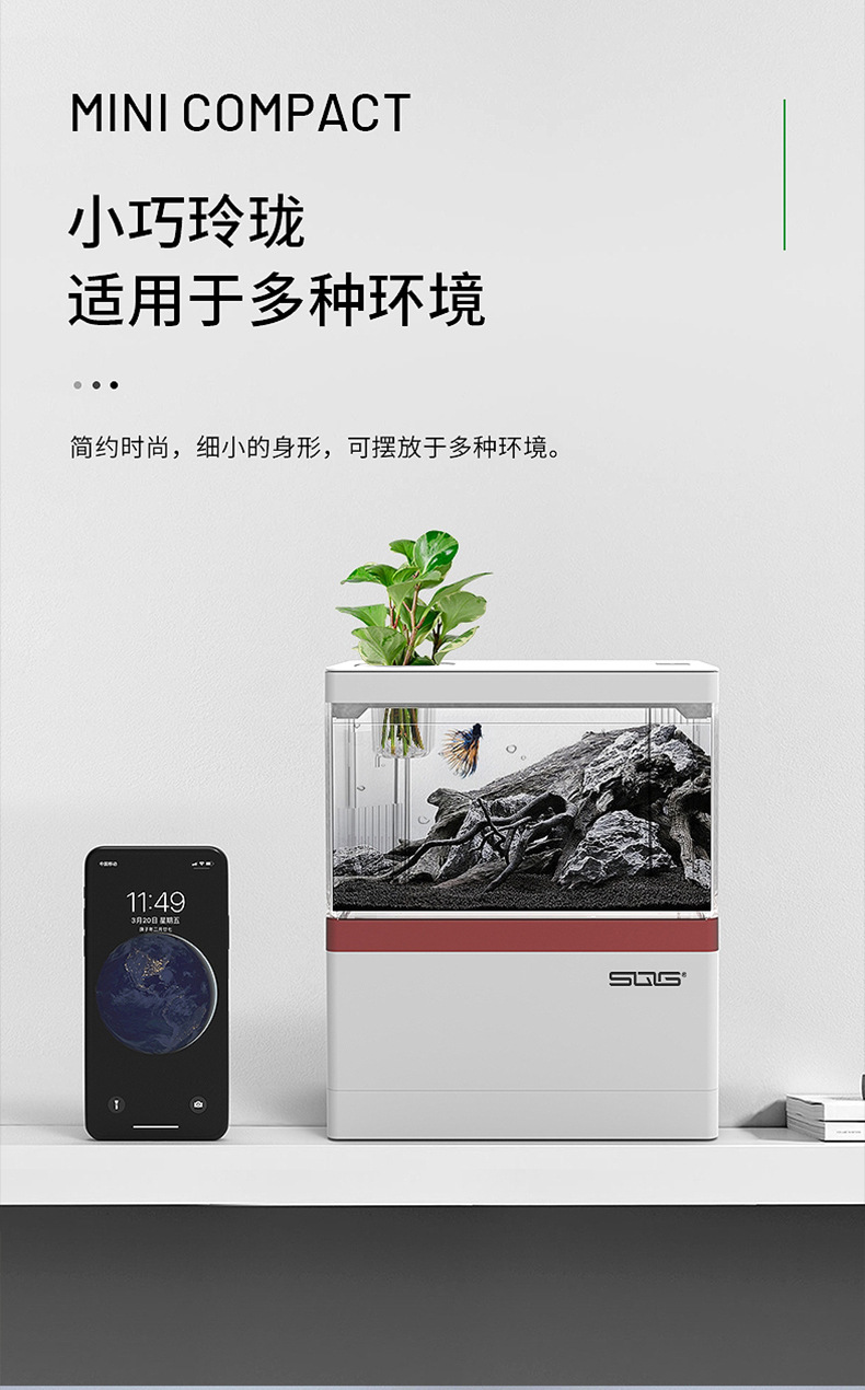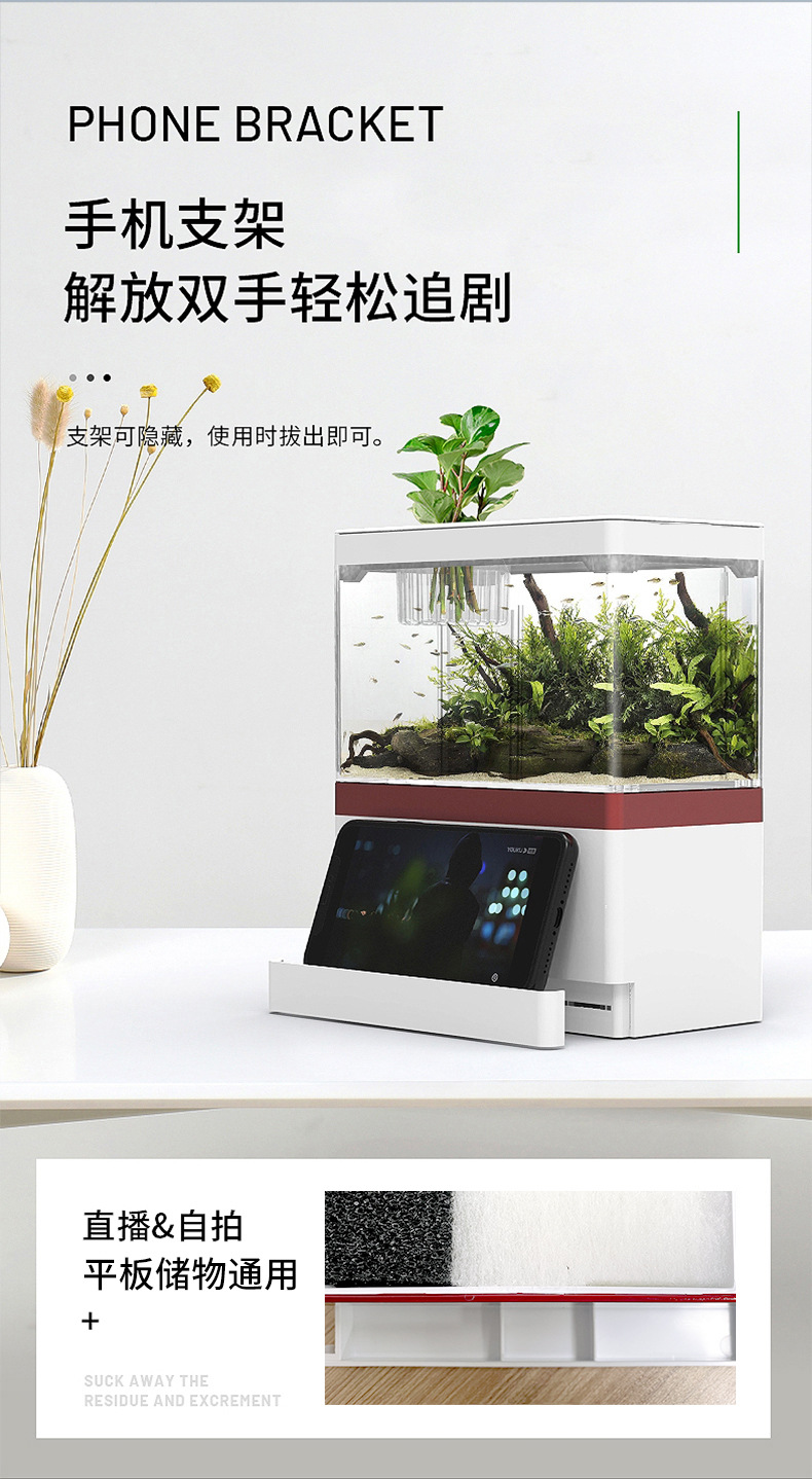 미니 데스크탑 어항 소형 자체 순환 물 무료 생태 창조적 인 조경 사무실 홈 어항 수족관스토어 가기