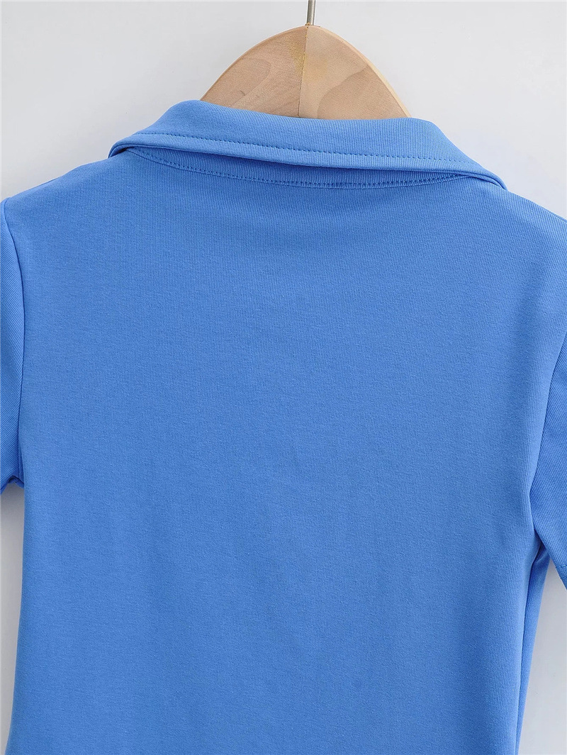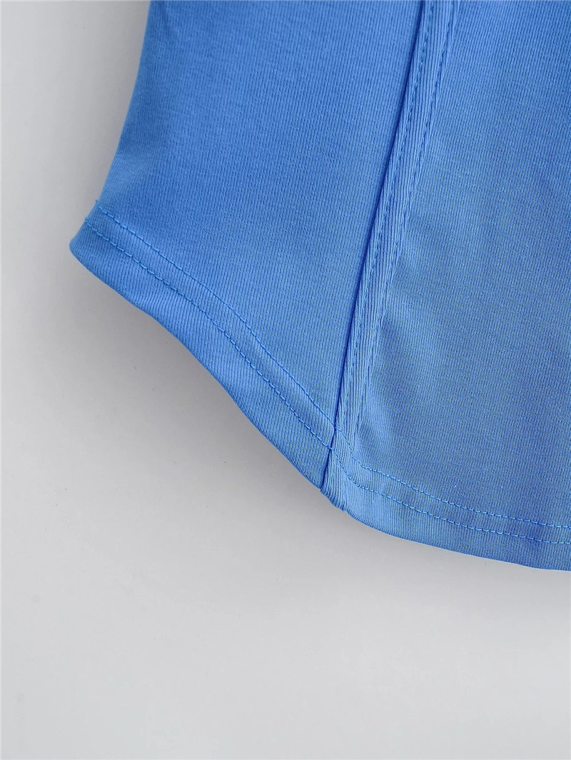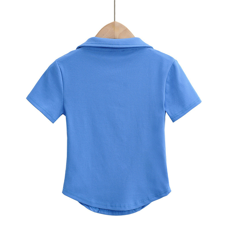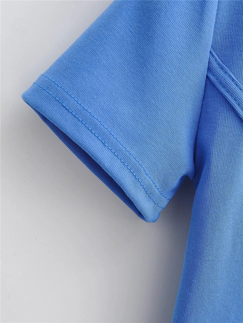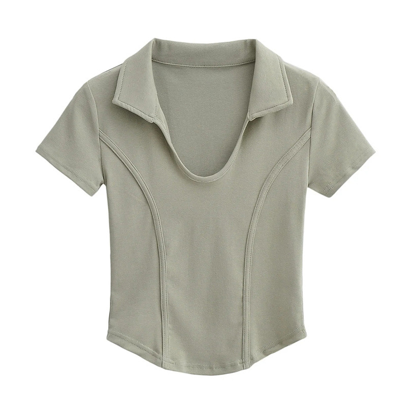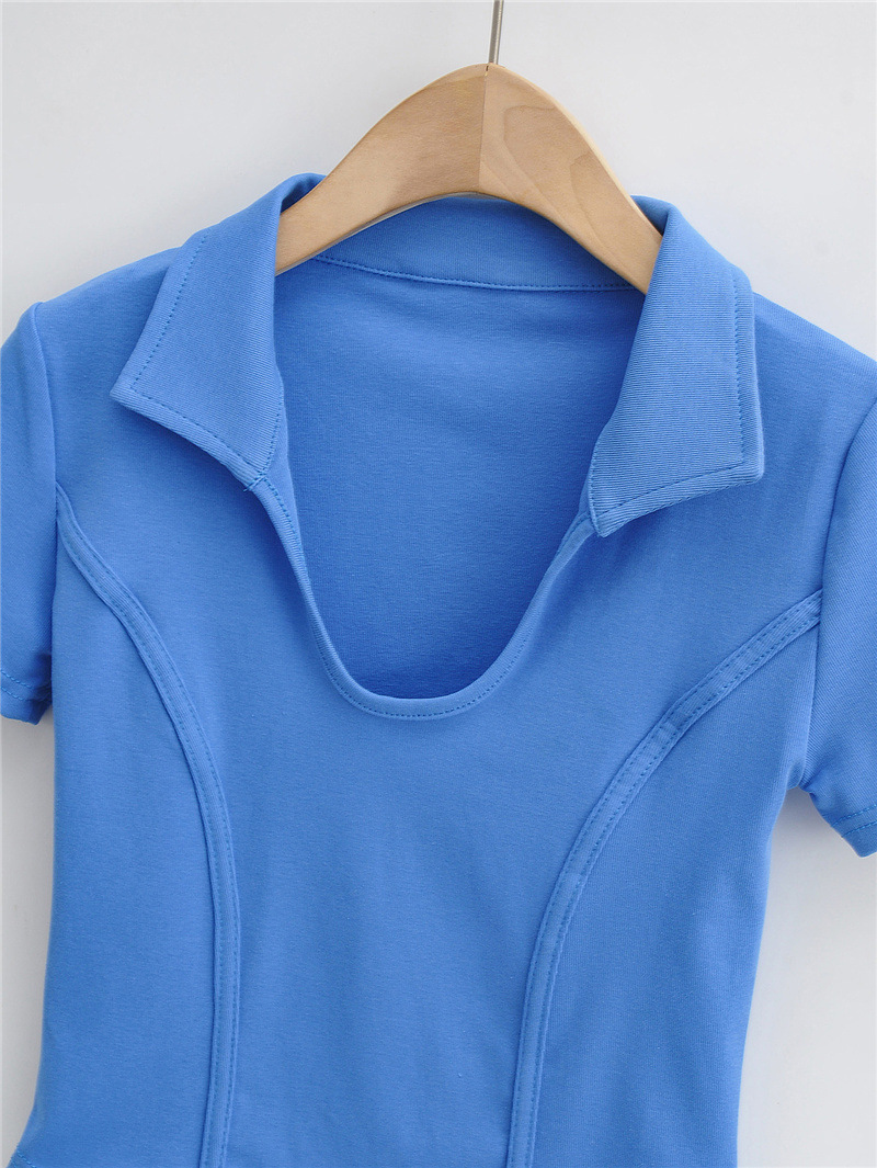 디자인 감각 물고기 뼈 스티커 옷깃 곡선 밑단 반소매 티셔츠 여름 슬림 봐 짧은 뜨거운 소녀 최고 여성스토어 가기