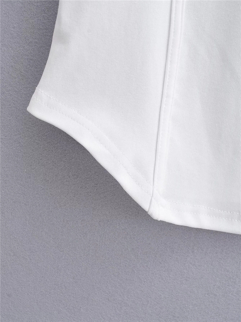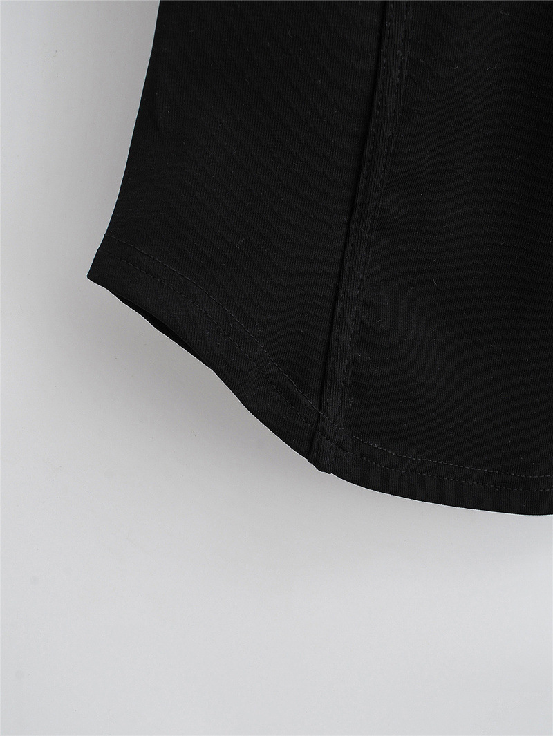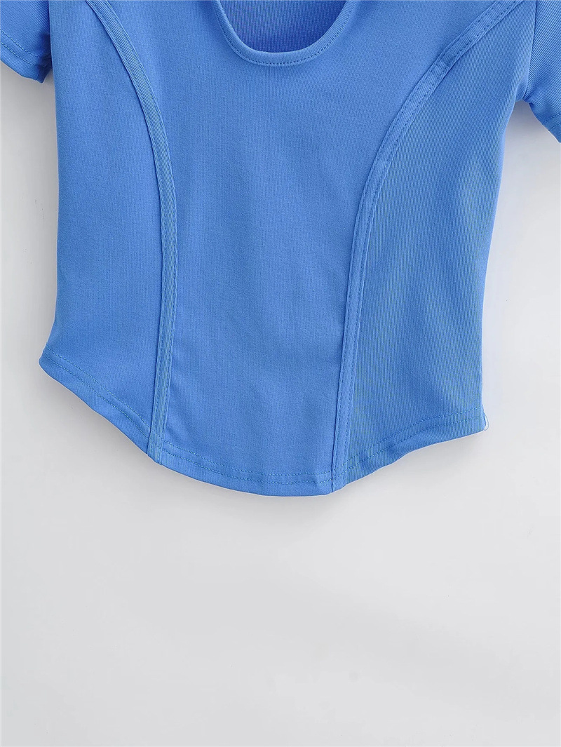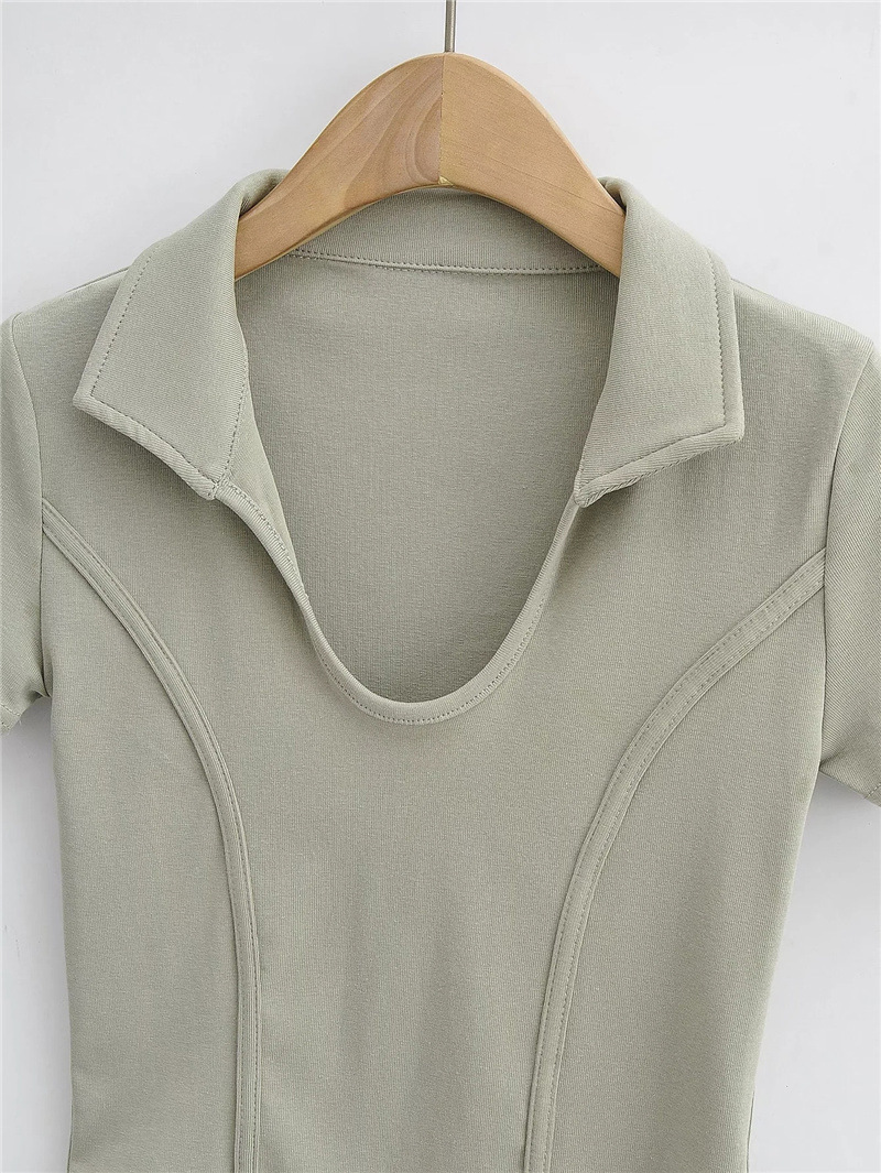 디자인 감각 물고기 뼈 스티커 옷깃 곡선 밑단 반소매 티셔츠 여름 슬림 봐 짧은 뜨거운 소녀 최고 여성