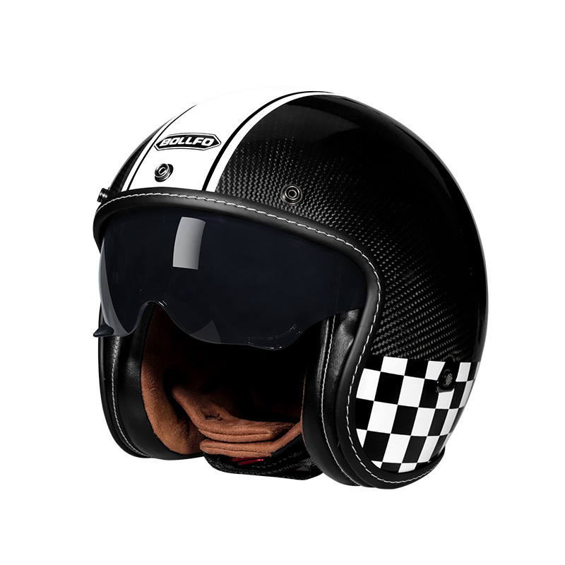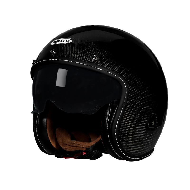 BOLLFO 탄소 섬유 할리 레트로 헬멧 3/4 하프 헬멧 남녀 여름 사계절 전기 자동차 모자