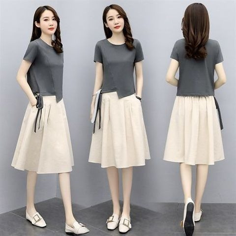 여름 여자의 2023 새로운 패션 서양 스타일 캐주얼 느슨한 스커트 여아 투피스 여성을위한 유행 원피스스토어 가기