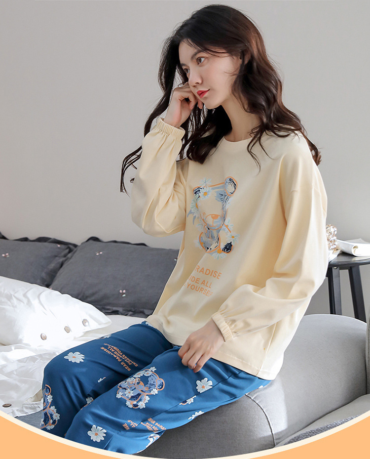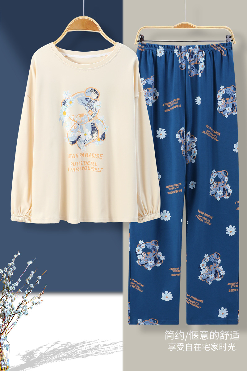 Sujith 잠옷 여자의 긴 소매 면 세트 여자의 귀여운 만화 플러스 사이즈 캐주얼 느슨한 면 가정 옷