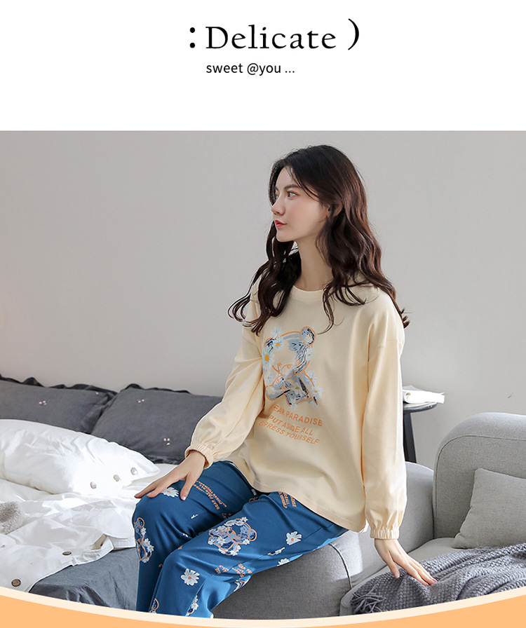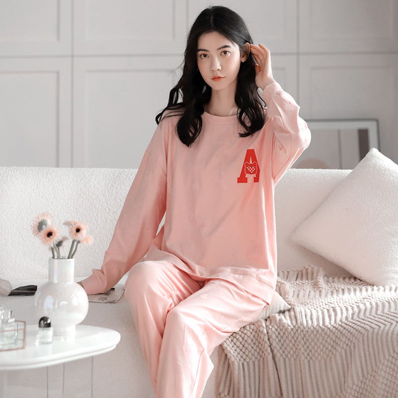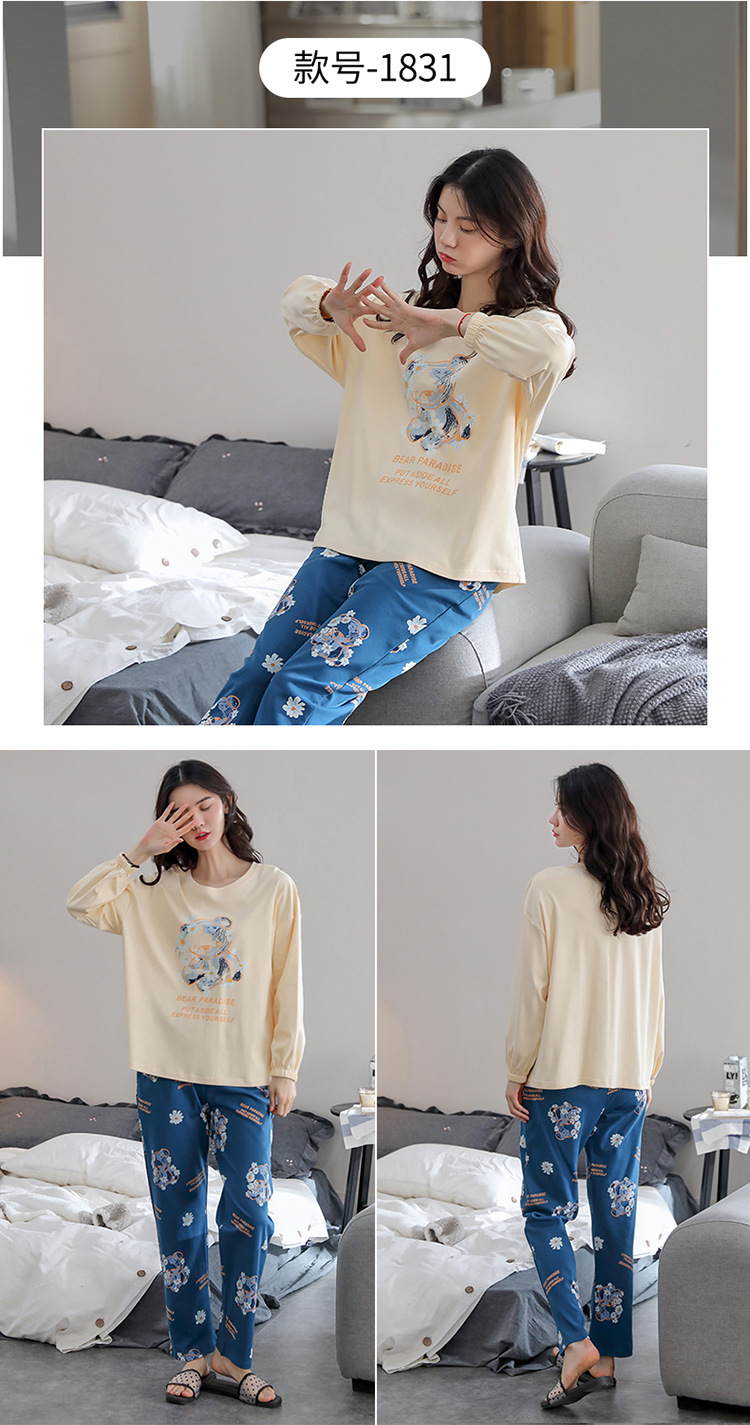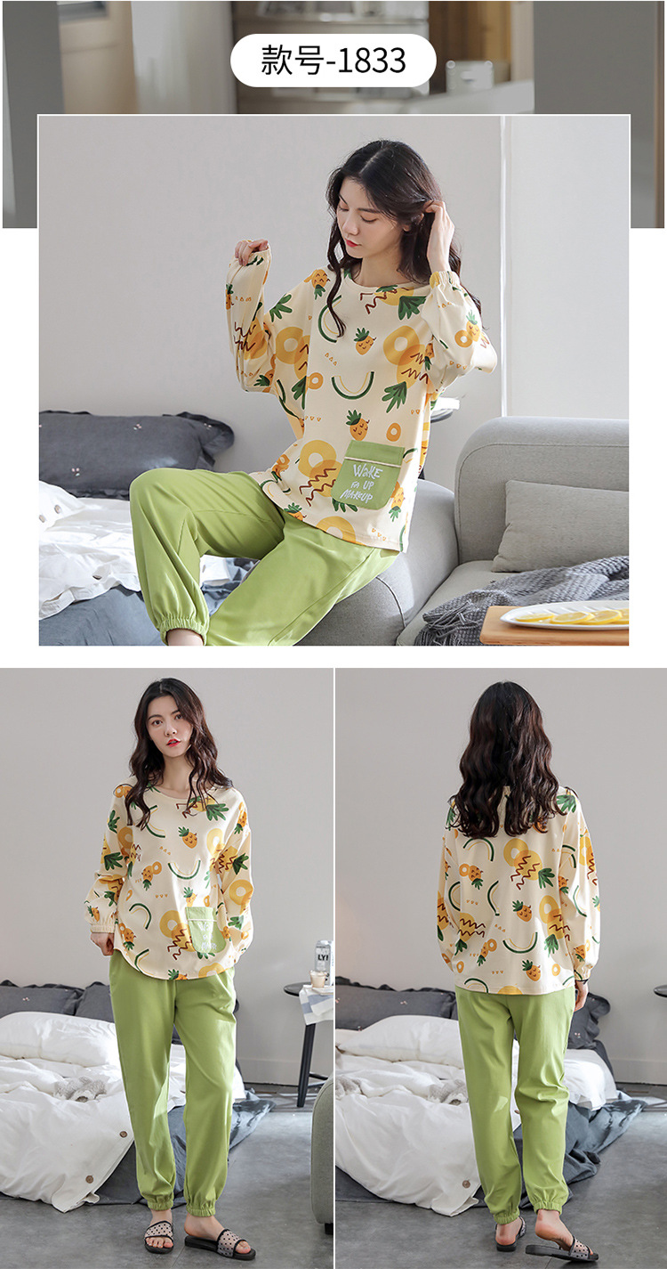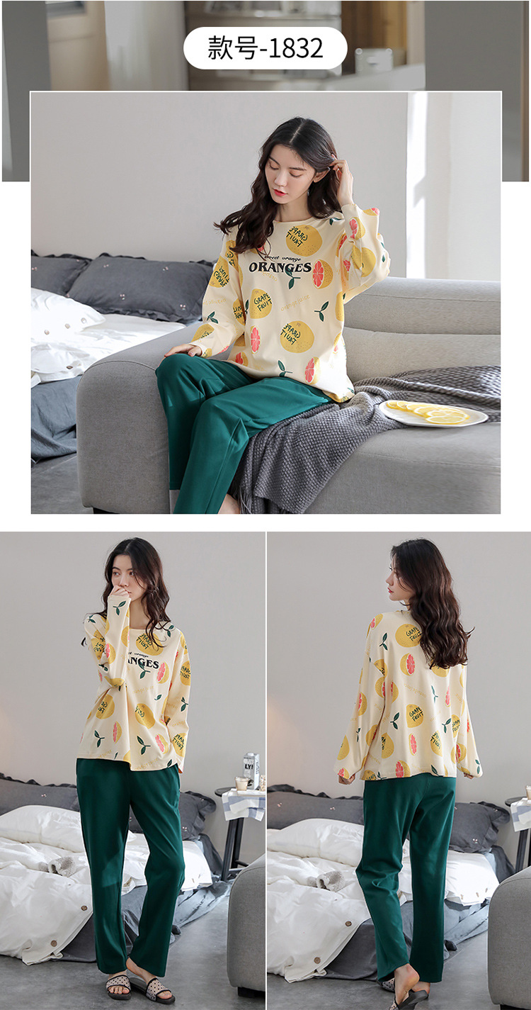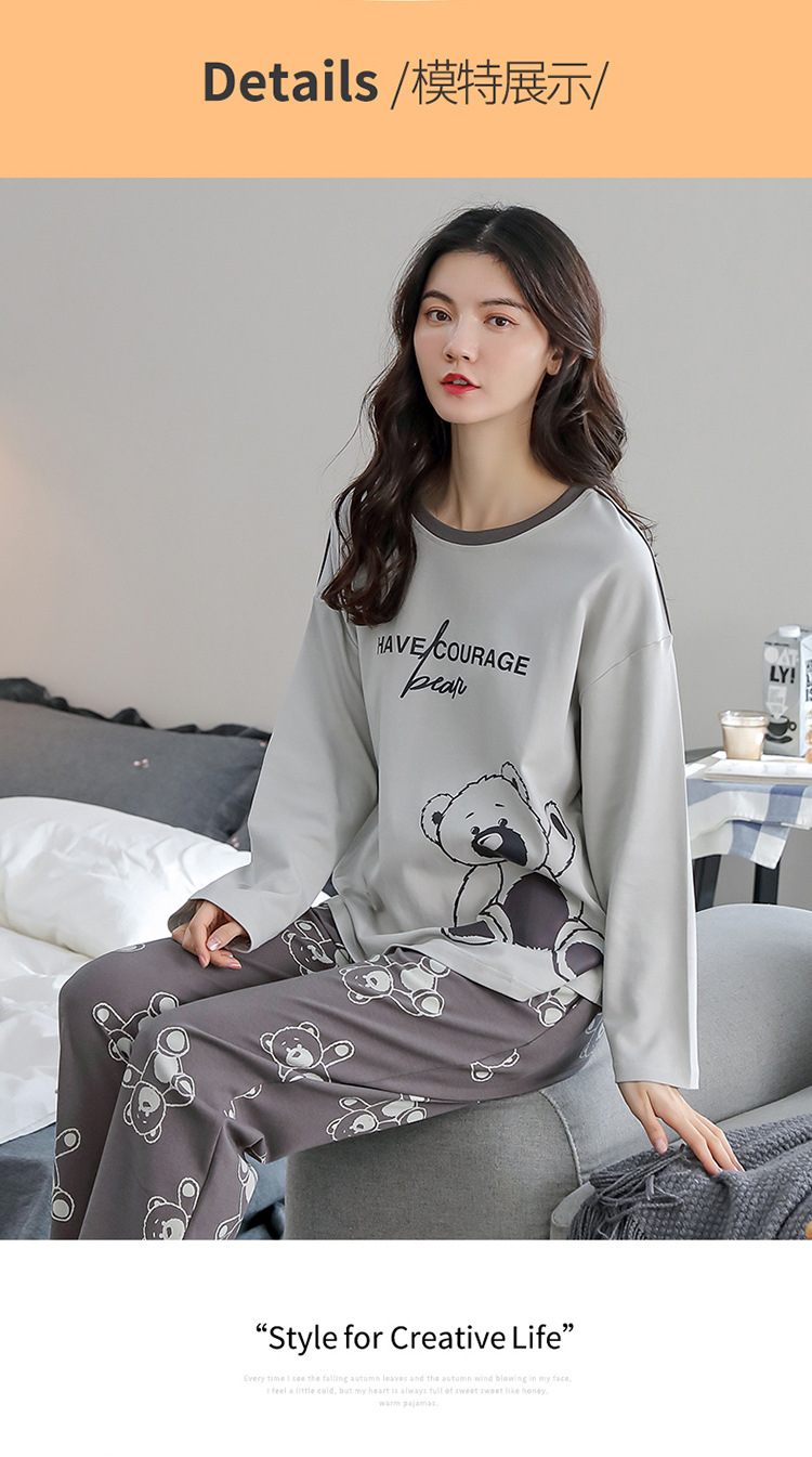Sujith 잠옷 여자의 긴 소매 면 세트 여자의 귀여운 만화 플러스 사이즈 캐주얼 느슨한 면 가정 옷스토어 가기