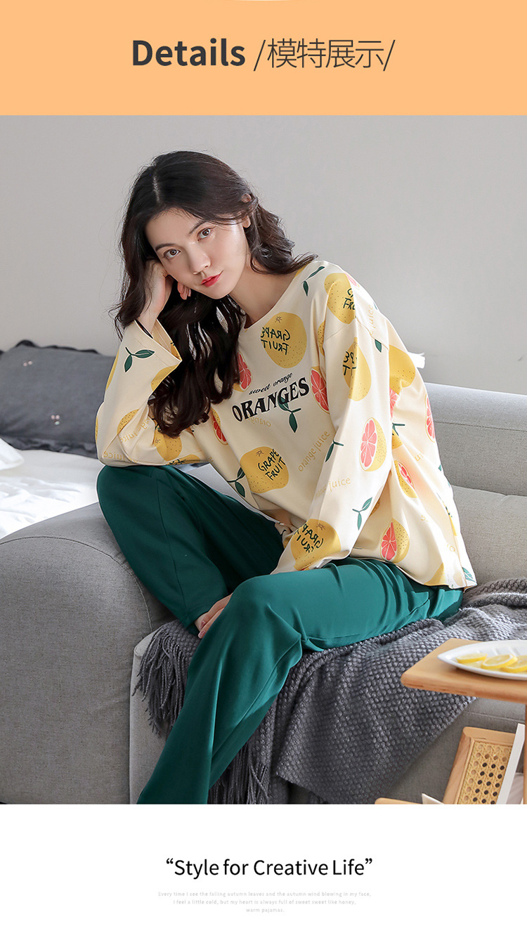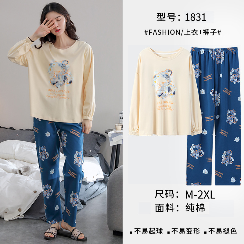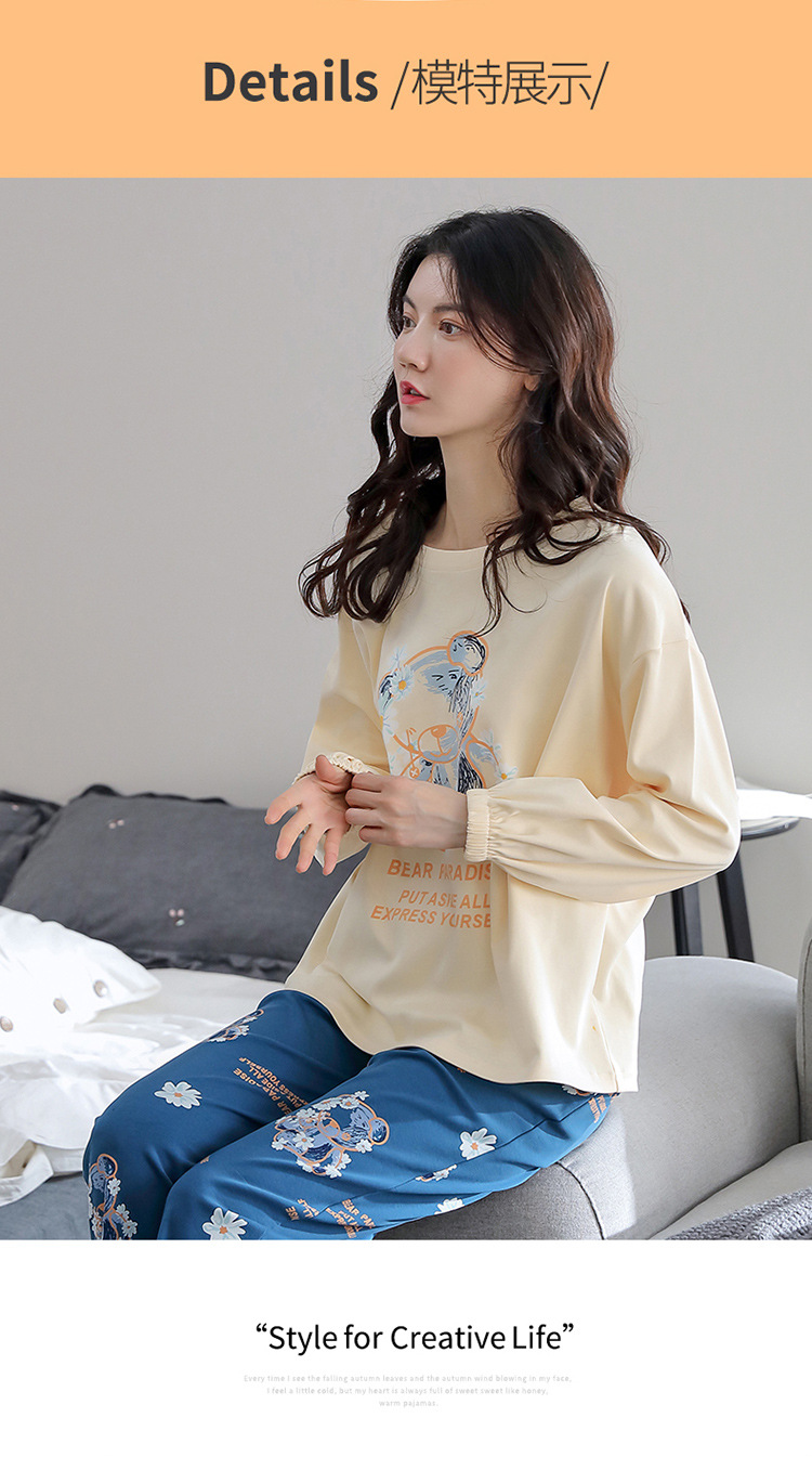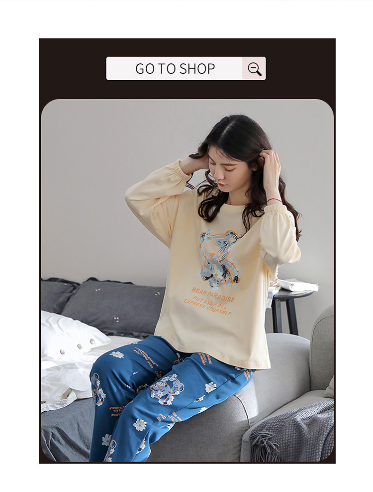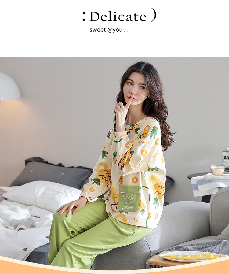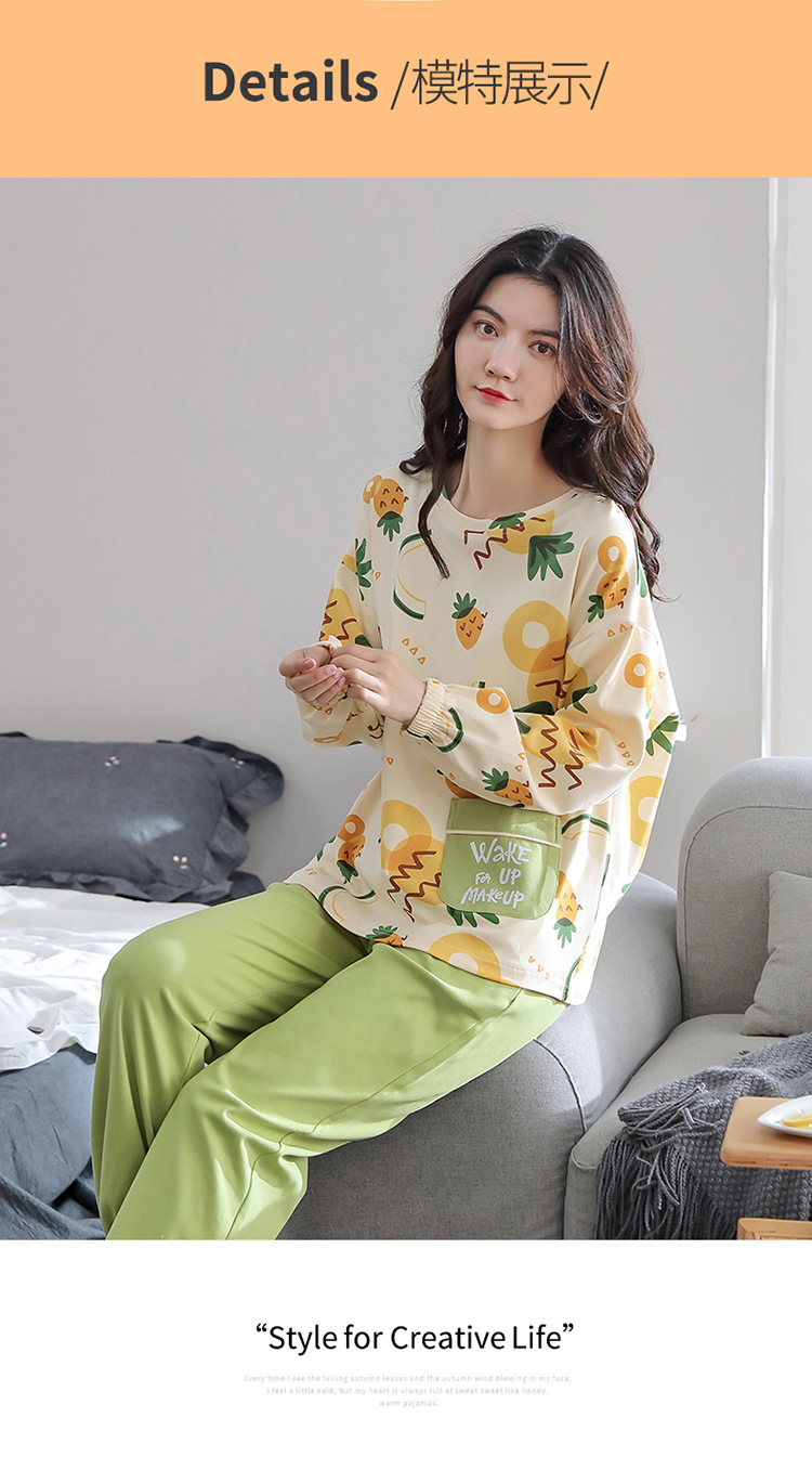 Sujith 잠옷 여자의 긴 소매 면 세트 여자의 귀여운 만화 플러스 사이즈 캐주얼 느슨한 면 가정 옷스토어 가기