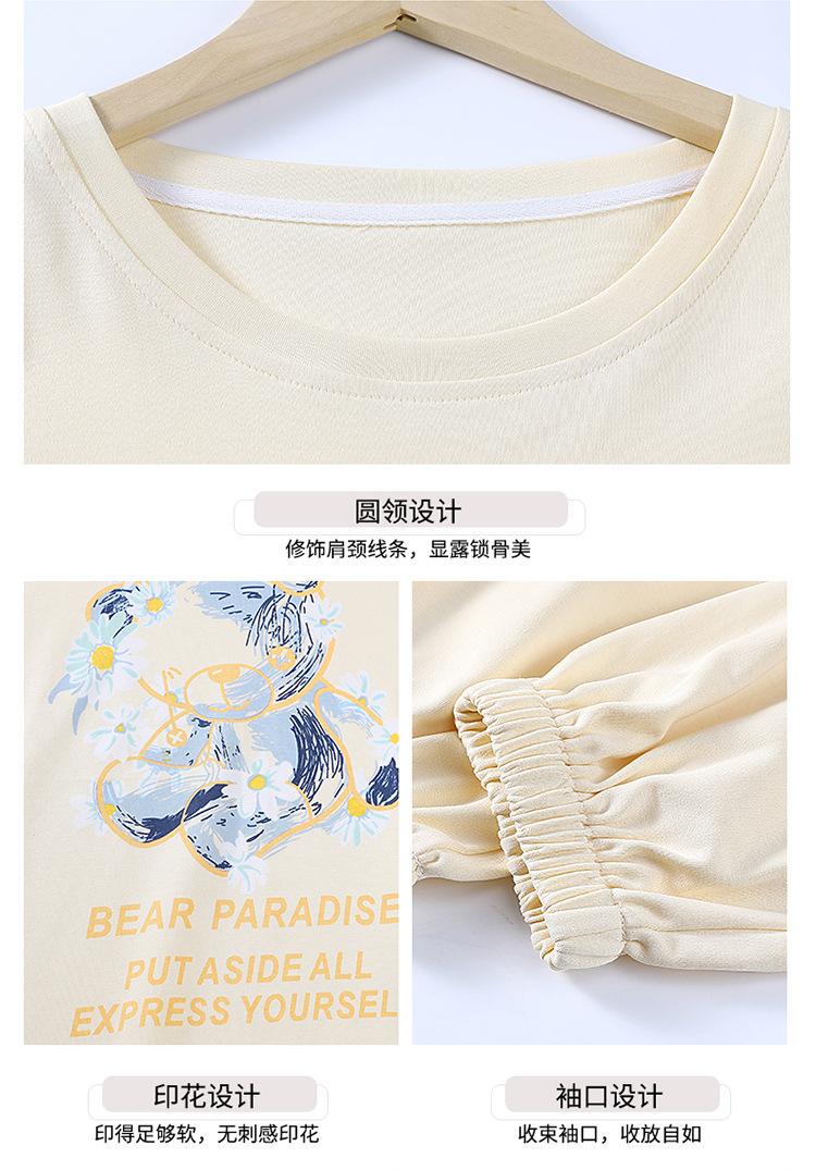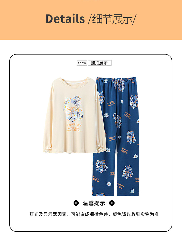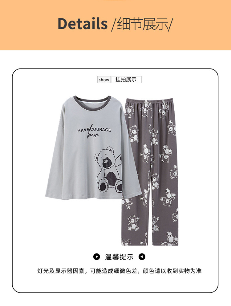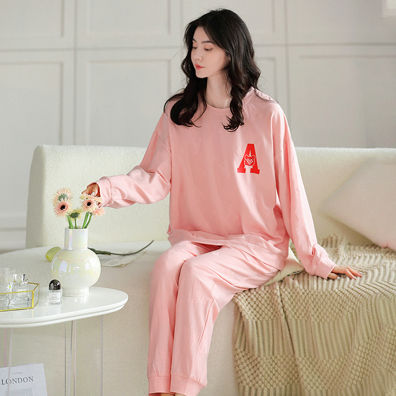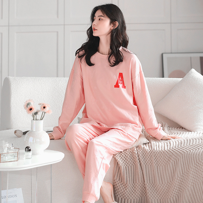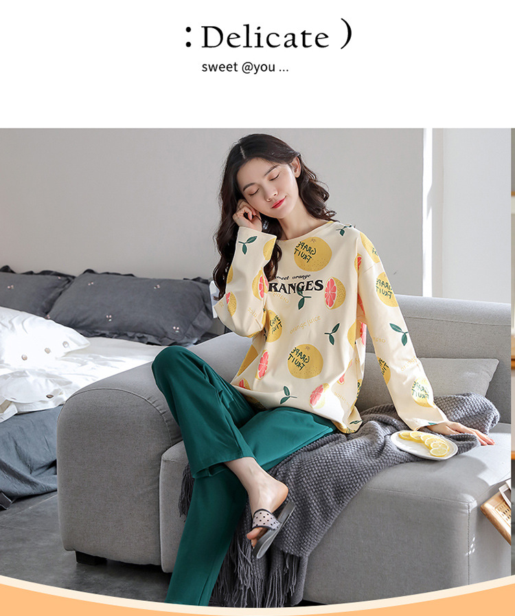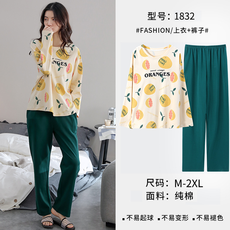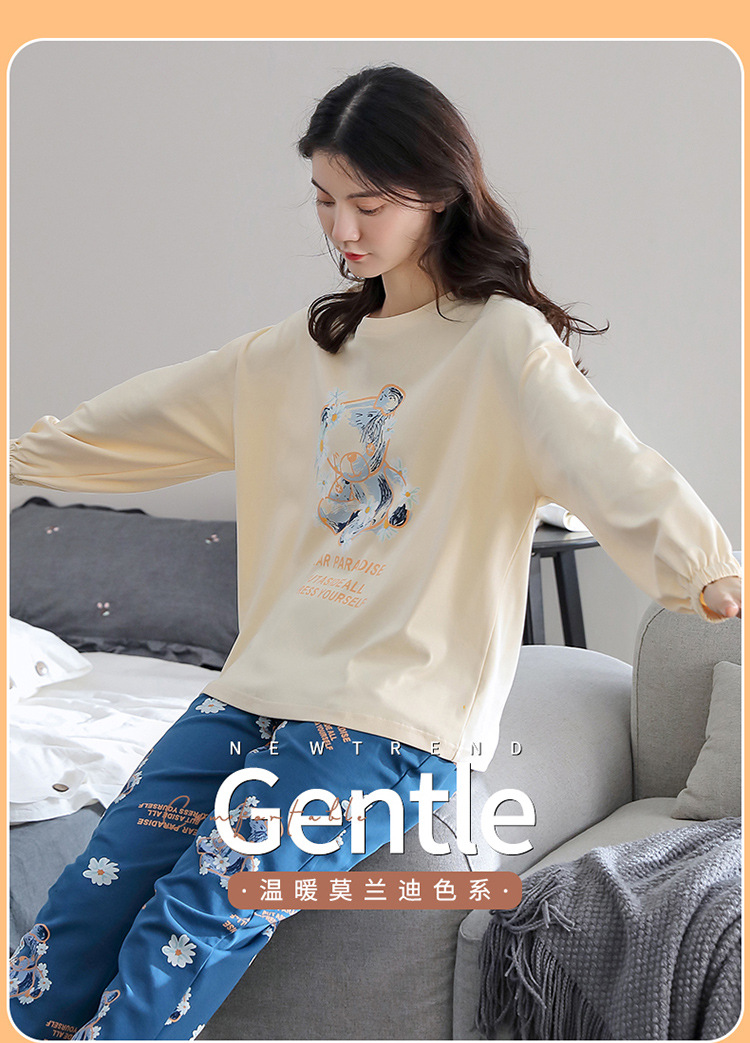Sujith 잠옷 여자의 긴 소매 면 세트 여자의 귀여운 만화 플러스 사이즈 캐주얼 느슨한 면 가정 옷스토어 가기