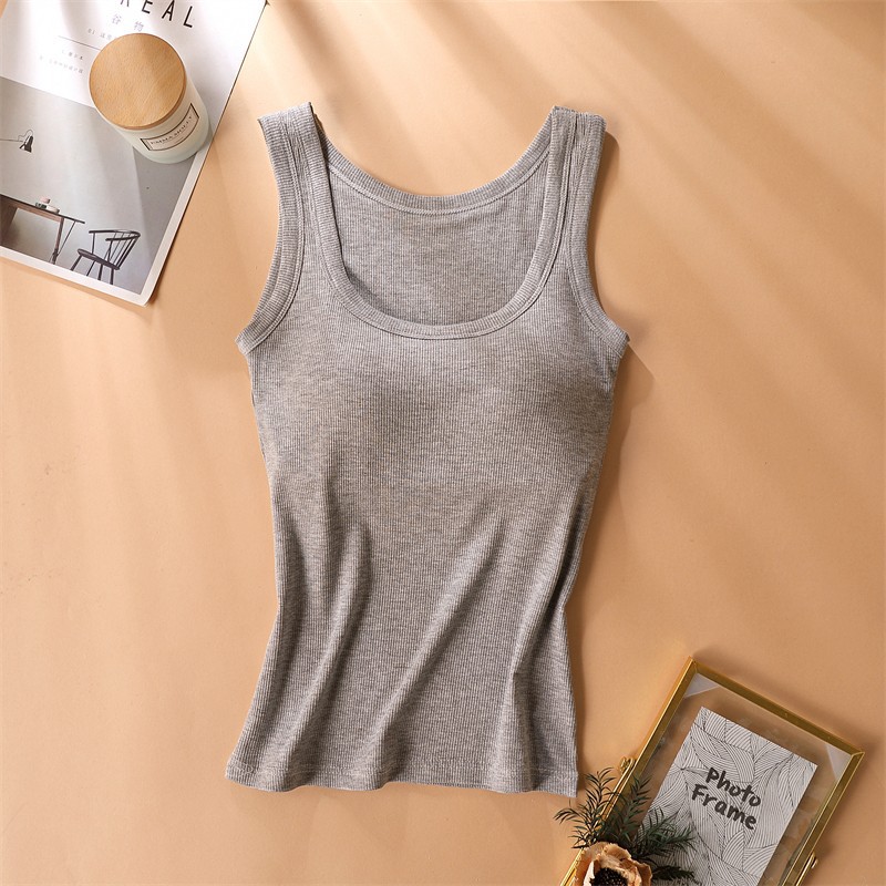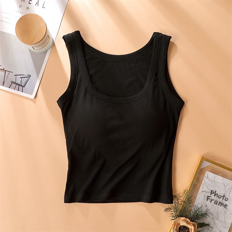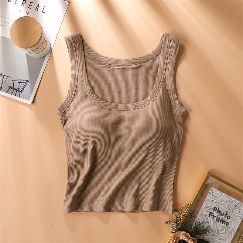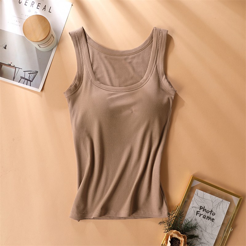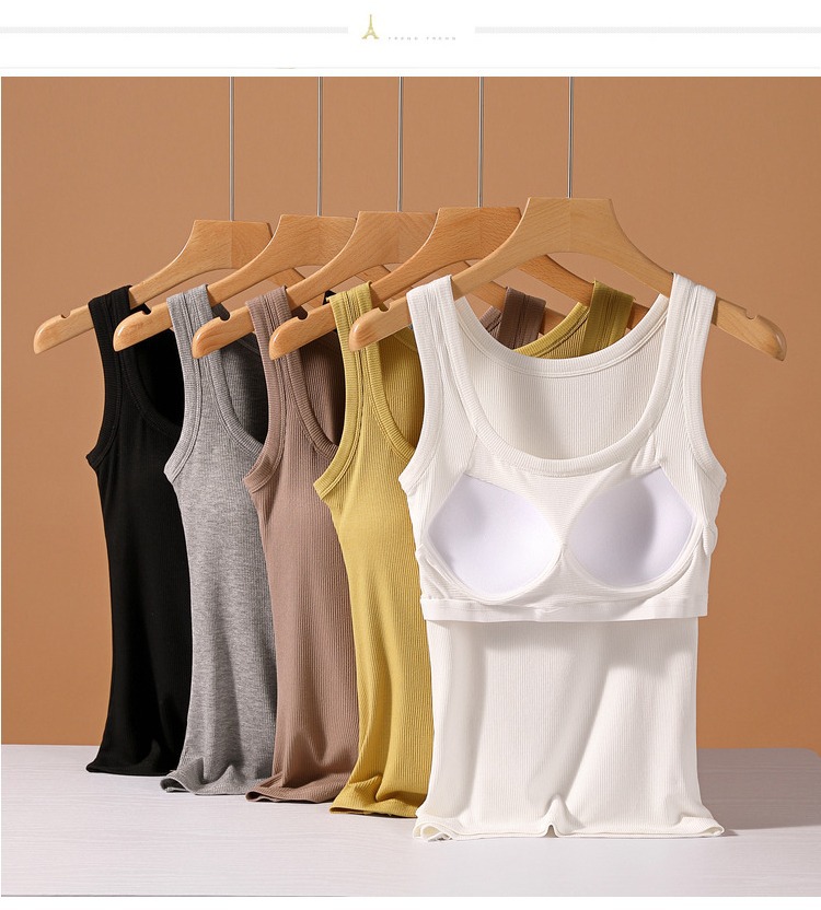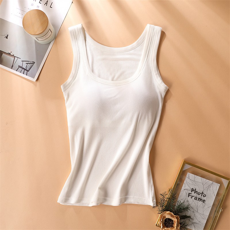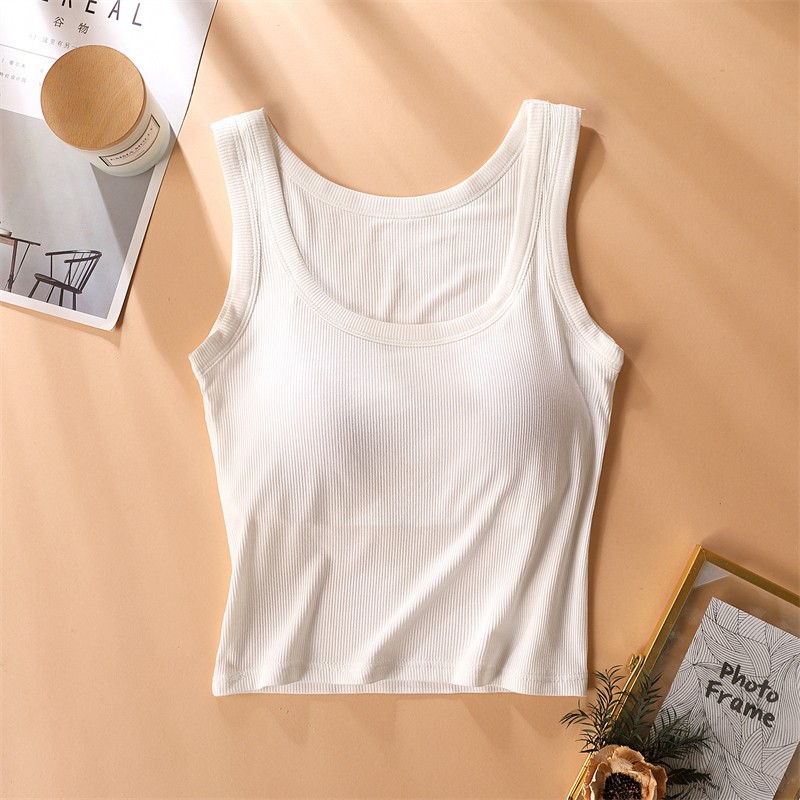 가슴 패드가있는 캐미솔 여성용 내부 브래지어 여름 얇은 겉옷 흰색 민소매 베이스 탑스토어 가기