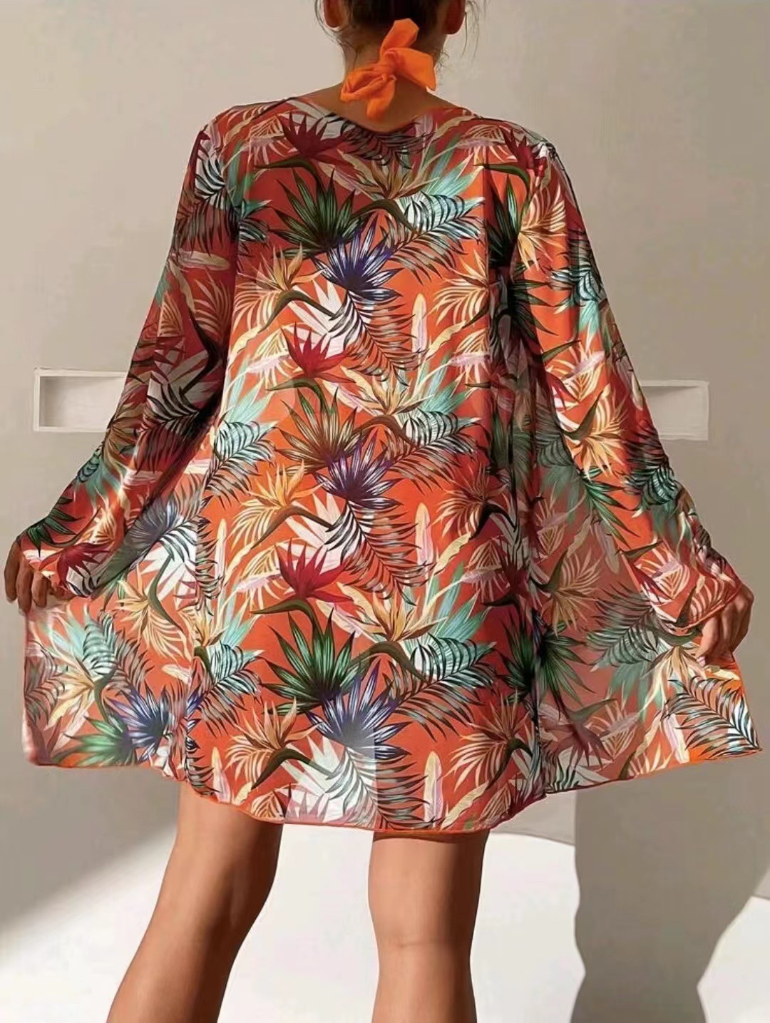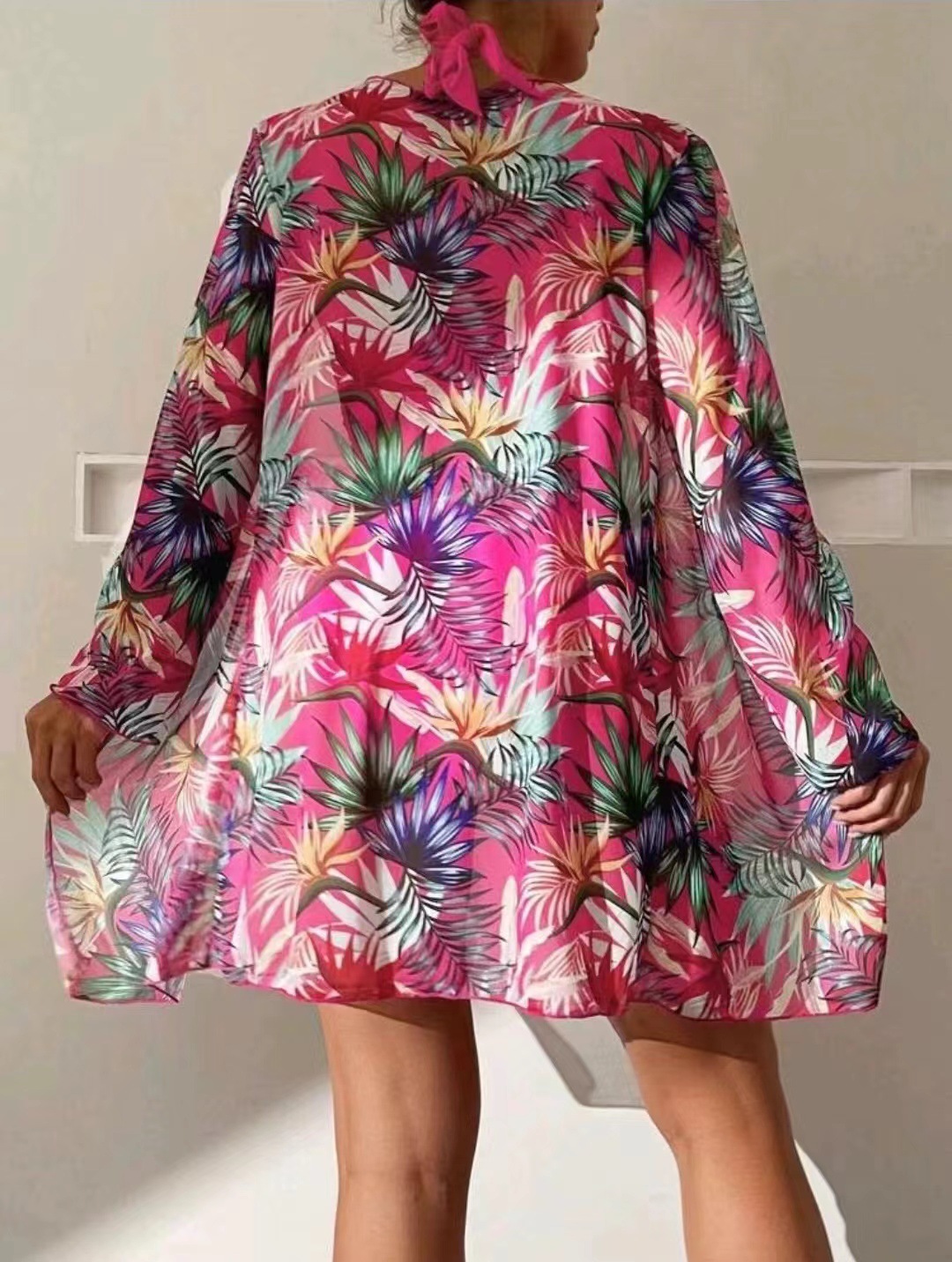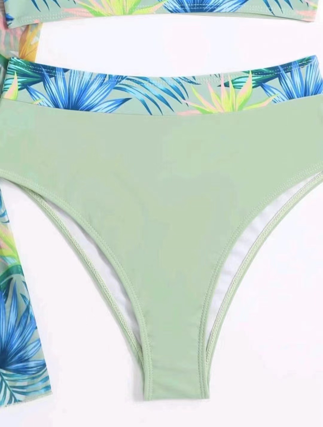 2023 크로스 보더 유럽과 미국 섹시 블라우스 메쉬 비키니 3 피스 비키니 여성용 푸시 업 스플릿 프린트 수영복