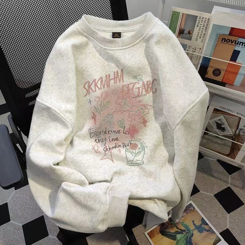 가을 겨울 여성용 한국식 게으른 스타일 만화 프린트 후드 스웨트 셔츠, 벨벳으로 두껍게, 귀엽고 연령을 줄여주는 스타일의 긴팔 탑스토어 가기