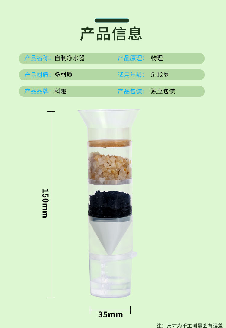 초등학생을 위한 과학 실험 교구 자체 제작 정수기 필터 물 기술 소규모 생산 증기 과학 및 교육 프런티어스토어 가기